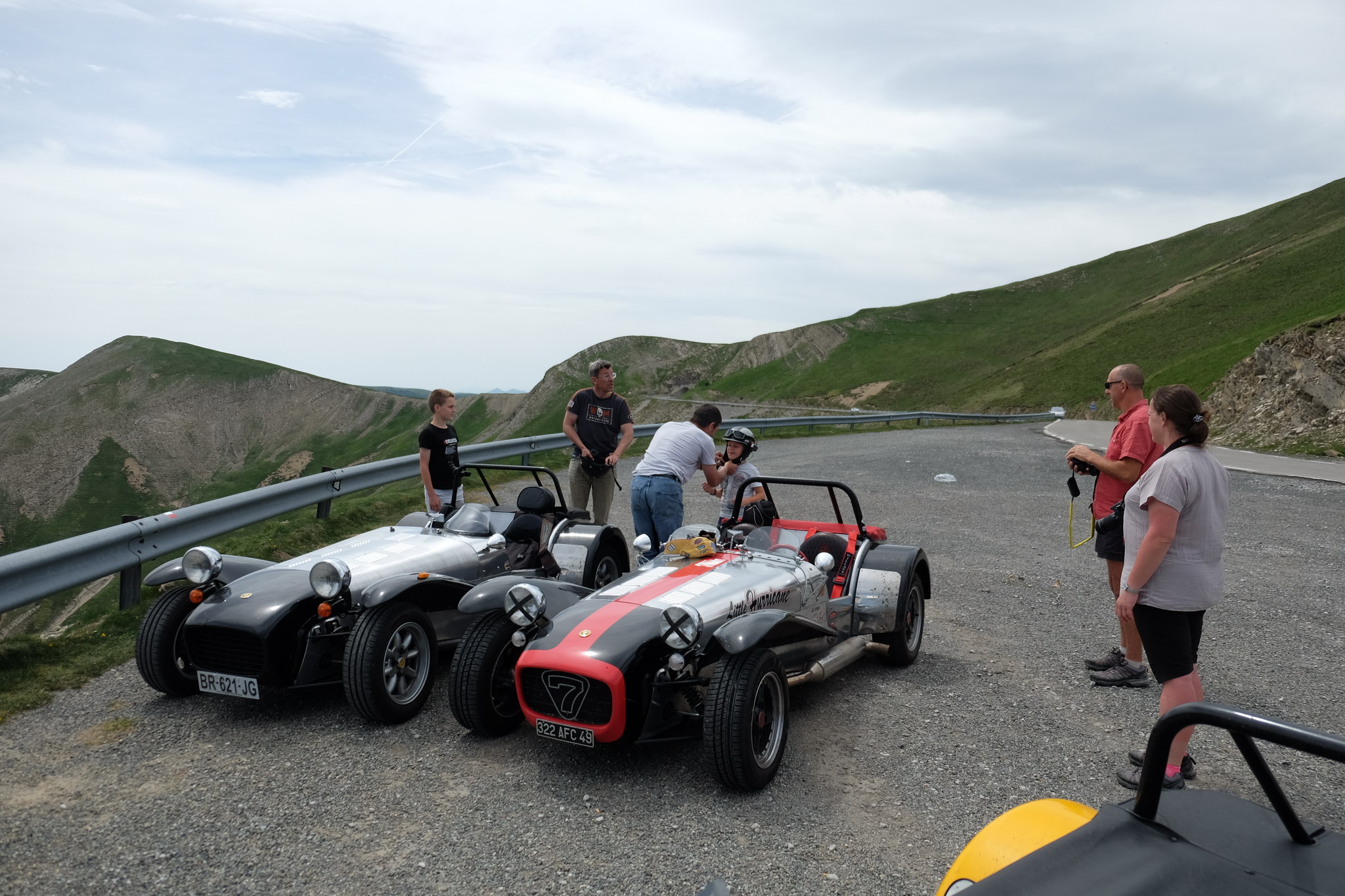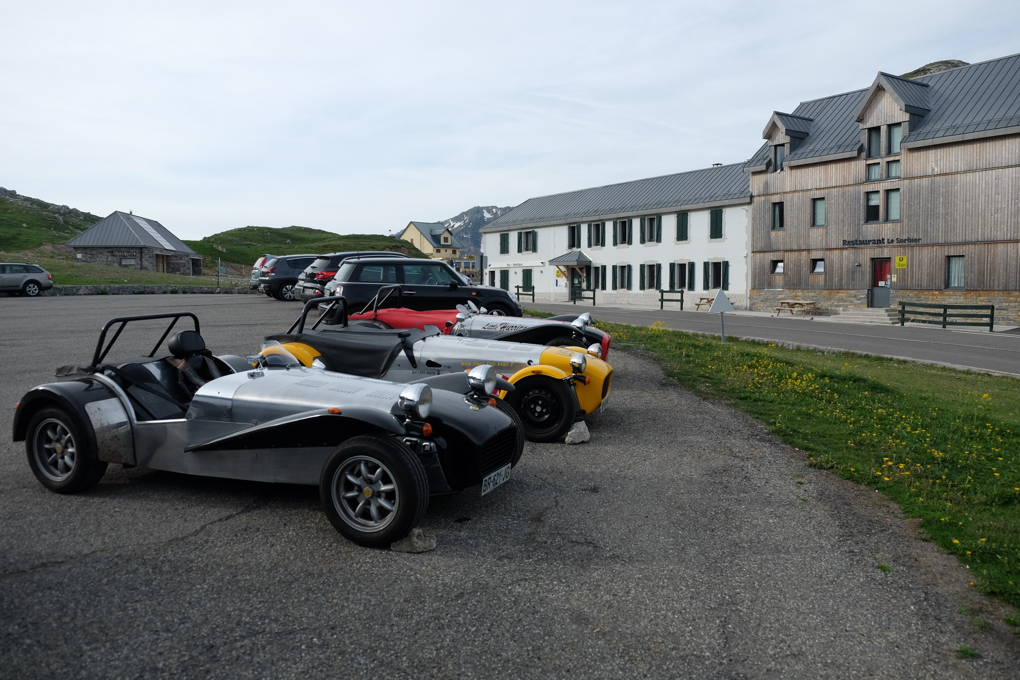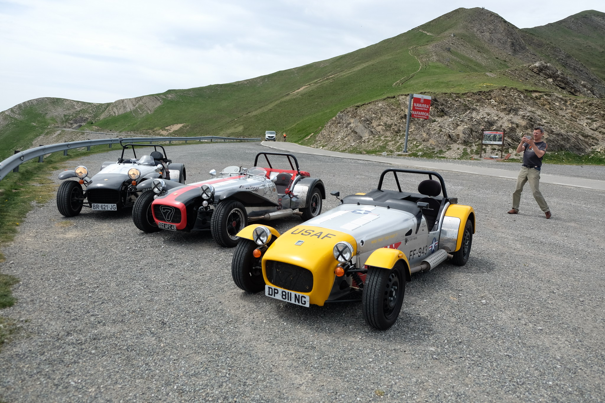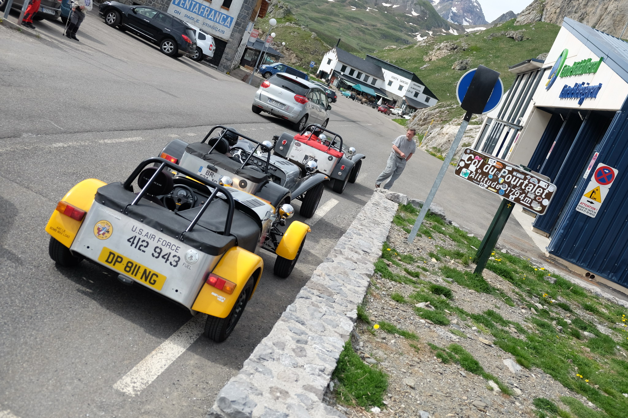 Un chaleureux aurevoir à Alexandra et on prend la route, et on parcourt bien, au moins, laissez moi réfléchir .... cent mètres avant la première pause !! Ben ouais, on a dormi en haut du col, et moi je veux la photo du panneau avec les Cat devant ! Et on est juste à l'ancien poste frontière car l'Espagne commence ici, on aligne les 3 Cat pour prendre la photo, je suis le seul à descendre, un passant s'approche de la Cat de Villo qui est en pole position, et via les Intercom nous commençons à assister à une discussion que je qualifierais de hautement intellectuelle et technique, avec Sly on souffle les réponses au Villo pour qu'il reste au niveau de son nouvel ami, xptdr comme dirait l'autre !