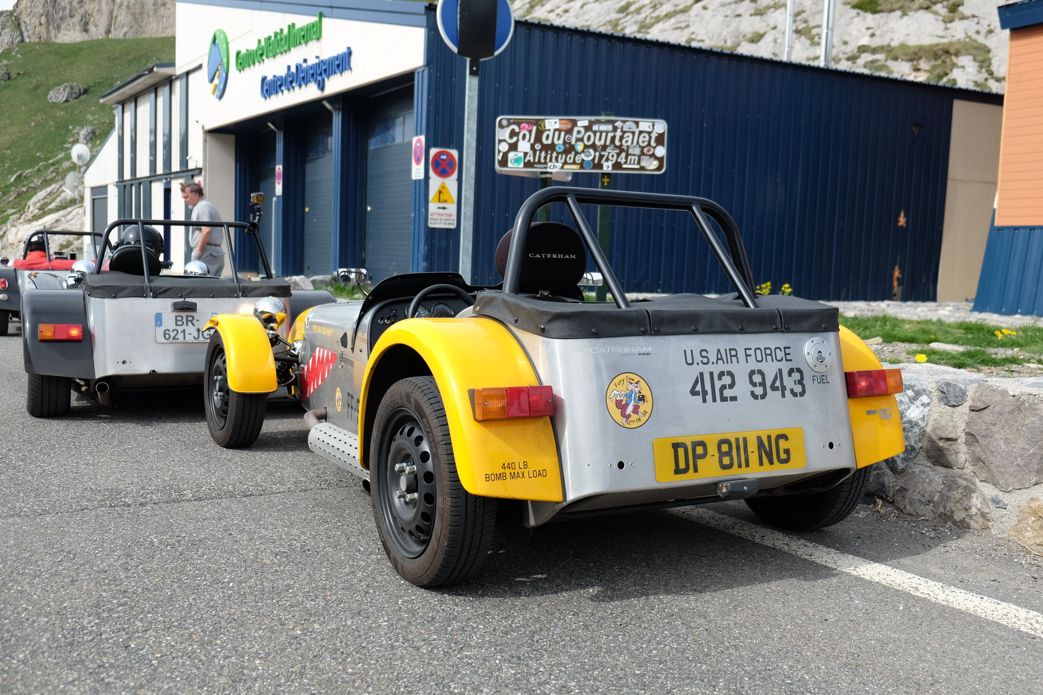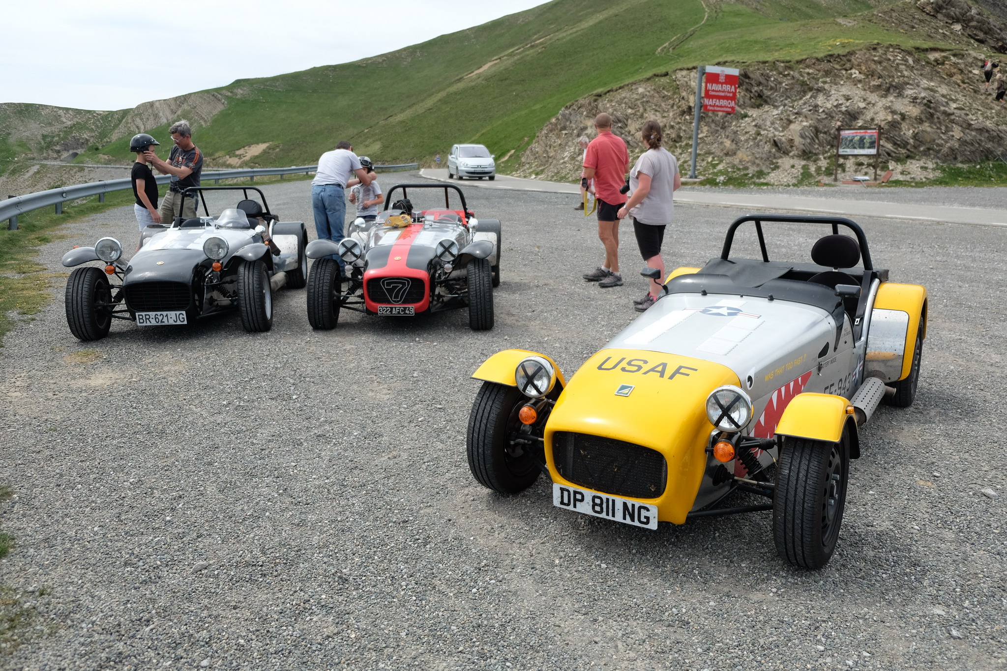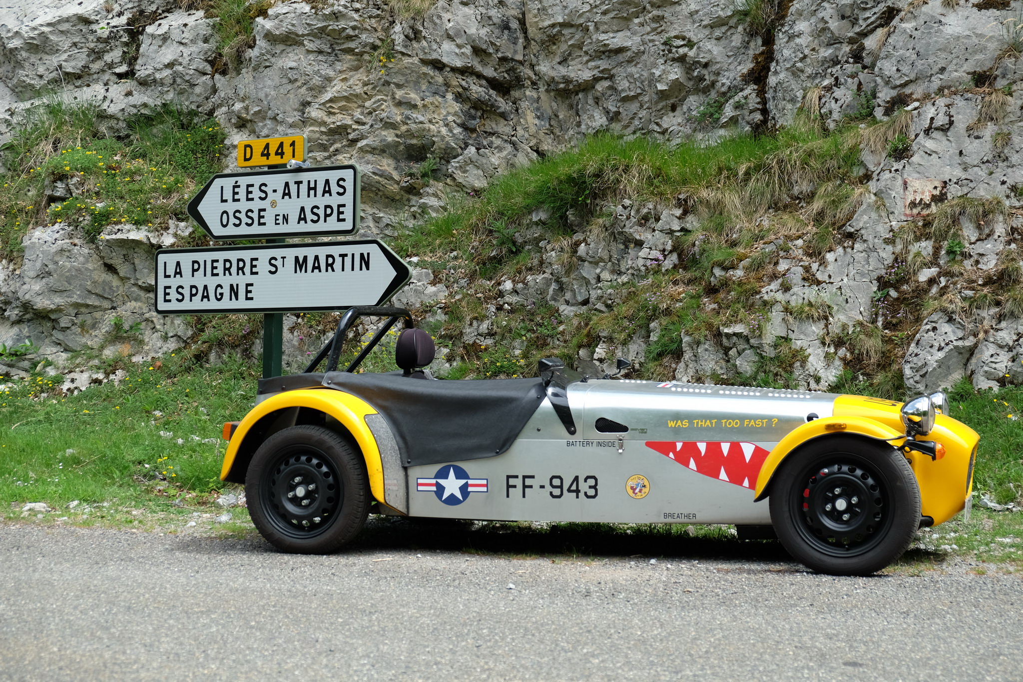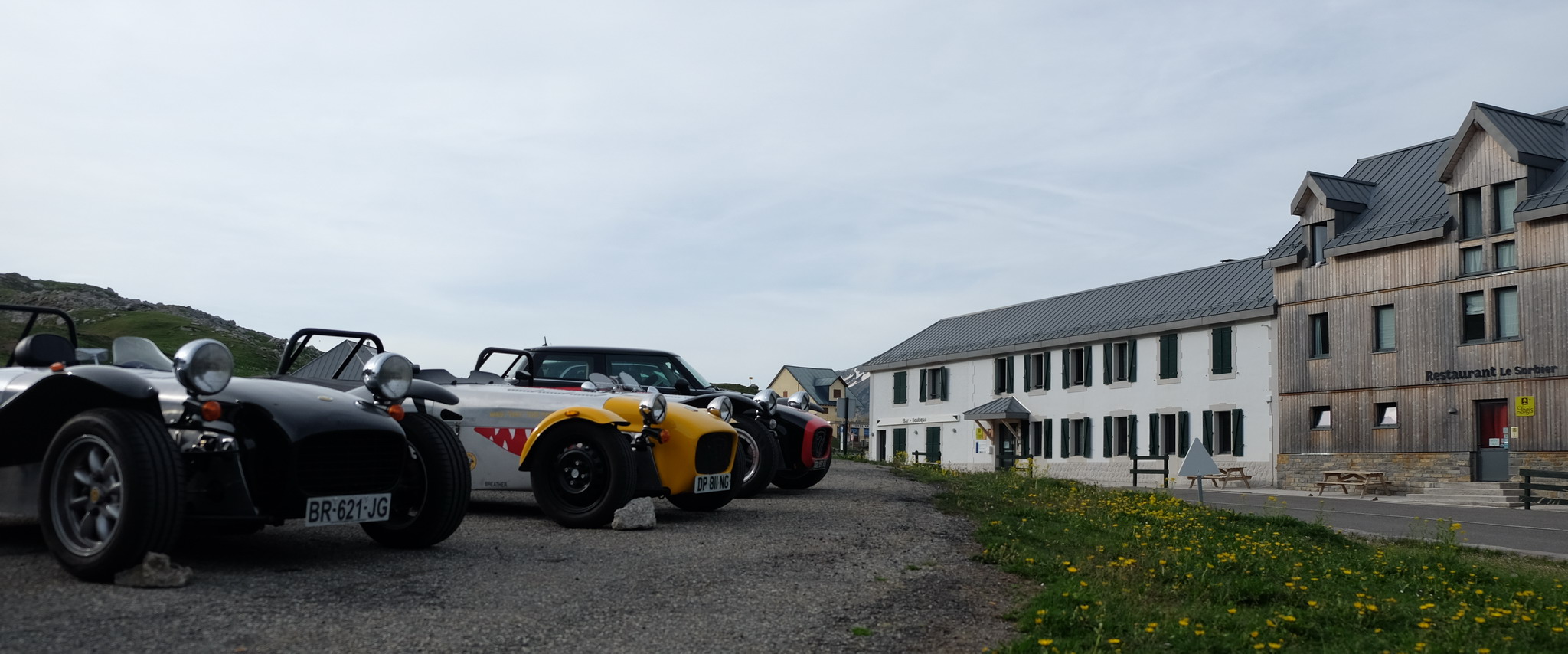 Un chaleureux aurevoir à Alexandra et on prend la route, et on parcourt bien, au moins, laissez moi réfléchir .... cent mètres avant la première pause !! Ben ouais, on a dormi en haut du col, et moi je veux la photo du panneau avec les Cat devant ! Et on est juste à l'ancien poste frontière car l'Espagne commence ici, on aligne les 3 Cat pour prendre la photo, je suis le seul à descendre, un passant s'approche de la Cat de Villo qui est en pole position, et via les Intercom nous commençons à assister à une discussion que je qualifierais de hautement intellectuelle et technique, avec Sly on souffle les réponses au Villo pour qu'il reste au niveau de son nouvel ami, xptdr comme dirait l'autre !