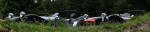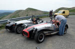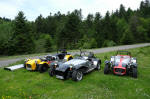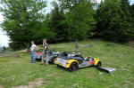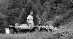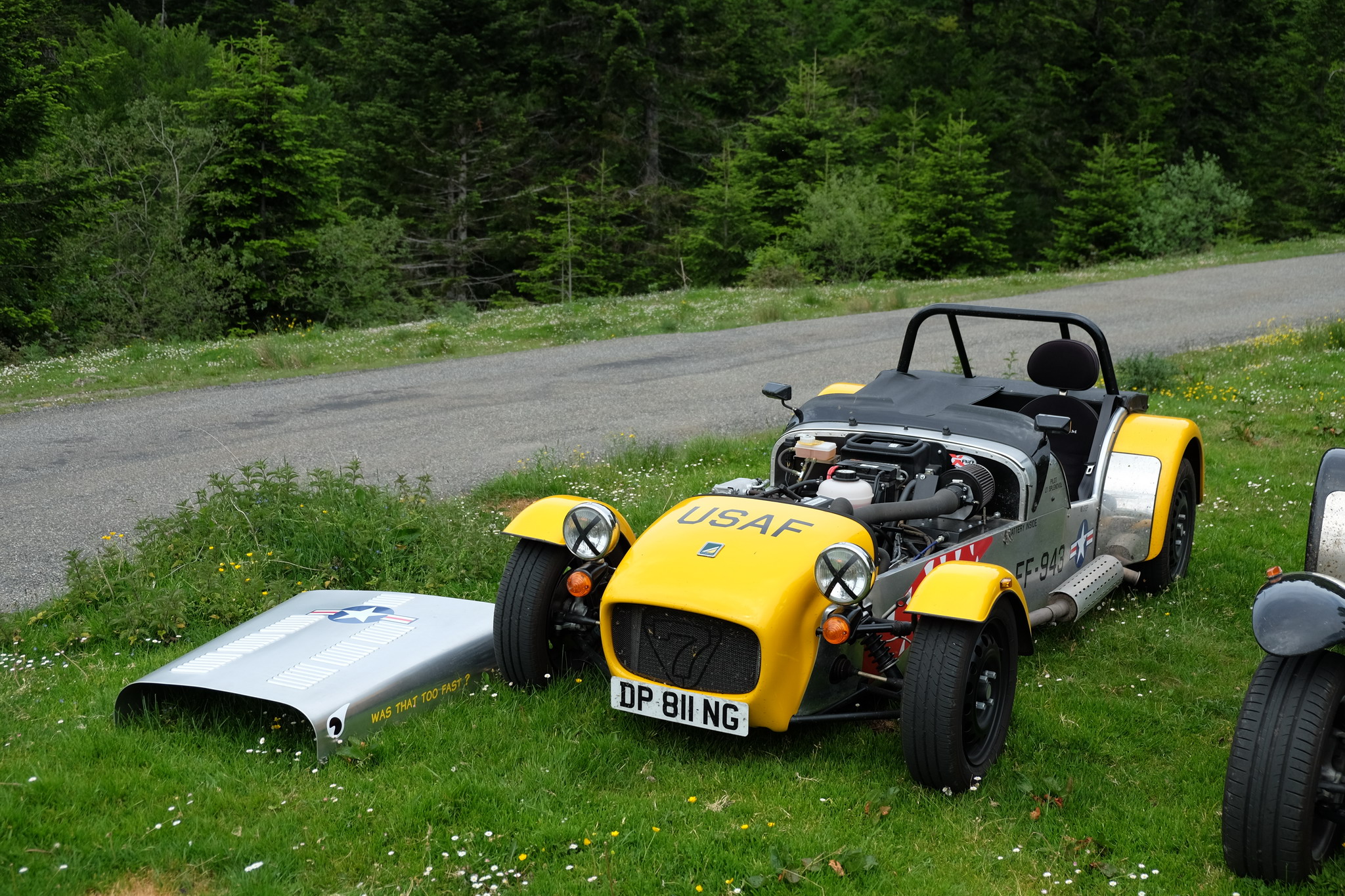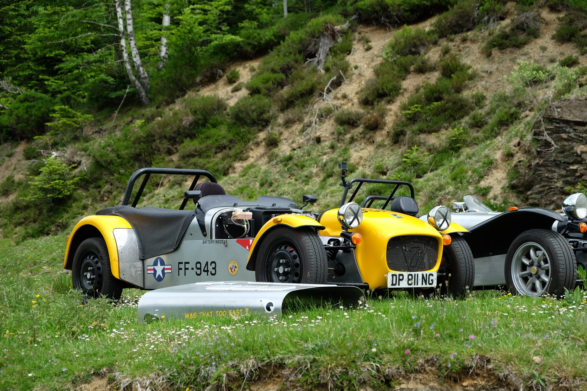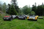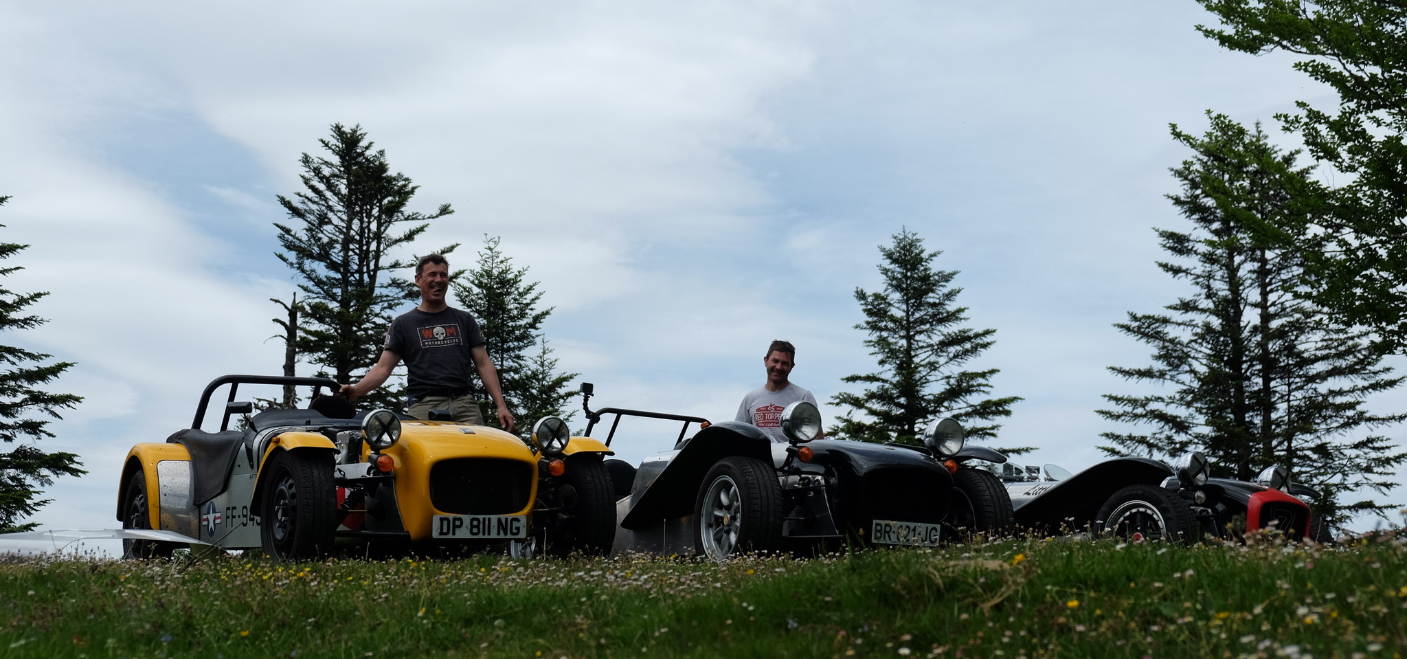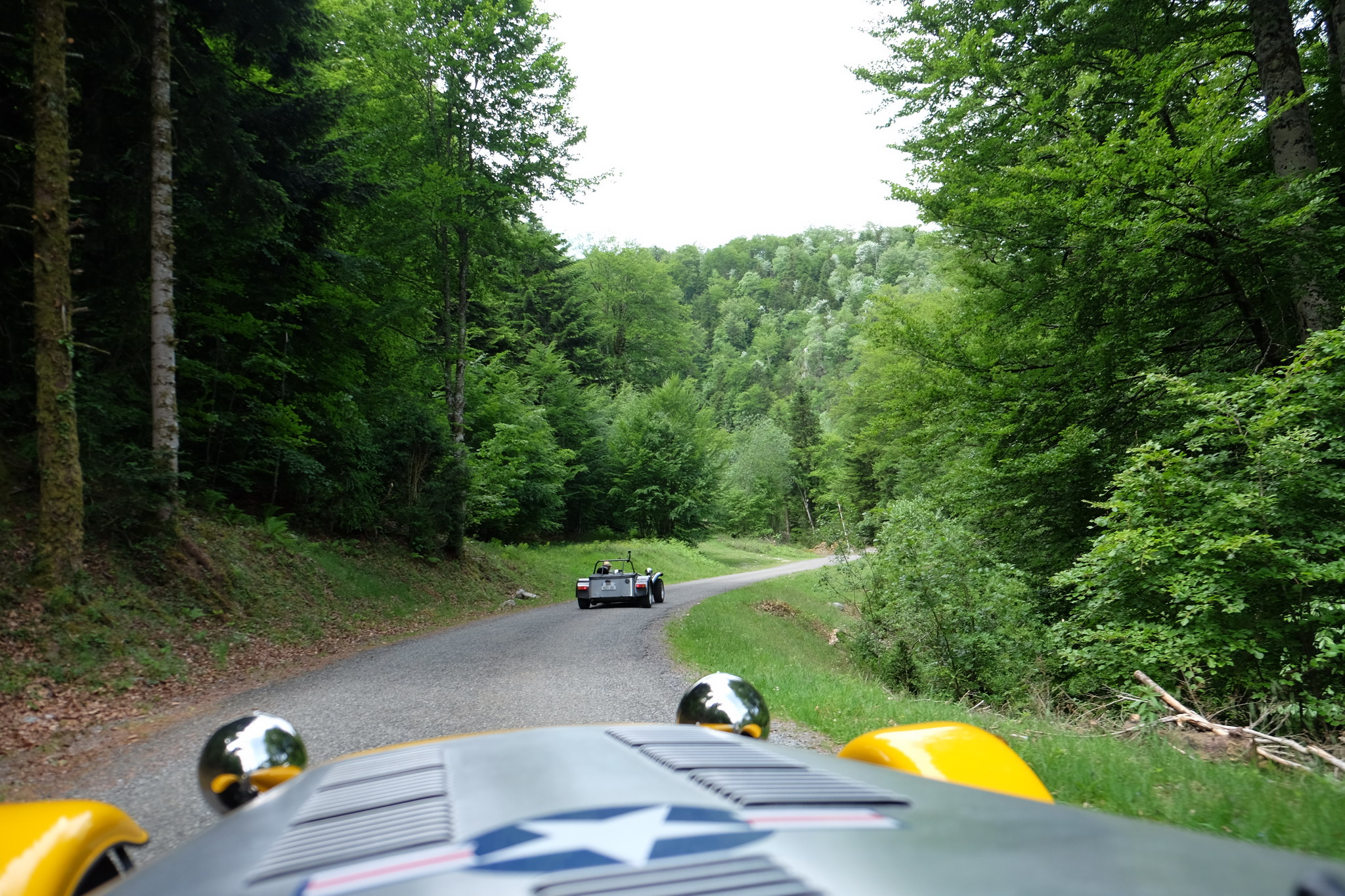 Nous atteignons le col de Labeys à 1354 mètres, il est près de midi et on décide de monter les Cat juste au-dessus, mais on se rend compte qu'une route un peu plus grosse passe à coté avec une voiture en moyenne toutes les cinq minutes qui passe .... ça va pas le faire, on va être trop dérangé, hop on bouge ! Comme on avait vu des potentiels très beaux coins juste avant, nous reprenons la route en sens inverse, et dans une épingle, nous trouvons le lieu idéal, les trois Cat sur le terre-plein à l'intérieur de l'épingle, nous entreprenons de l'escalade de haute-montagne pour nous élever et embrasser le panorama et les Cat en-dessous, ce picnic devrait donc vraiment bien se passer ....