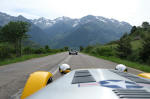 La descente se poursuit le long de cette vallée vraiment très belle, nous longeons le lac de Bubal, puis le Rio Gallego, portion pas très intéressante entre Biescas et Jaca mais nous reprenons tout de suite plein nord en direction du col du Somport, la montée peut être faite à un bon rythme car il y a souvent des portions à deux voies qui permettent de prendre un peu ses aises. Col et poste frontière sans douaniers bien évidemment, nous rebasculons en France.