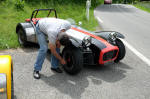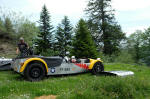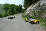 Izaba, à droite toute, pour une fois de plus remonter vers la France, et la montée ne va pas être trop touristique, je suis en tête mais un espagnol nous colle un peu le train avec un Dodge Caliber (!), Villo et Sly ne le supportent pas vraiment, me poussent un peu et passent devant, et le Caliber va cracher pendant toute la montée pour essayer de me suivre jusqu'au bout !