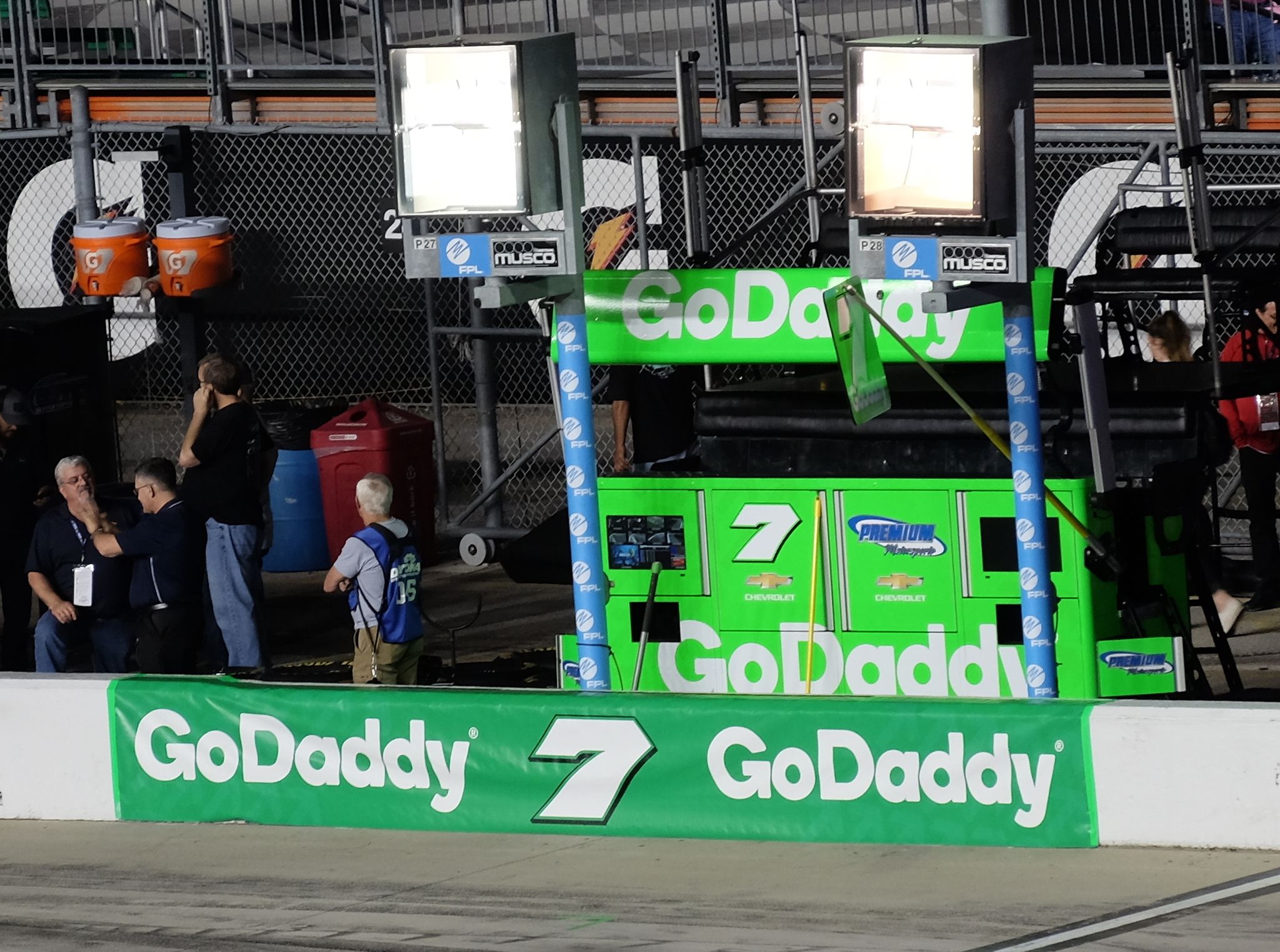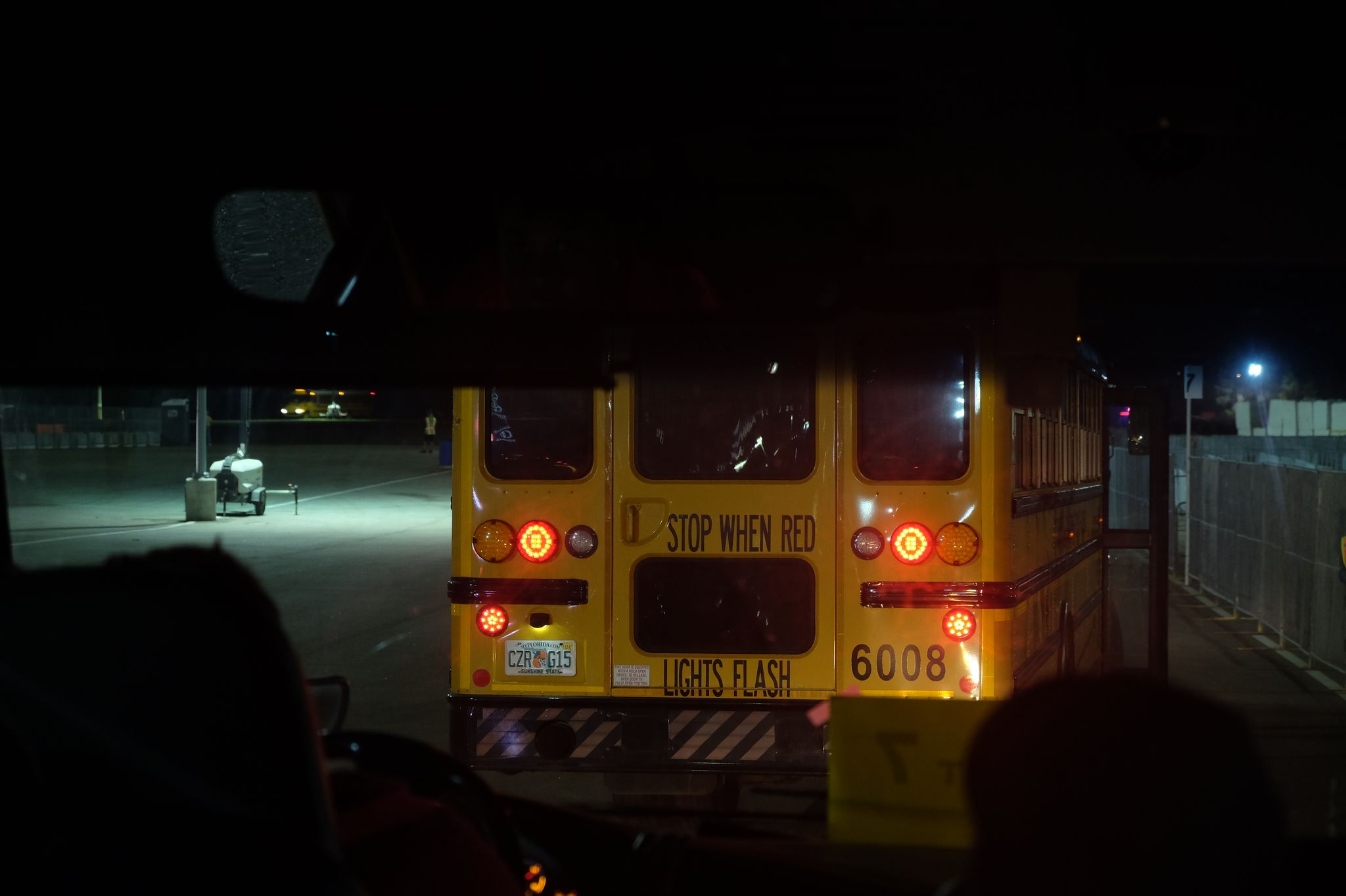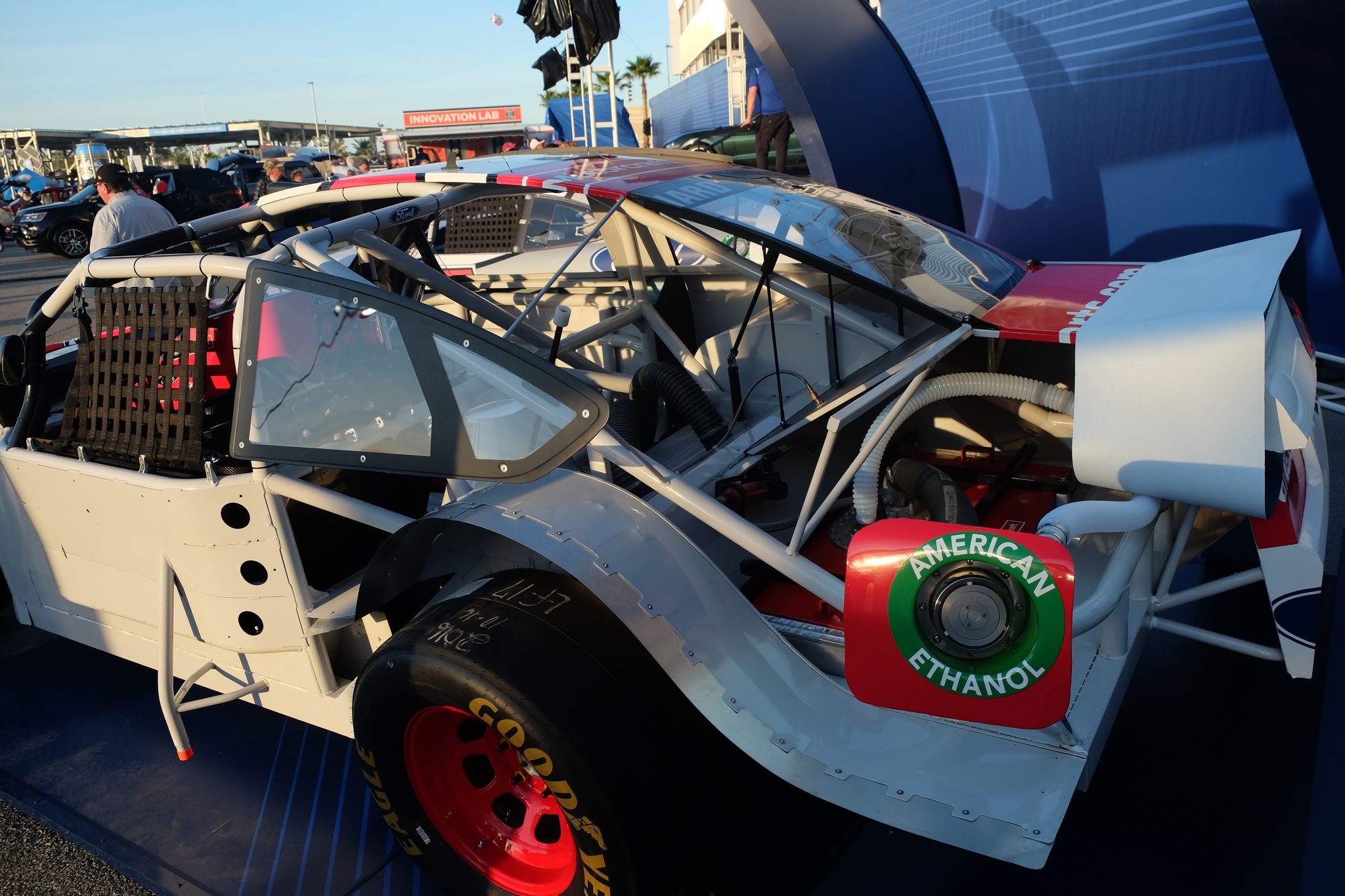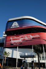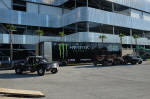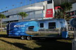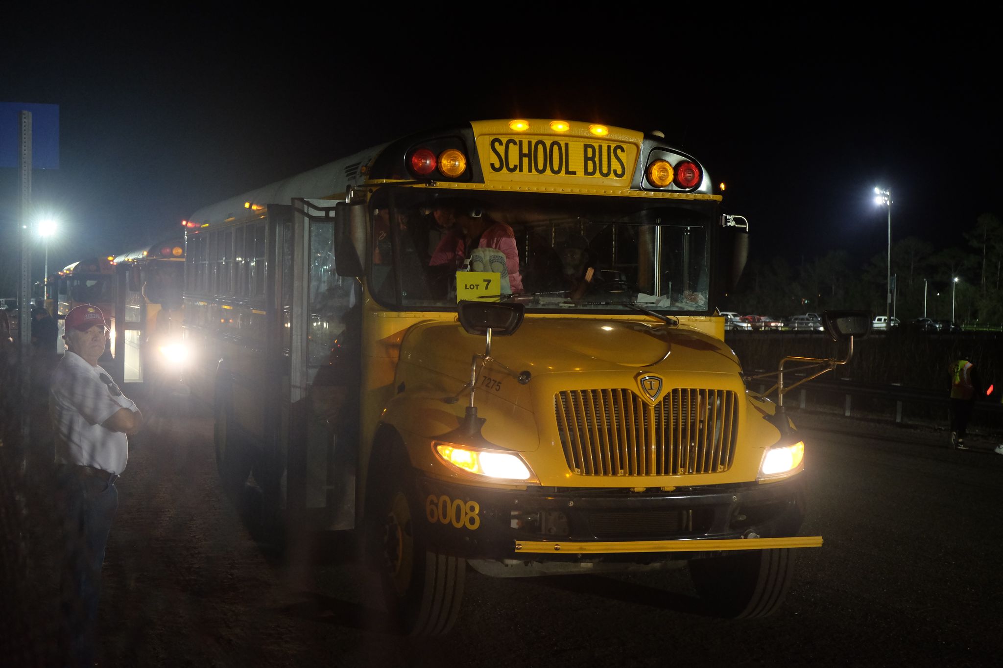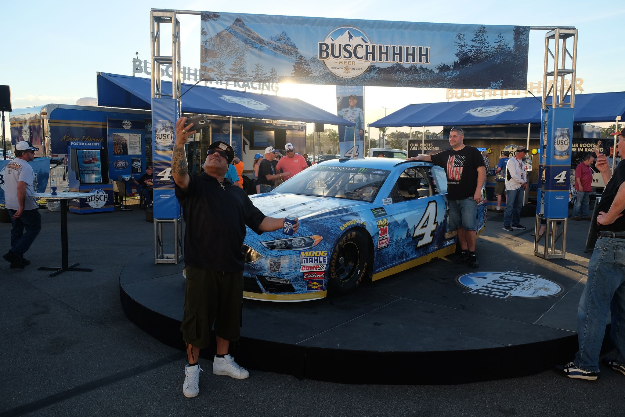 Les Can Am Duels ont lieu le jeudi soir, deux courses qui opposent les voitures de la Cup, le plateau des 40 voitures est divisé en deux pour faire ces deux courses, qui sont en fait les qualifications et déterminent donc la grille de départ du Daytona 500. Nous avions choisi de stationner la Challenger sur un parking gratuit, donc loin du speedway, mais un service de school bus assurent les navettes, vraiment cool de monter dans ces véhicules mythiques, surtout que nous fonçons à travers les chemins, traversant les routes à fond de cale car à tous les croisements, des State Troopers en Dodge Charger arrêtent la circulation pour nous laisser passer, vraiment funky ! Nous arrivons ainsi à proximité du circuit, dans la toute récente zone commerciale qui jouxte le speedway juste de l'autre coté de l'avenue.