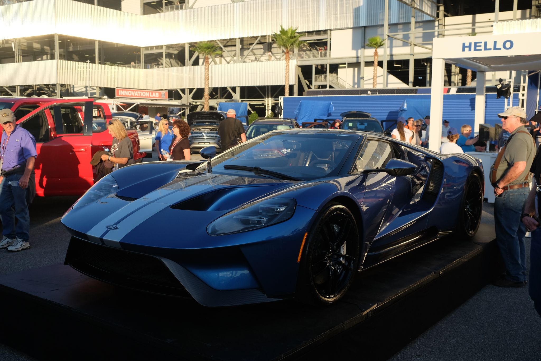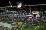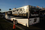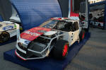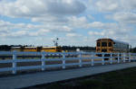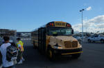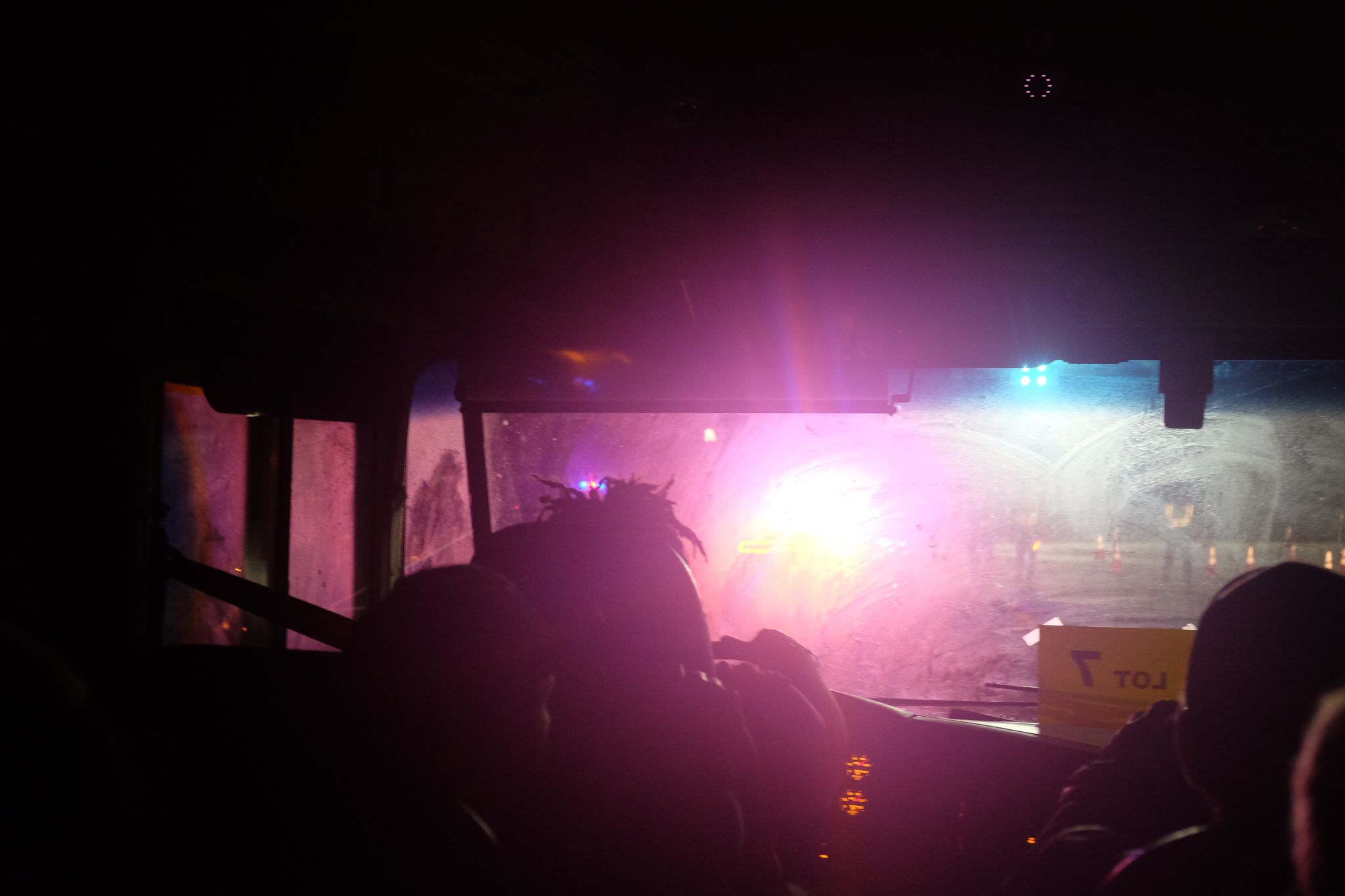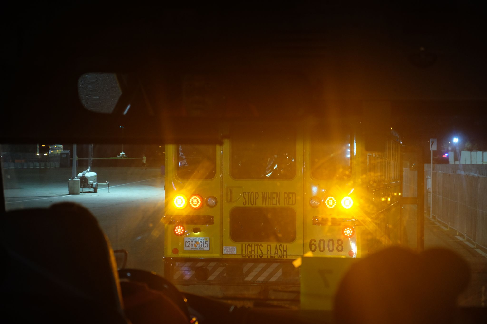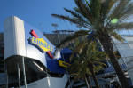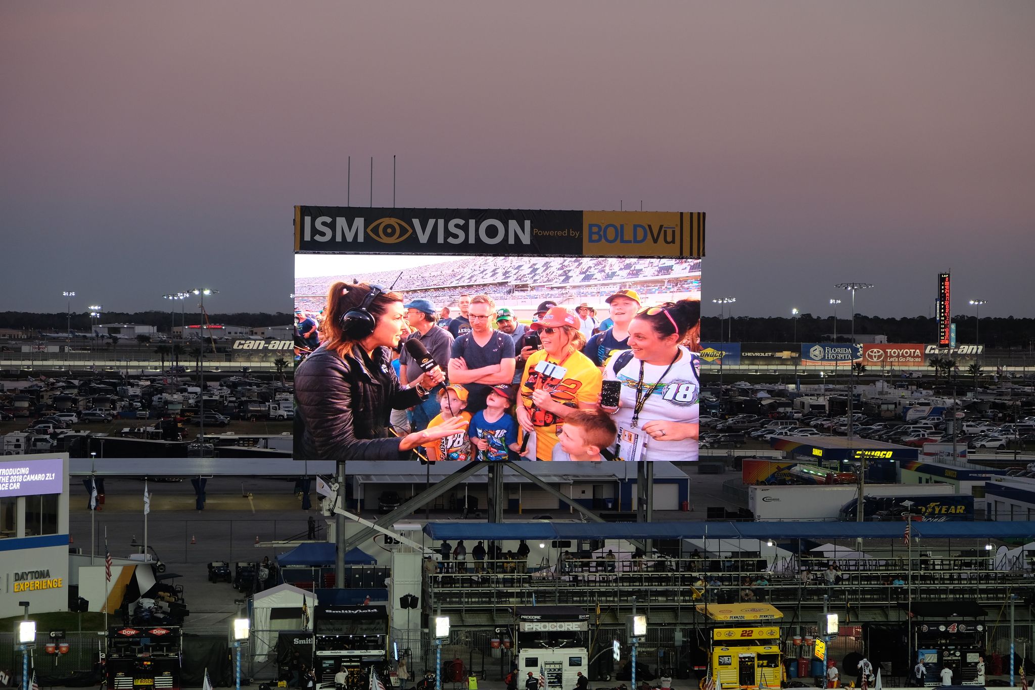 Les Can Am Duels ont lieu le jeudi soir, deux courses qui opposent les voitures de la Cup, le plateau des 40 voitures est divisé en deux pour faire ces deux courses, qui sont en fait les qualifications et déterminent donc la grille de départ du Daytona 500. Nous avions choisi de stationner la Challenger sur un parking gratuit, donc loin du speedway, mais un service de school bus assurent les navettes, vraiment cool de monter dans ces véhicules mythiques, surtout que nous fonçons à travers les chemins, traversant les routes à fond de cale car à tous les croisements, des State Troopers en Dodge Charger arrêtent la circulation pour nous laisser passer, vraiment funky ! Nous arrivons ainsi à proximité du circuit, dans la toute récente zone commerciale qui jouxte le speedway juste de l'autre coté de l'avenue.