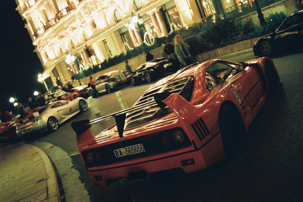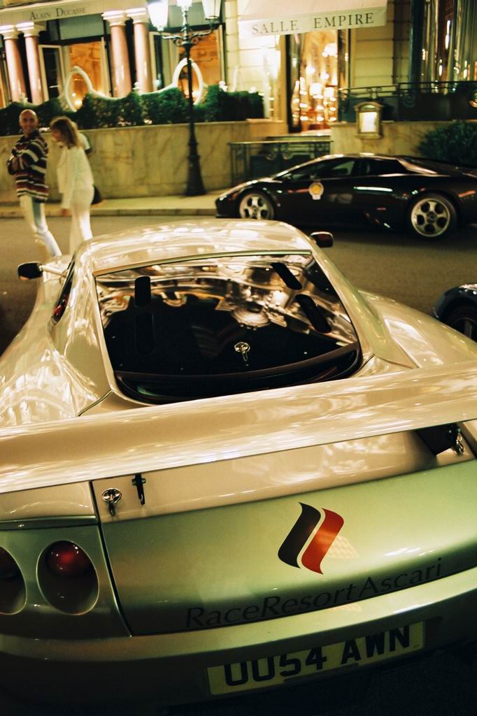 Le soleil du dimanche matin nous offrit une belle lumière pour refaire des photos, surtout que les 2 Enzo étaient stationnées ensemble devant l'hotel de Paris, et toujours le doux feulement du V8 de l'Ascari, et la présence d'une Mercedes 190 E 2.5 16 Evolution 2, Porsche 996 GT2 Tech Art et Lamborghini Diablo GT