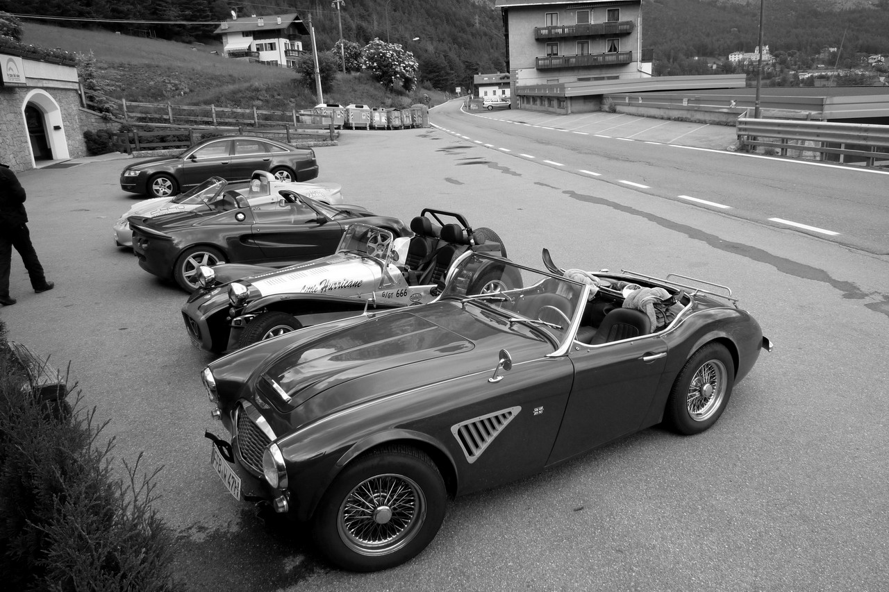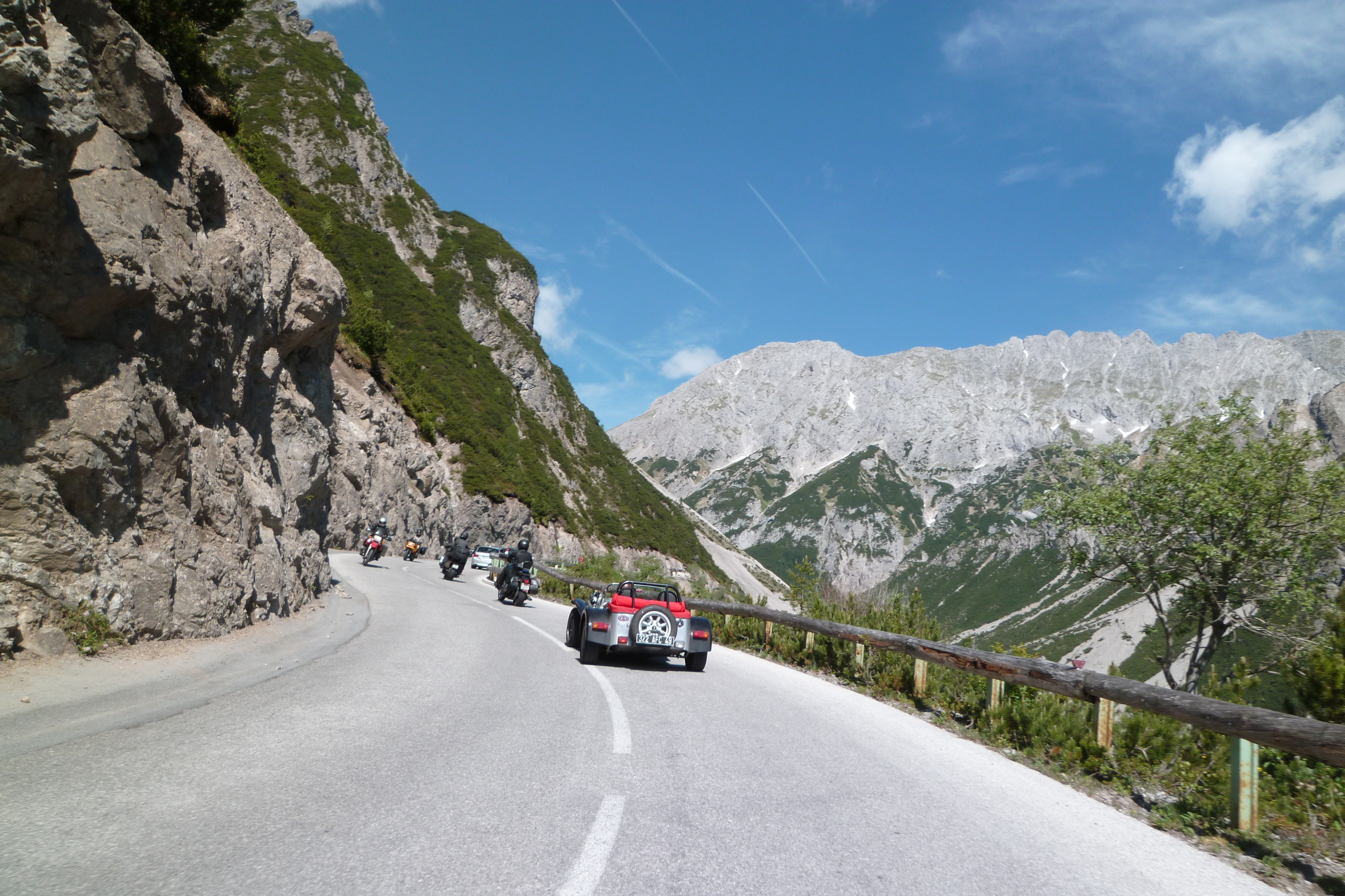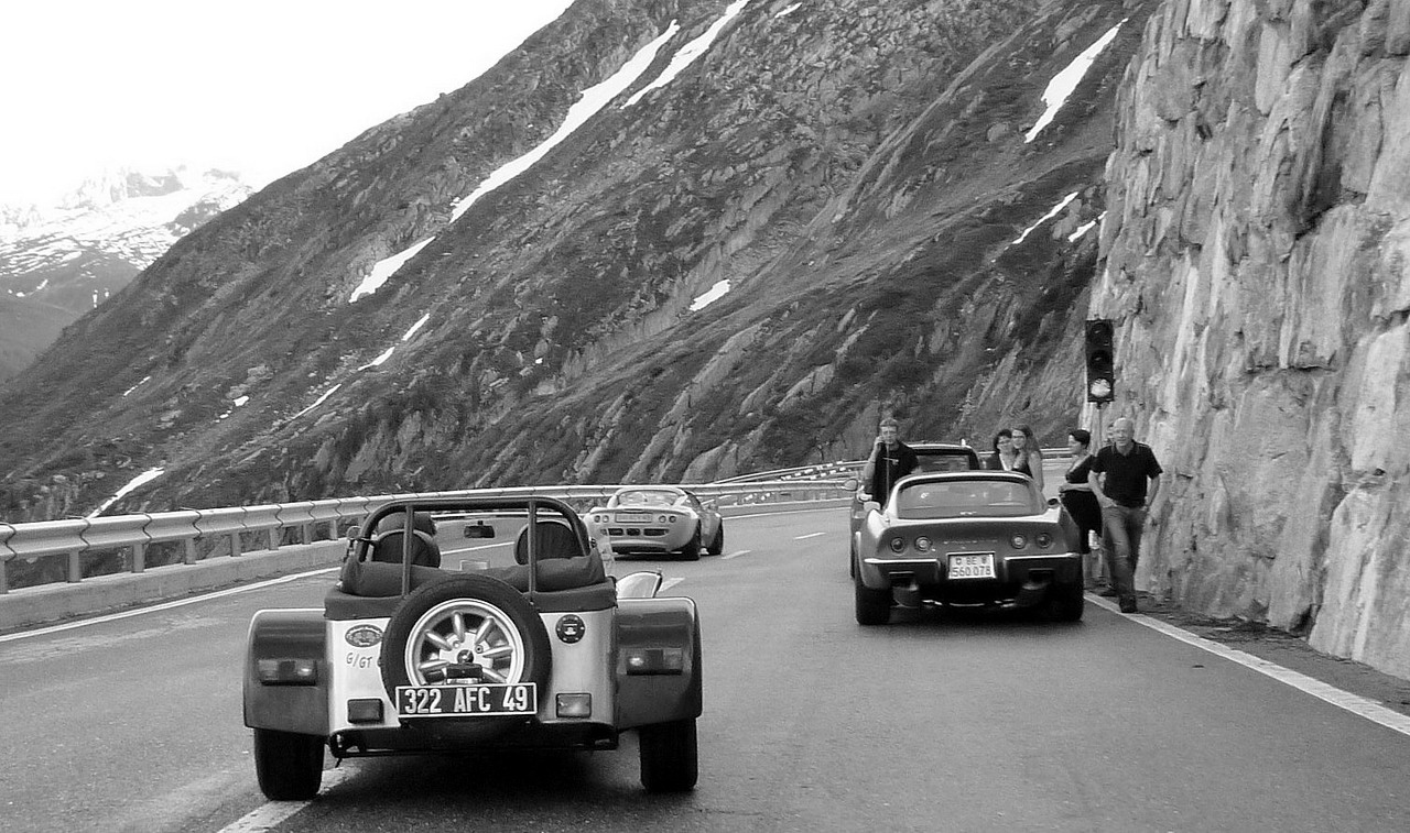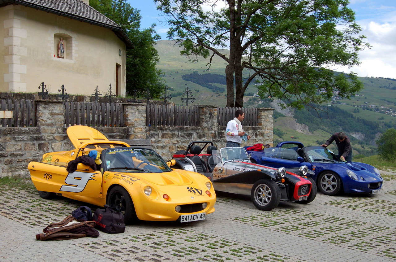 3 voitures, 3 pilotes, 6 jours, 5 pays, 3000 kms de fun, tel était de cahier des charges de notre road trip 2011. Les 2 Elise sont donc accompagnées d'une petite nouvelle toute frêle, la Caterham remise en config baroudeuse avec pare-brise et capote dans le coffre au cas où, car nous partons affronter les grands sommets alpins !!