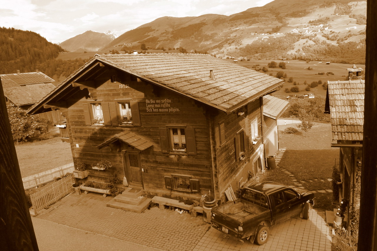 Mais on ne traîne pas trop car ils est déjà plus de 19h00 et nous avons encore Oberalpass et un peu de route pour arriver jusqu'à notre lieu d'hébergement, surtout qu'il commence à pleuvoir, pas téméraire pour un sou, j'aperçois un abri au détour d'un village et en profite pour capoter, tandis que les 2 autres zigotos continuent de rouler, il commence à faire sombre quand j'attaque les derniers kilomètres dans la petite vallée afin d'atteindre le hameau de Tersnaus, Oliv et Sly m'accueillent en compagnie de la petite famille propriétaire de la chambre d'hotes, l'endroit est charmant et superbe, c'est en fait l'ancienne école du village qui a été reconditionnée, nous stationnons les voitures devant la petite église entourée de son petit cimetière, autant vous dire que l'endroit est paisible, et que l'on s'y sent très bien !!