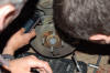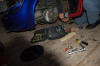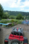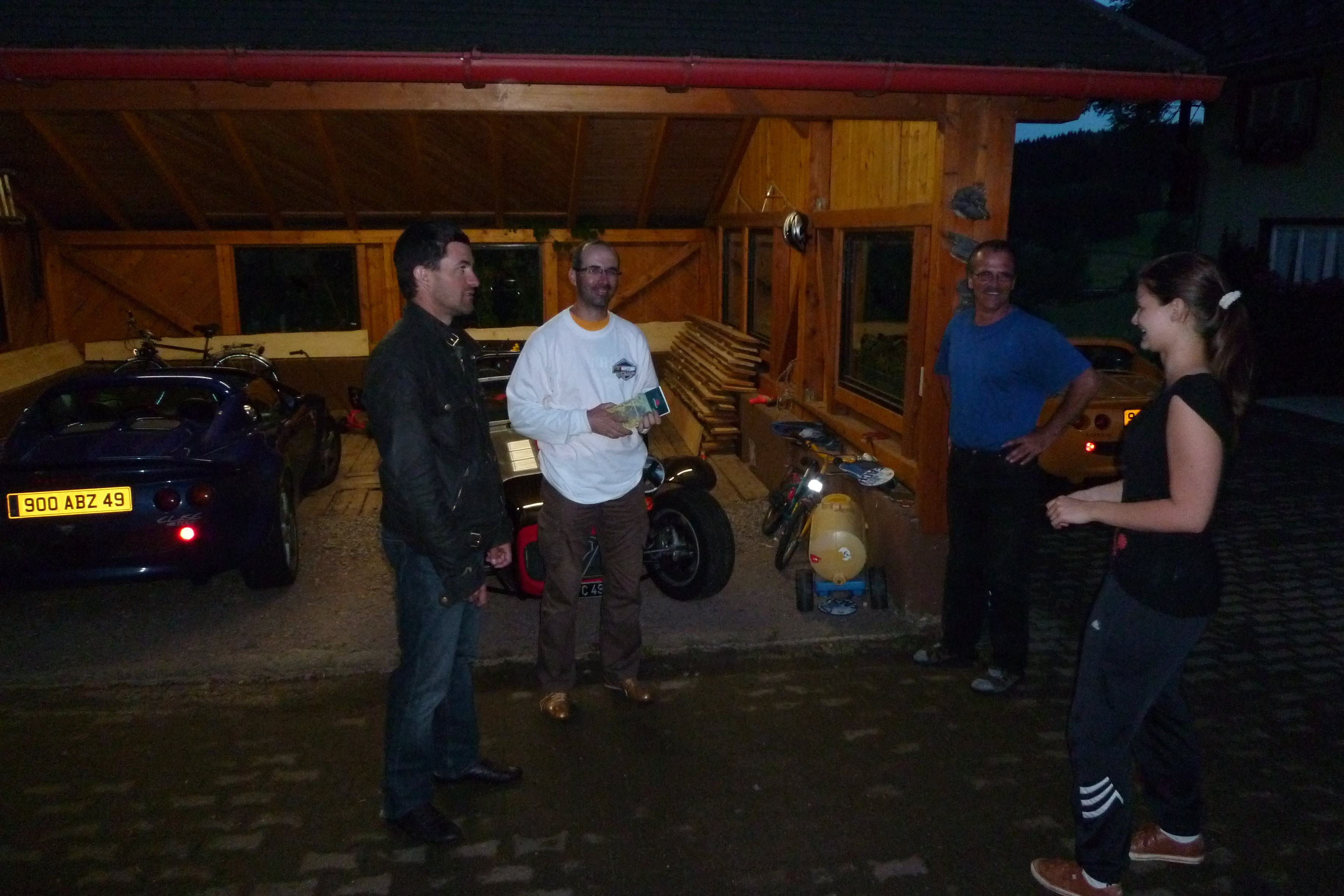 Ce matin, autre son de trompette, il pleut comme vache qui pisse !! Donc trankill, on profite du piti dej sous la véranda, nos hébergeurs sont tellement sympas qu'ils nous ont permis de mettre les voitures à l'abri, du coup le Villllo et le Sly décident de s'occuper de la tutusse Kanard WC avec démontage du disque et de l'étrier de frein avant gauche, pour constater que c'est bien la tôle de protection qui frotte, séance de retordage pour pouvoir finir ce fantastique road trip. Il est midi quand on décide de partir, il ne tombe plus que quelques gouttes et on décide de tracer quasiment direct vers la frontière française, car la Schwarzwald sous une chaussée encore détrempée, ce doit pas être vraiment funky. On repasse en France en traversant le Rhin par le bac et en débarquant dans la ville de Rhinau. On trace alors en direction des Vosges.