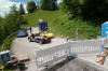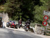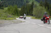 A Oberjoch, on tente une nouvelle expérience, la route parait barrée, un panneau qui ressemble assez fortement à notre panneau "interdit à tous véhicules", agrémenté de hiéroglyphes, on n'y comprend rien, on est des jeunes aventuriers fougueux donc on fonce !! Une belle petite descente de col, et seuls au monde puisque la route est barrée !! On en profite pour faire une pause dans la descente et profiter du paysage sans être dérangés par les voitures, et on finit pas comprendre pourquoi personne n'essaie de passer, même en Land Rover Discovery du Camel Trophy, ça parait infranchissable, alors avec nos pauvres tutusse !! Donc demi-tour et un bon crochet de 50 bornes pour atteindre l'autre coté de la vallée ....