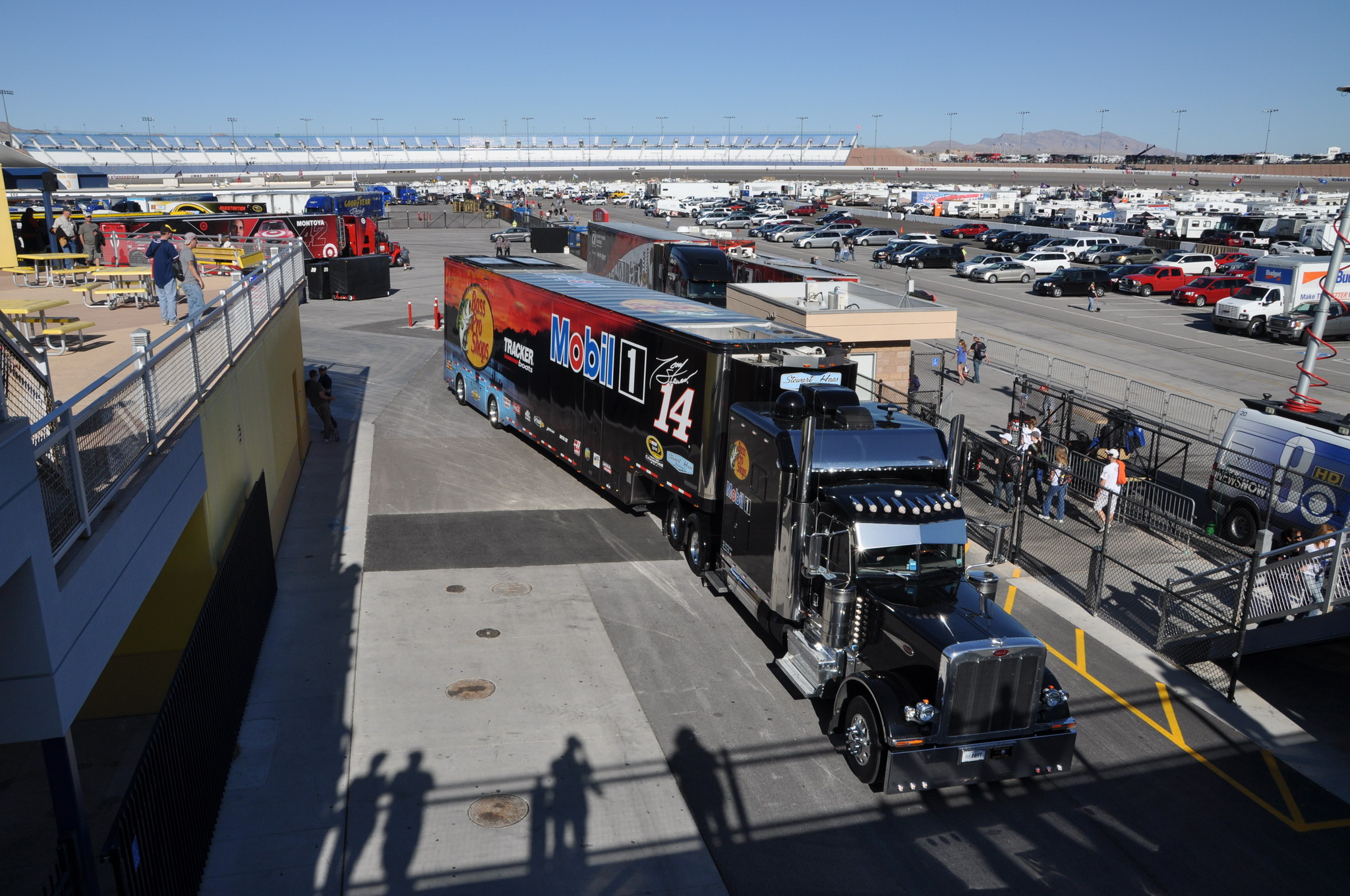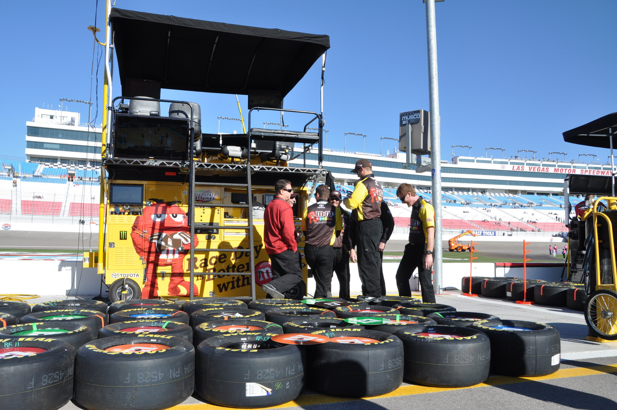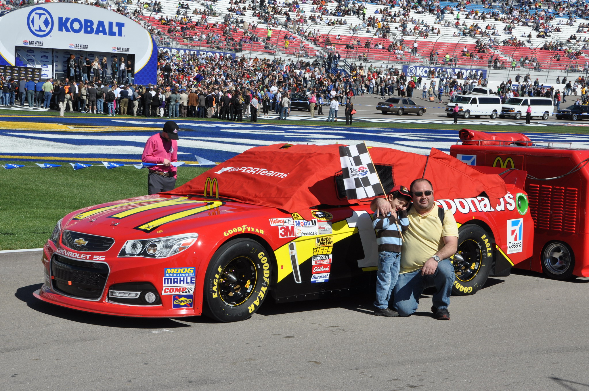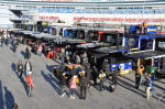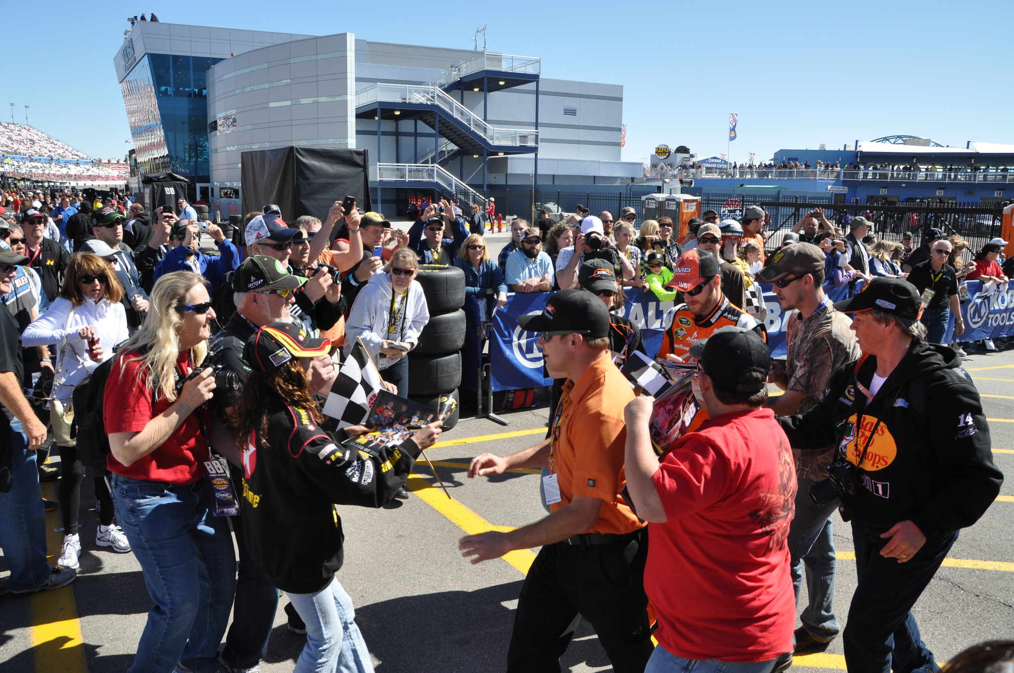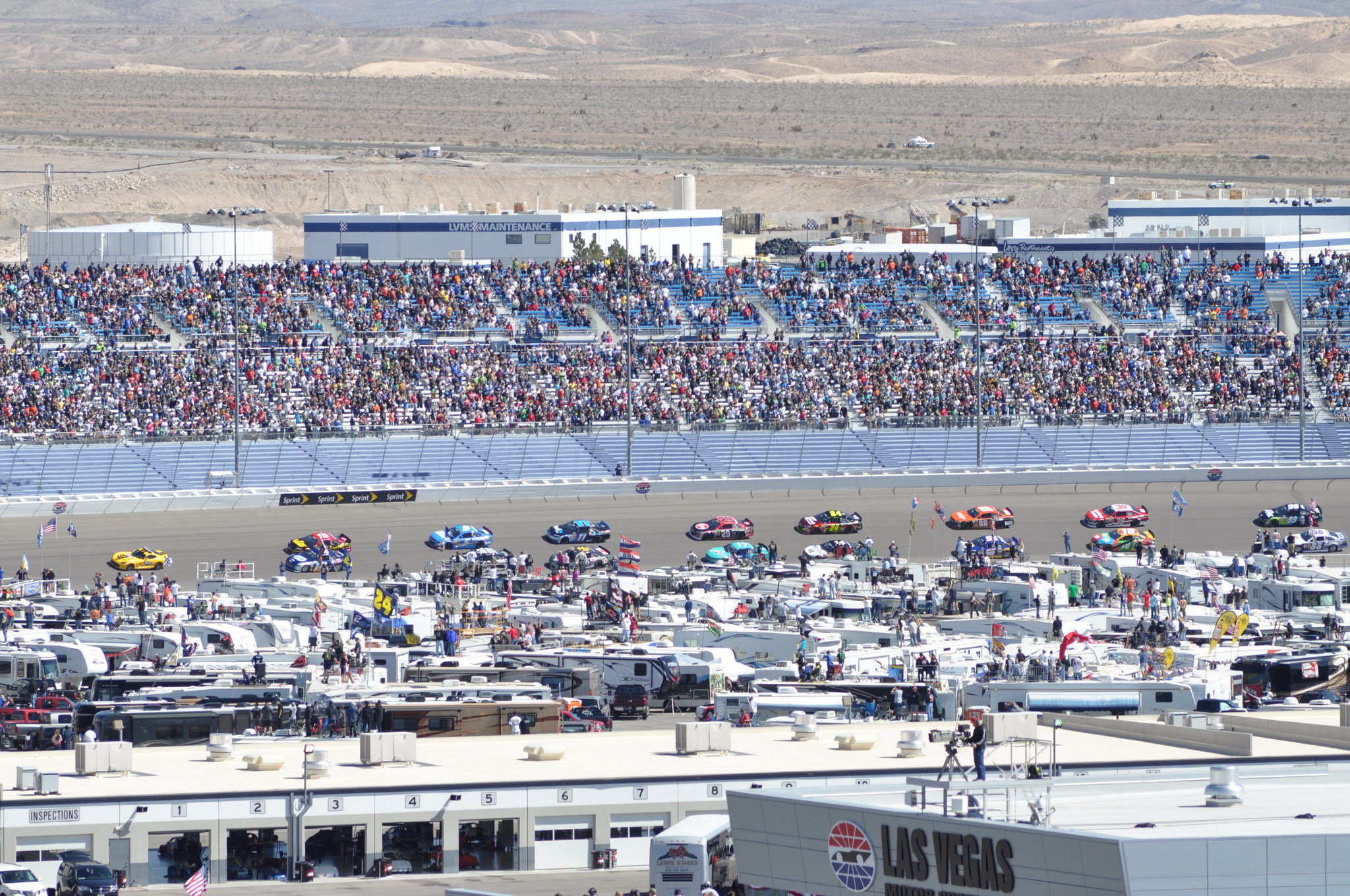 Et comme c'est de tradition le dimanche juste avant la course, et c'est aussi pour ça qu'on m'avait particulièrement conseillé la course de Vegas, toute la ligne des stands est ouverte aux fans. Les équipes, après l'inspection, y mettent les voitures, ce qui permet de toutes les voir de près, quelques animations sont organisées, avec un peu de chance, il est possible de voir les pilotes de près, le vrai spectacle de la Nascar pour les fans.