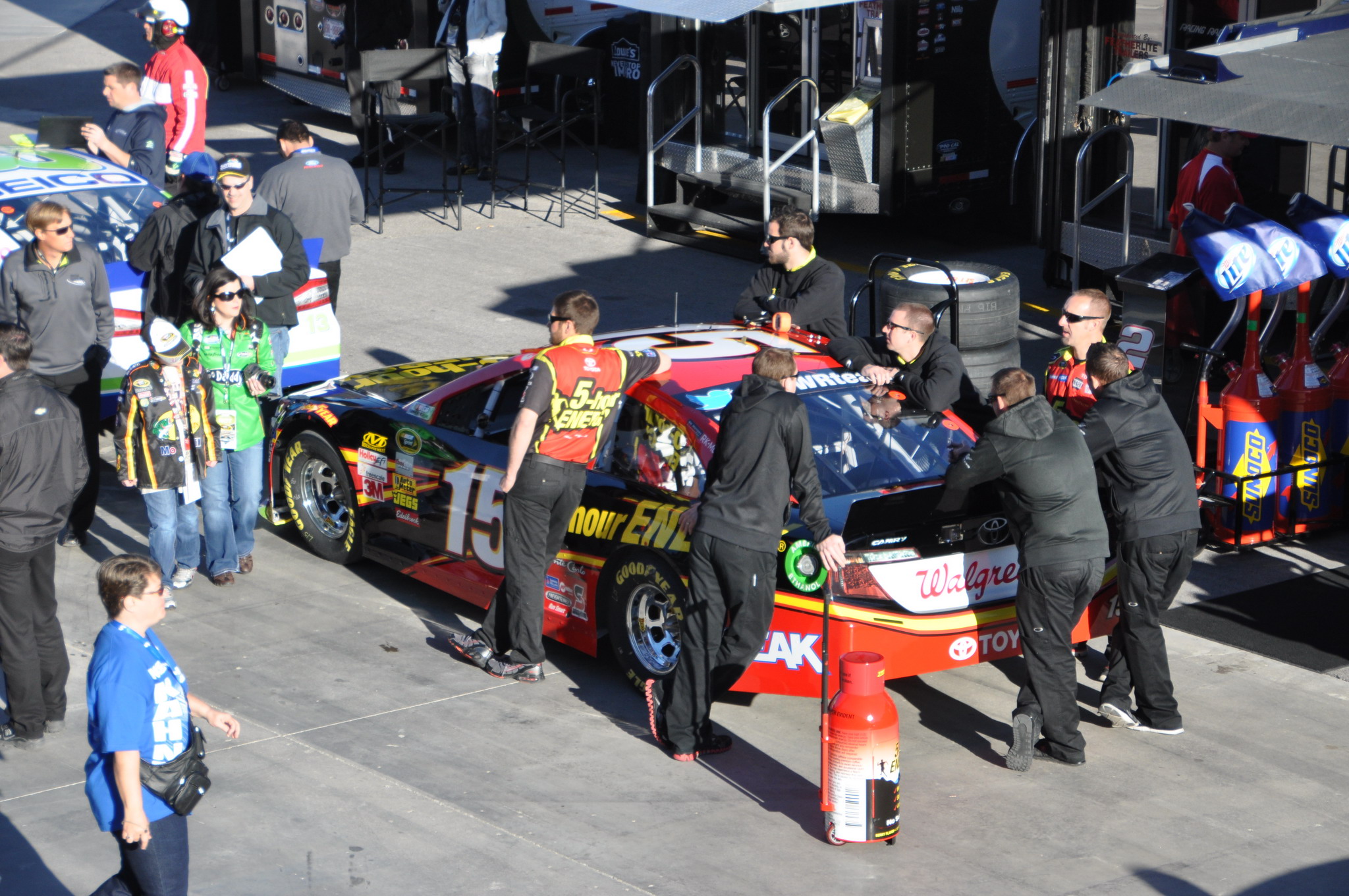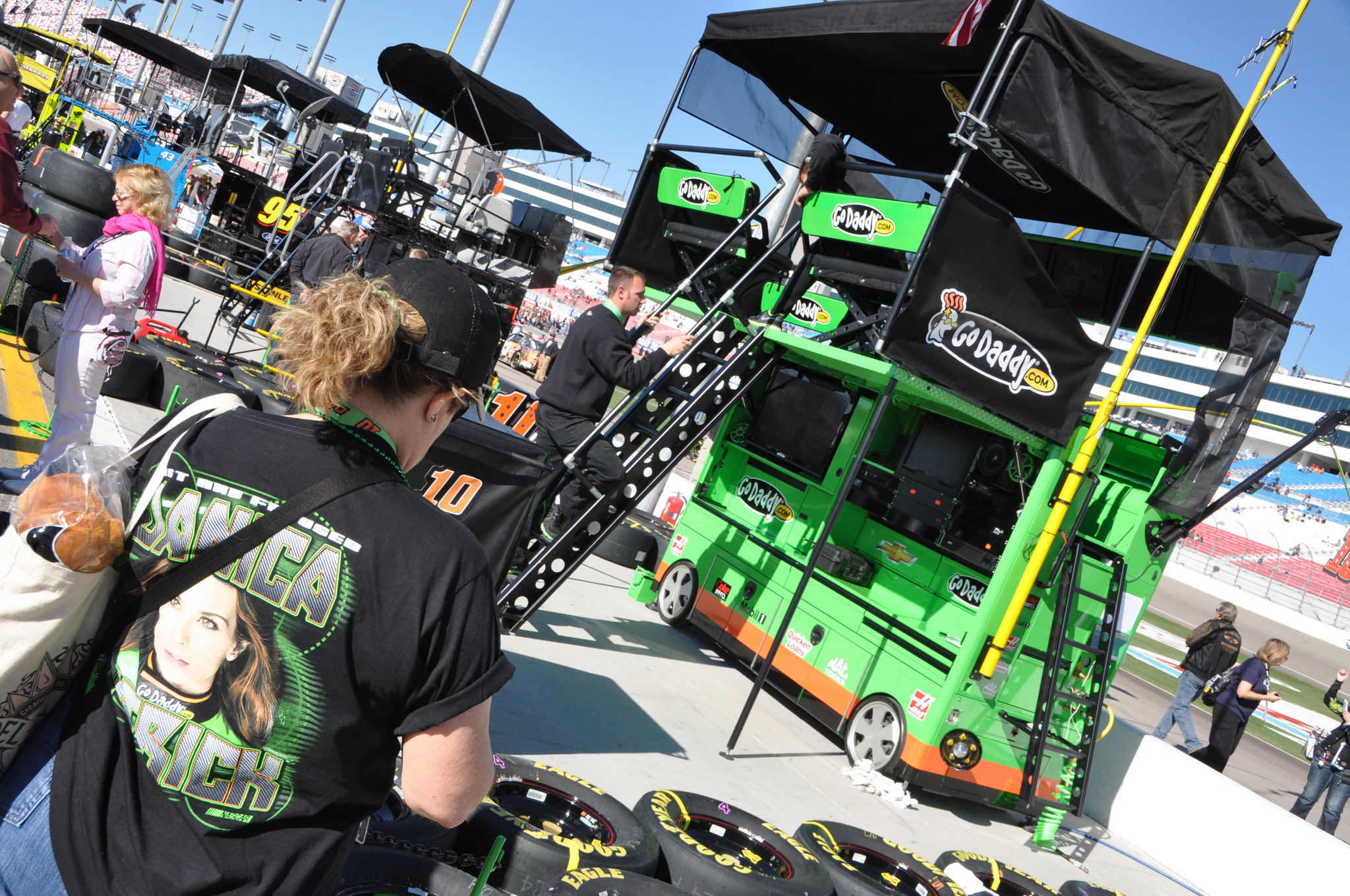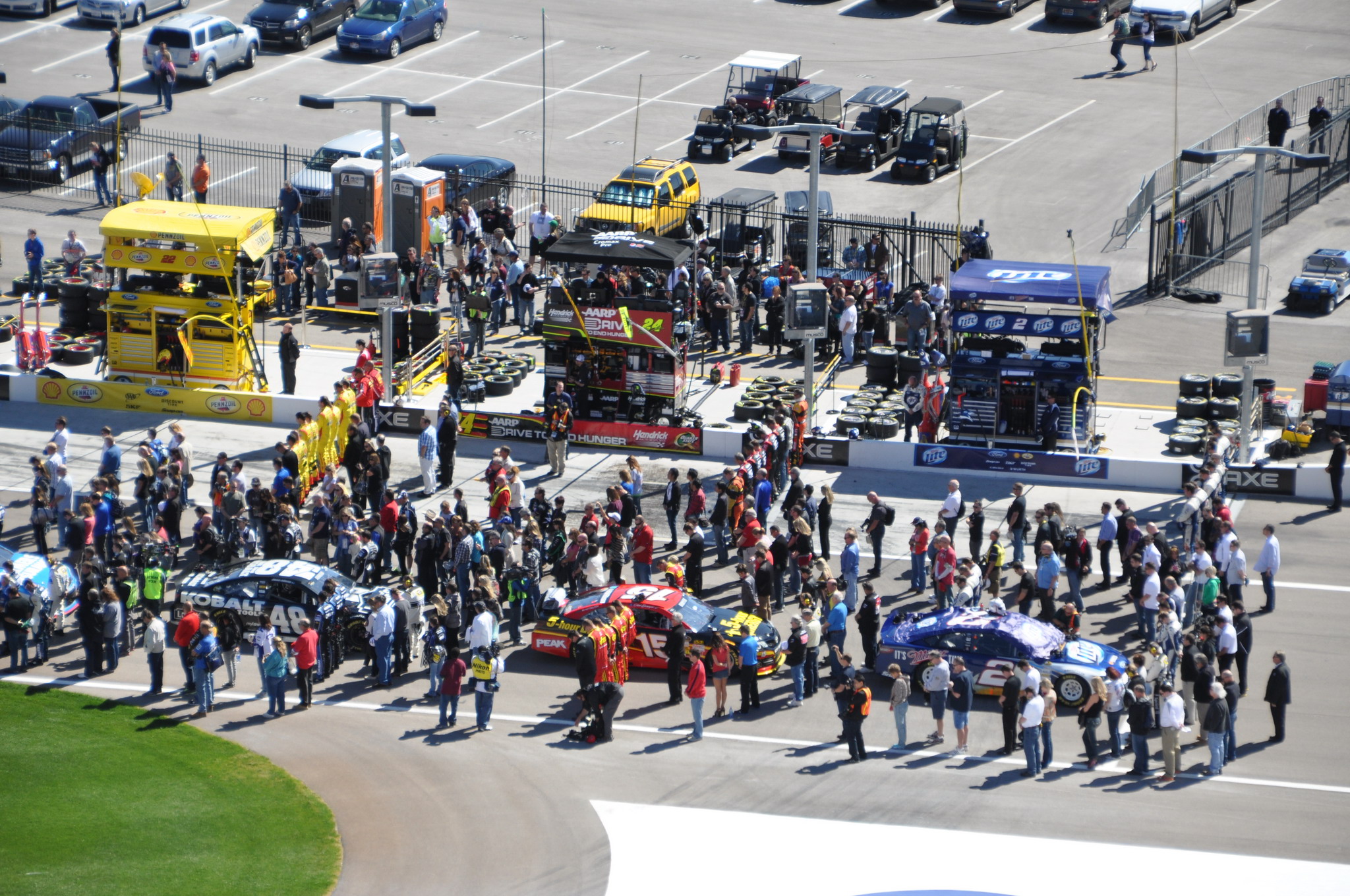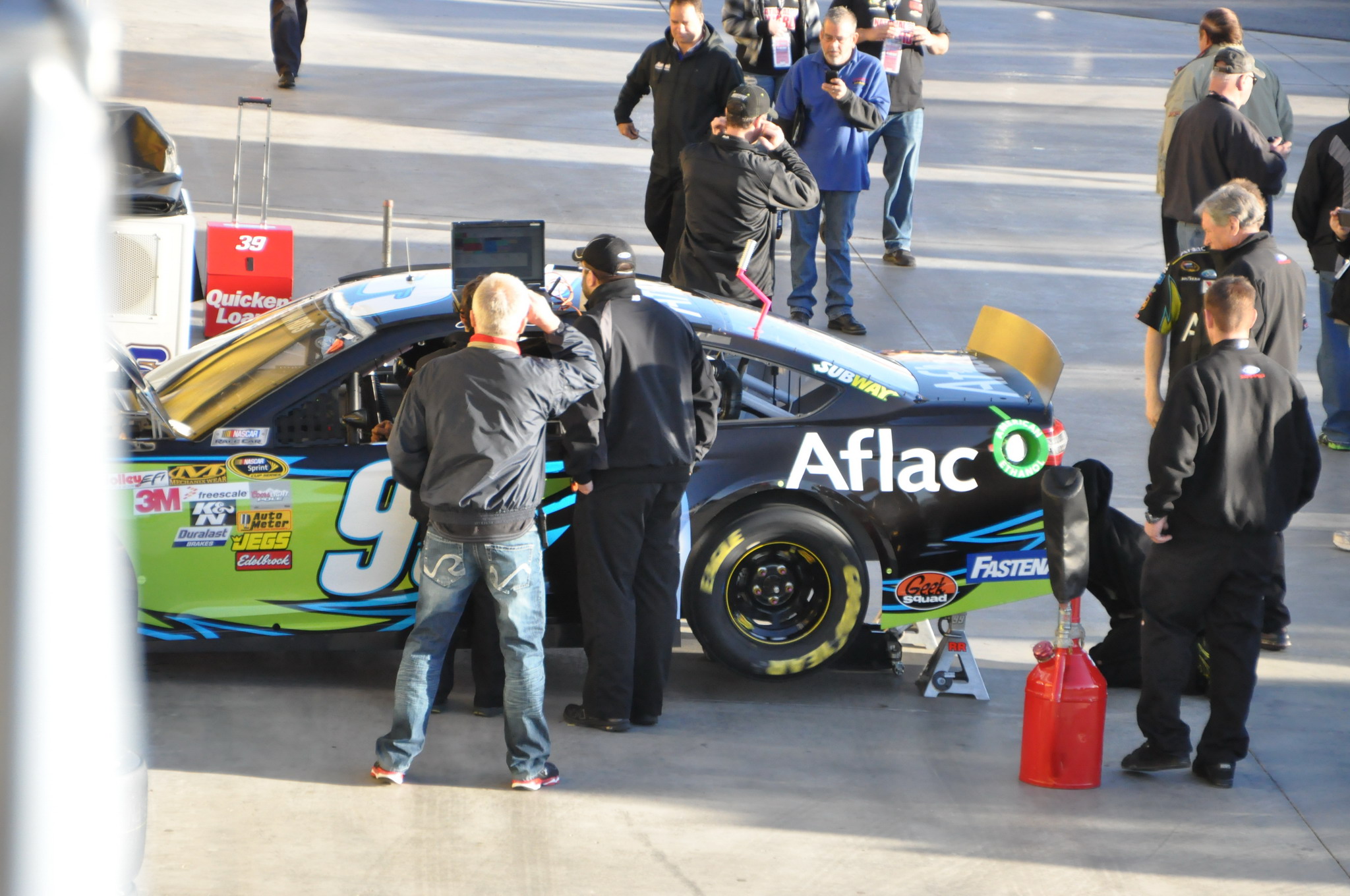Et comme c'est de tradition le dimanche juste avant la course, et c'est aussi pour ça qu'on m'avait particulièrement conseillé la course de Vegas, toute la ligne des stands est ouverte aux fans. Les équipes, après l'inspection, y mettent les voitures, ce qui permet de toutes les voir de près, quelques animations sont organisées, avec un peu de chance, il est possible de voir les pilotes de près, le vrai spectacle de la Nascar pour les fans.