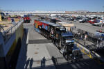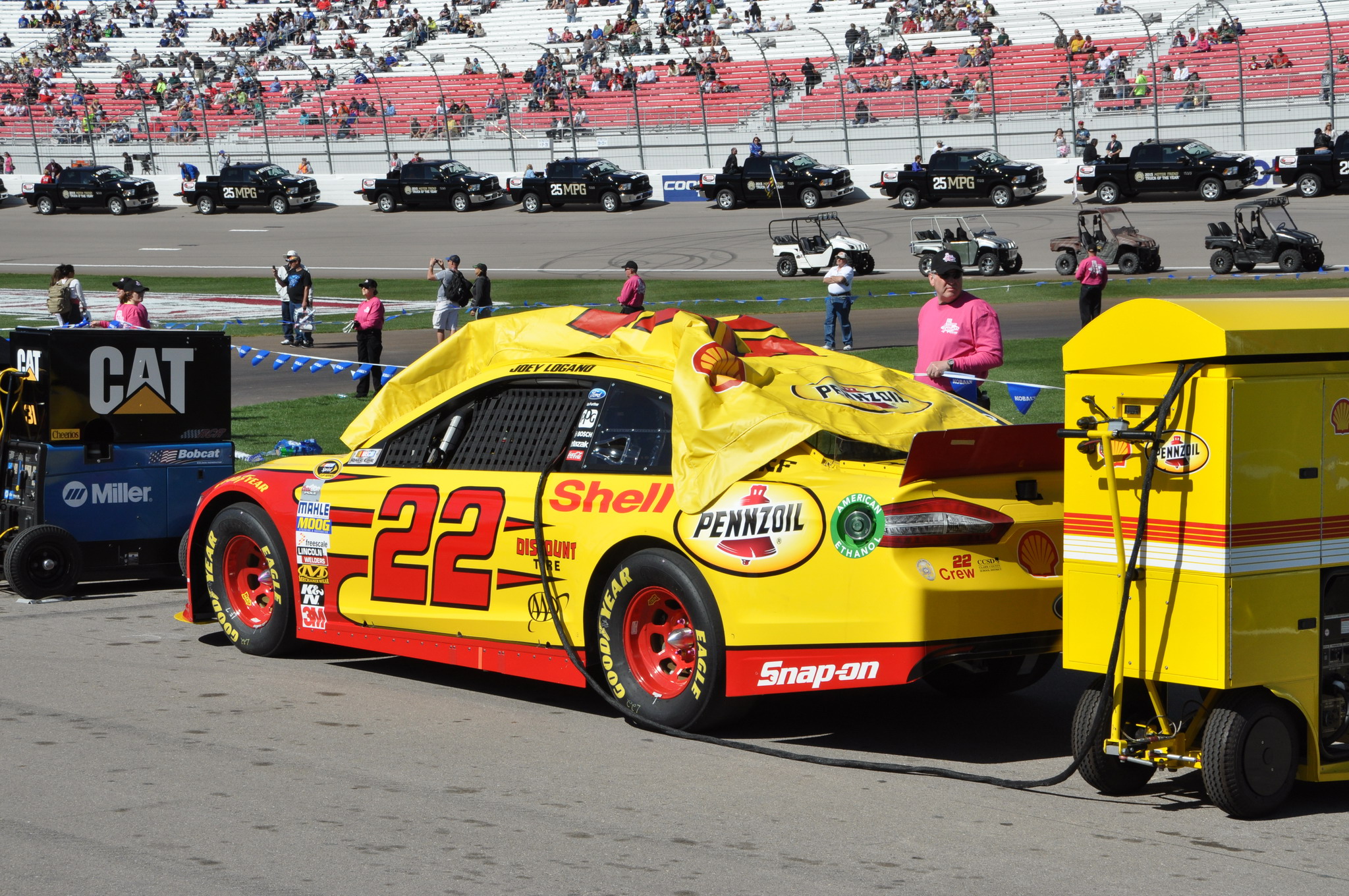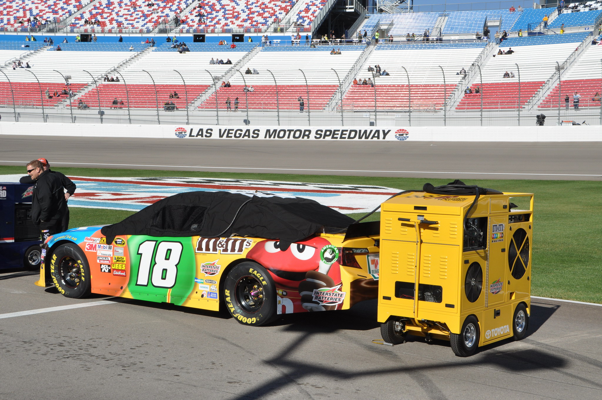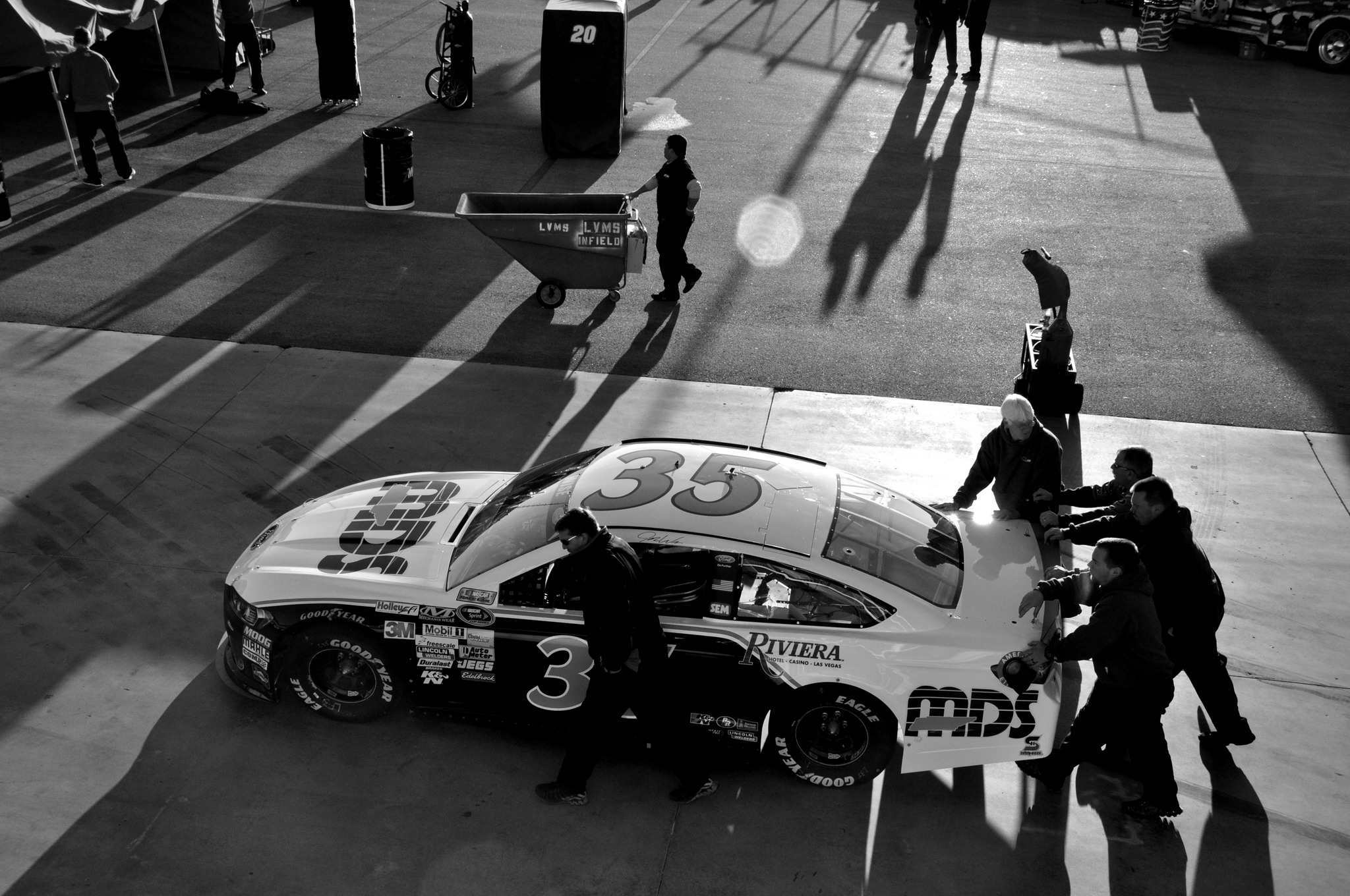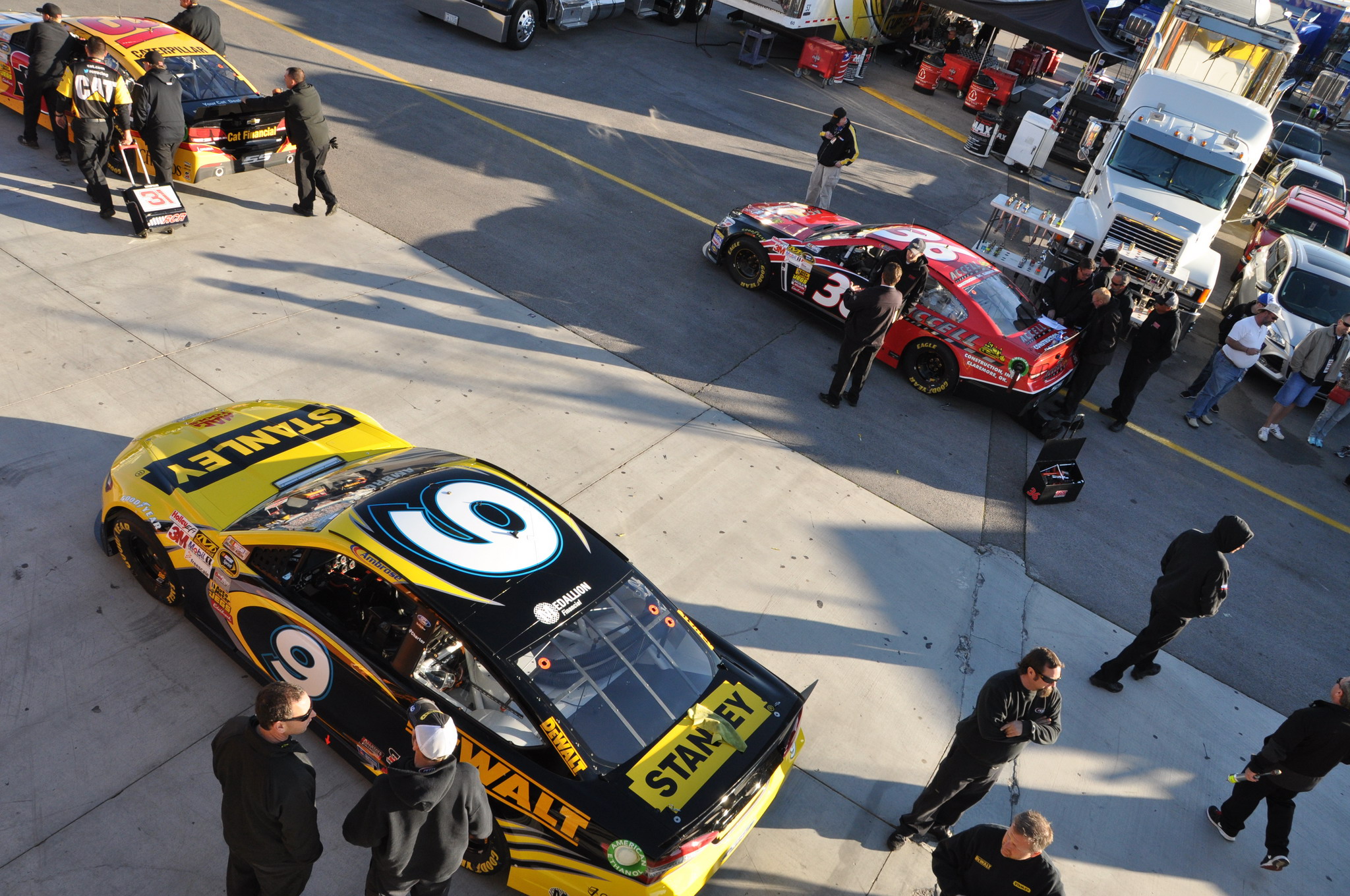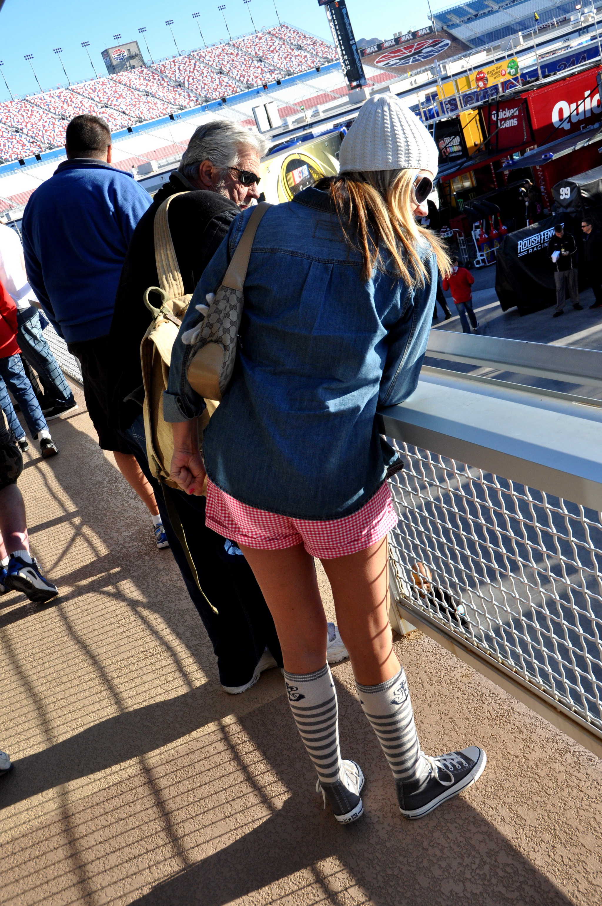 Et comme c'est de tradition le dimanche juste avant la course, et c'est aussi pour ça qu'on m'avait particulièrement conseillé la course de Vegas, toute la ligne des stands est ouverte aux fans. Les équipes, après l'inspection, y mettent les voitures, ce qui permet de toutes les voir de près, quelques animations sont organisées, avec un peu de chance, il est possible de voir les pilotes de près, le vrai spectacle de la Nascar pour les fans.