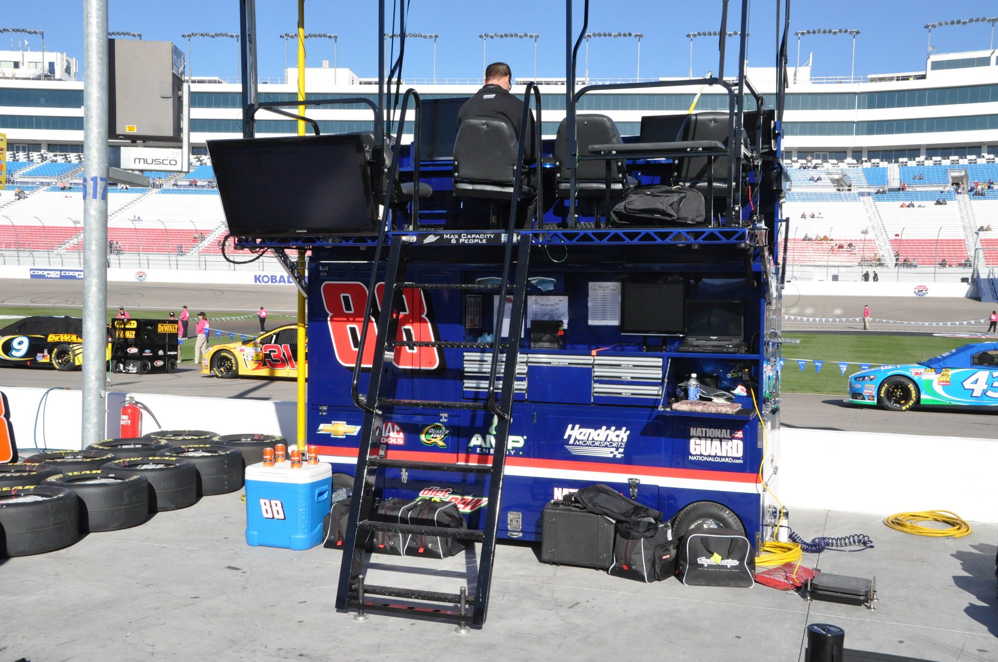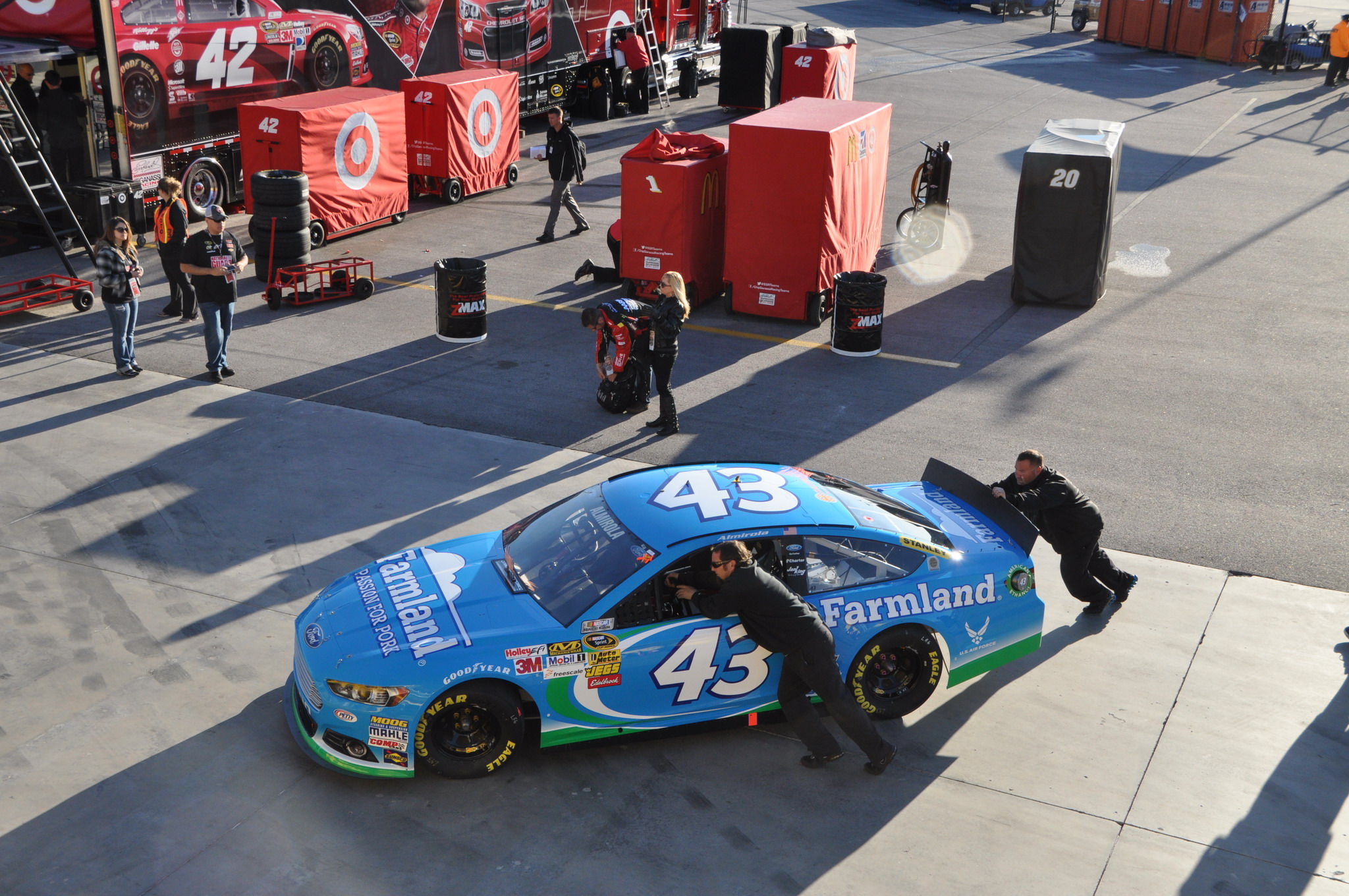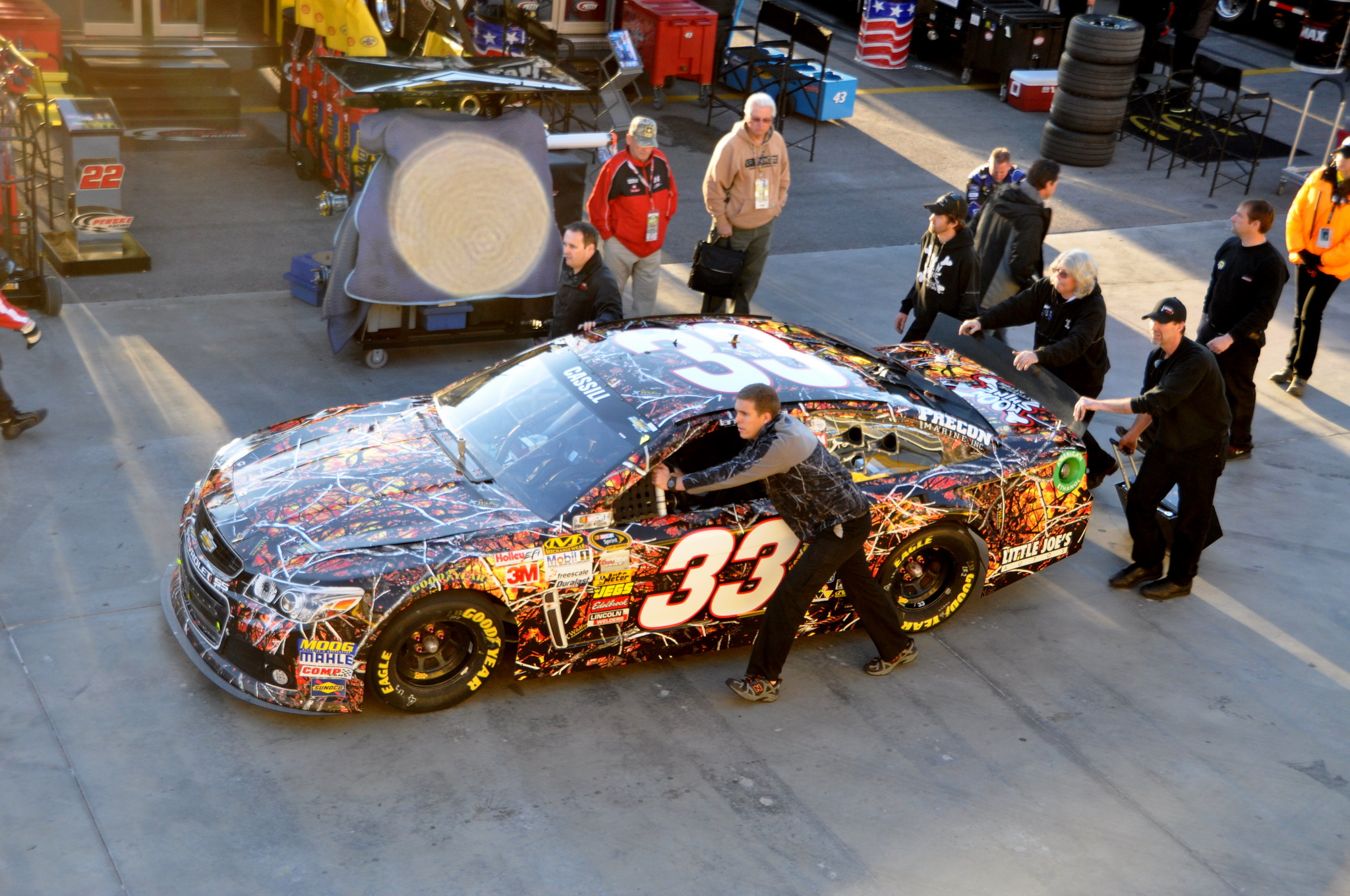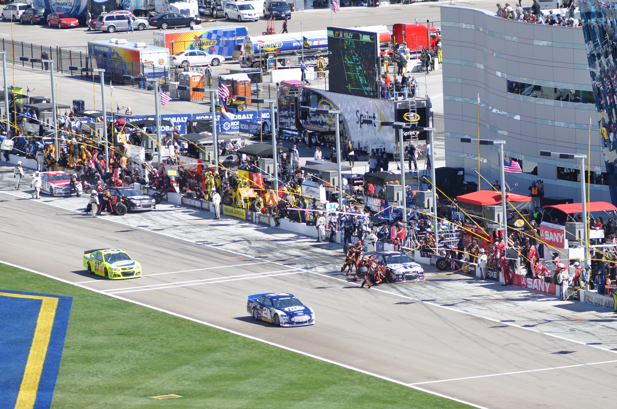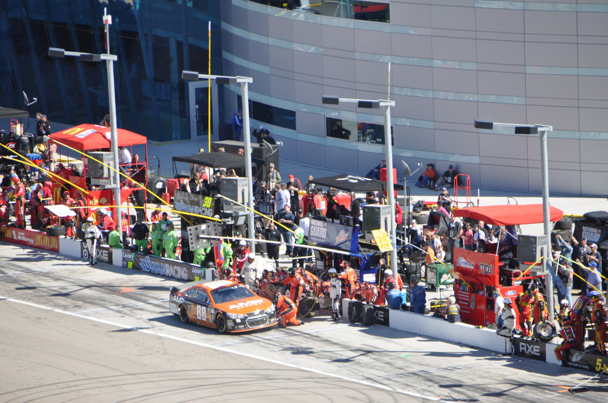 Et comme c'est de tradition le dimanche juste avant la course, et c'est aussi pour ça qu'on m'avait particulièrement conseillé la course de Vegas, toute la ligne des stands est ouverte aux fans. Les équipes, après l'inspection, y mettent les voitures, ce qui permet de toutes les voir de près, quelques animations sont organisées, avec un peu de chance, il est possible de voir les pilotes de près, le vrai spectacle de la Nascar pour les fans.