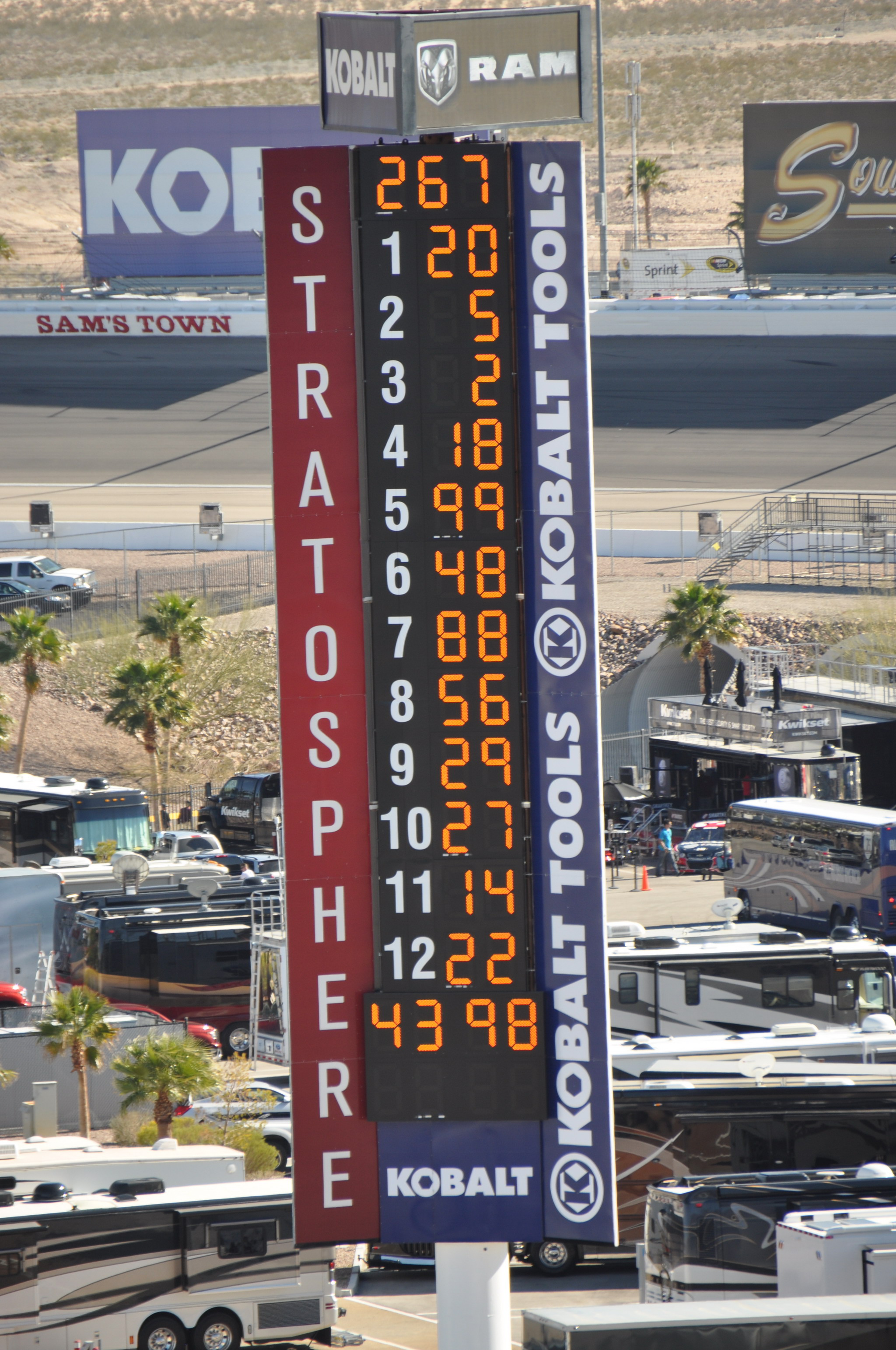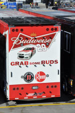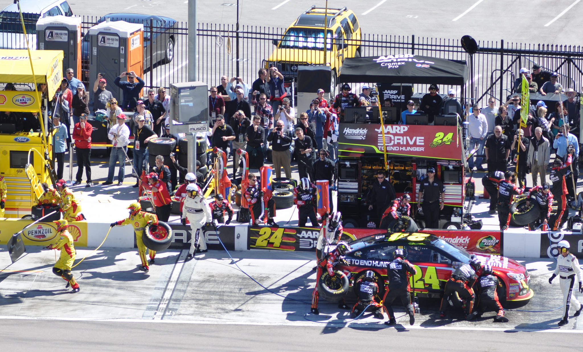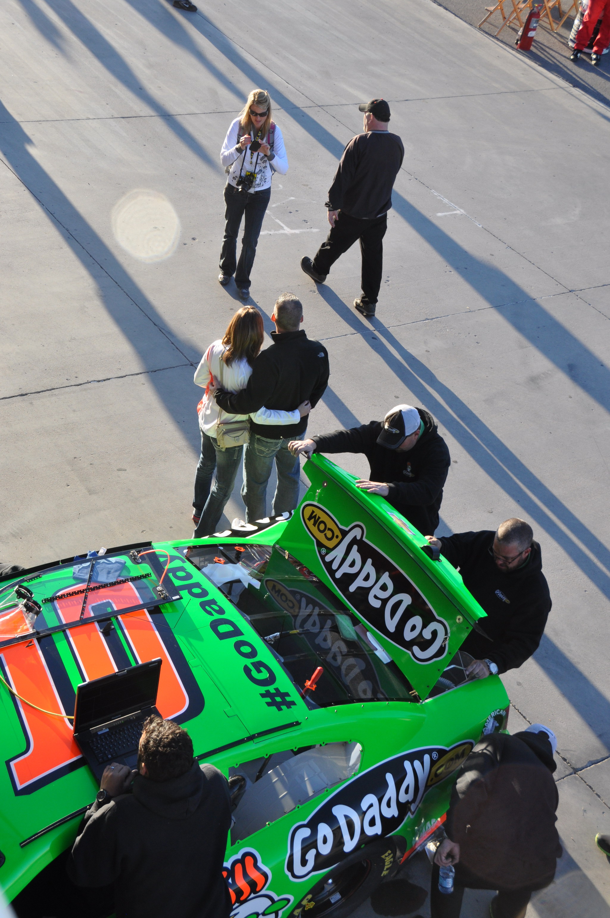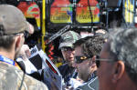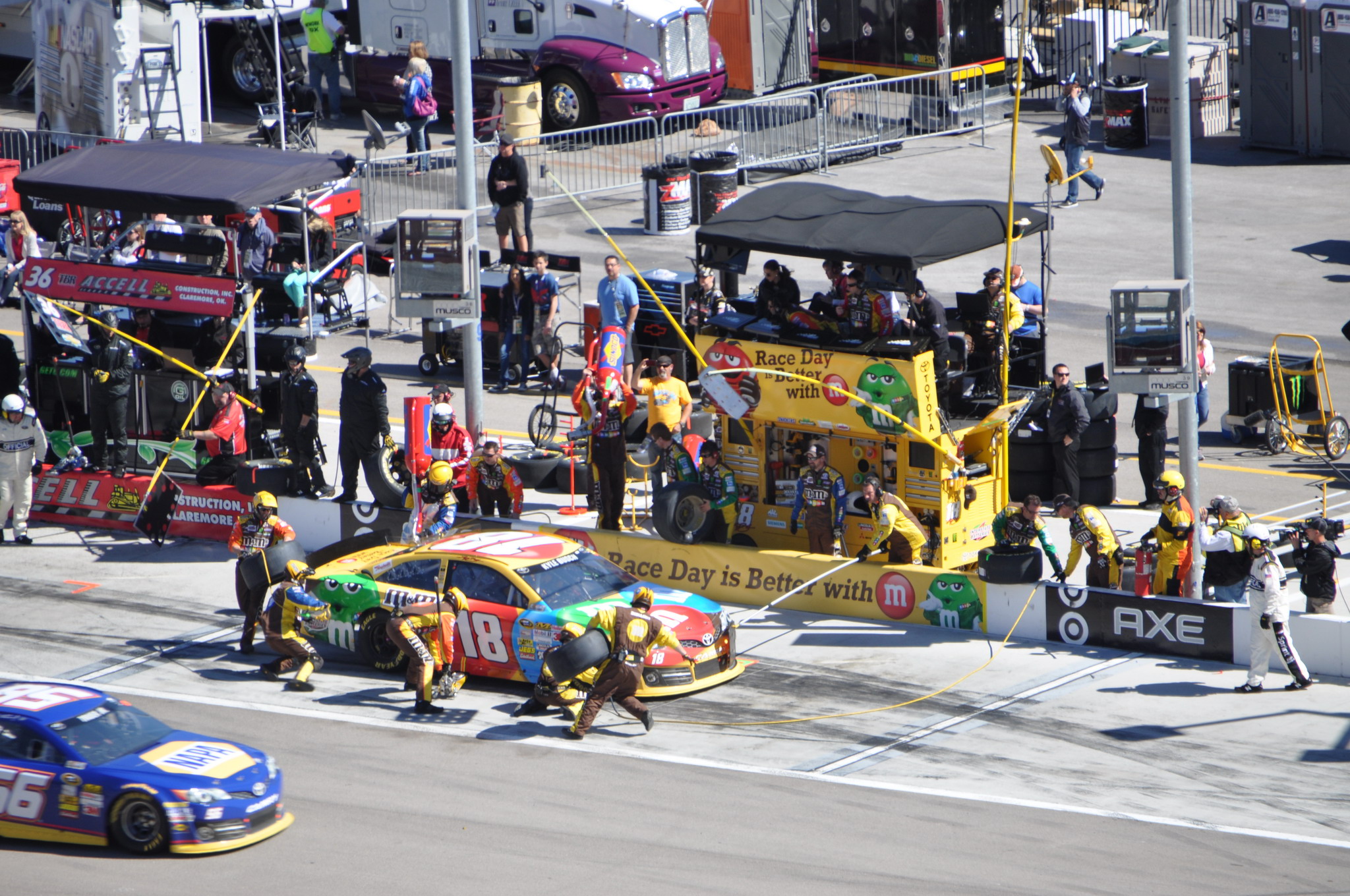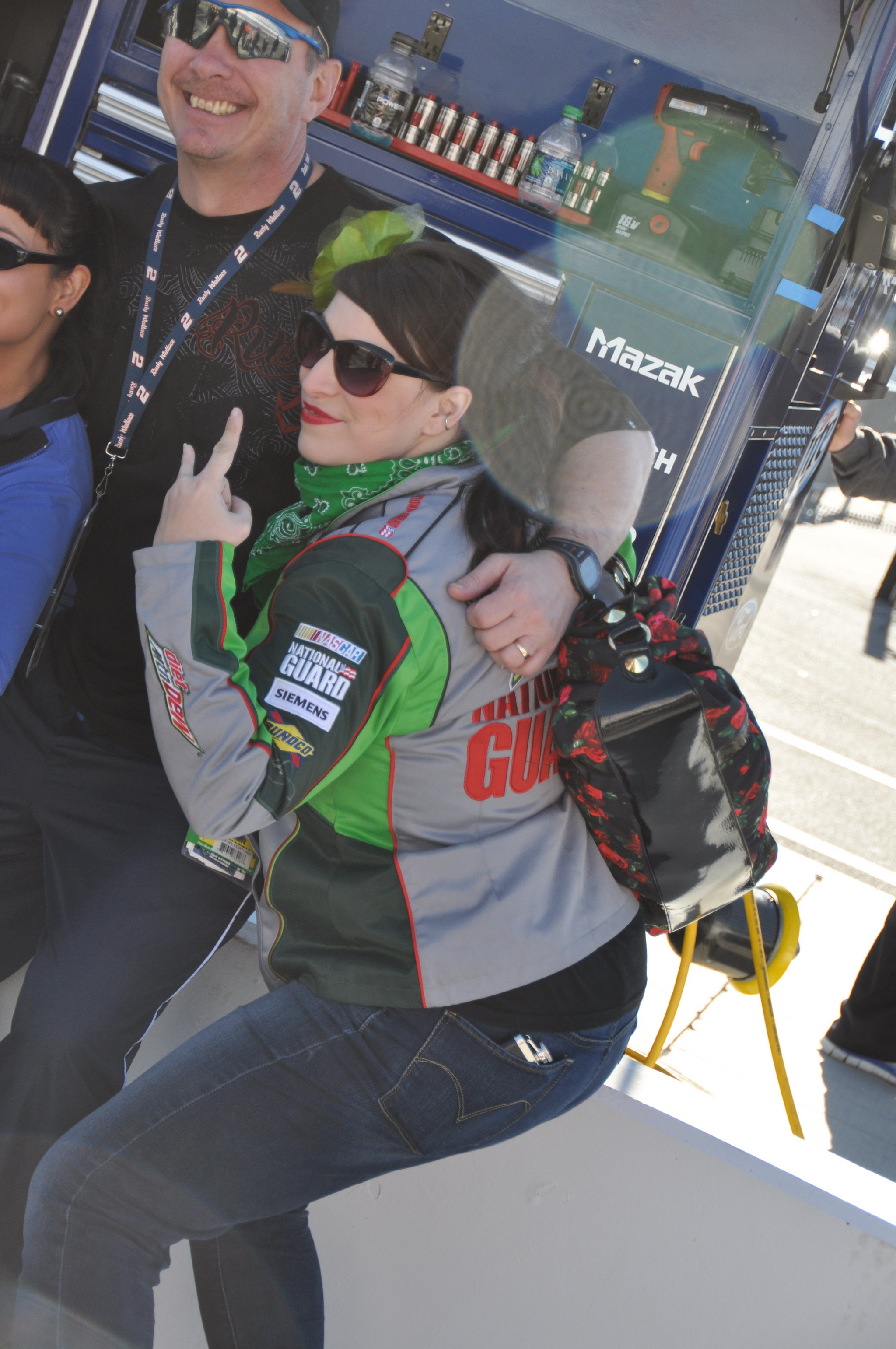Et comme c'est de tradition le dimanche juste avant la course, et c'est aussi pour ça qu'on m'avait particulièrement conseillé la course de Vegas, toute la ligne des stands est ouverte aux fans. Les équipes, après l'inspection, y mettent les voitures, ce qui permet de toutes les voir de près, quelques animations sont organisées, avec un peu de chance, il est possible de voir les pilotes de près, le vrai spectacle de la Nascar pour les fans.
