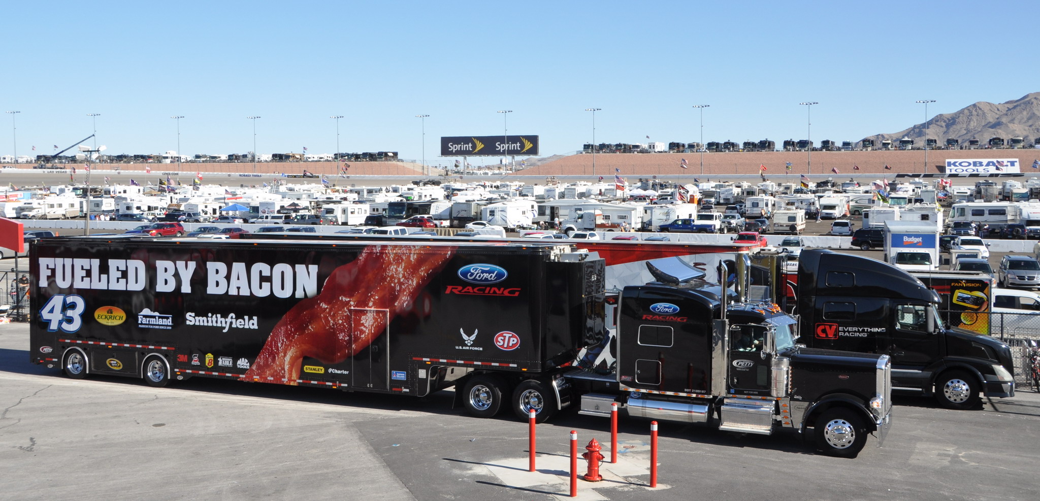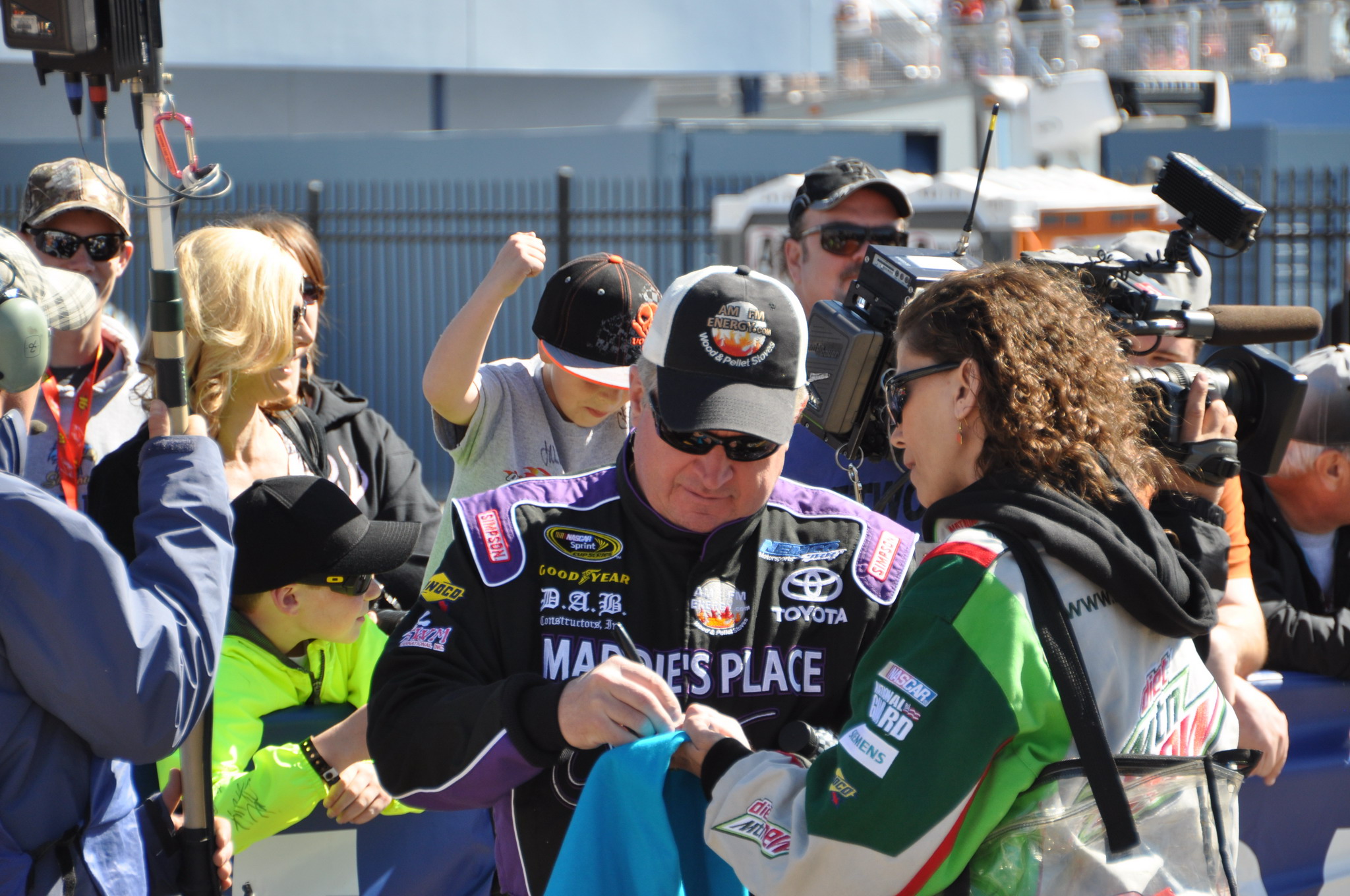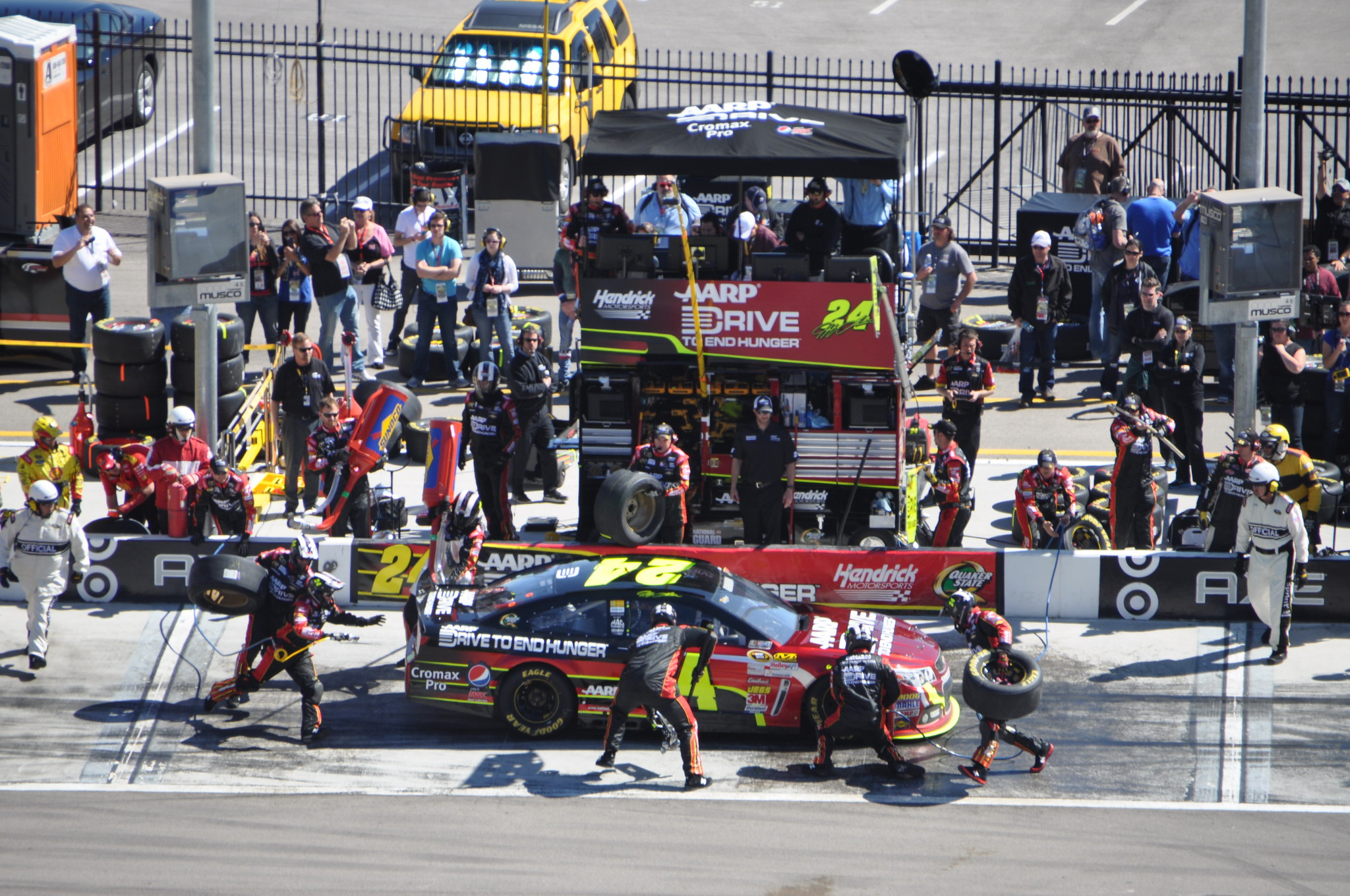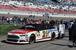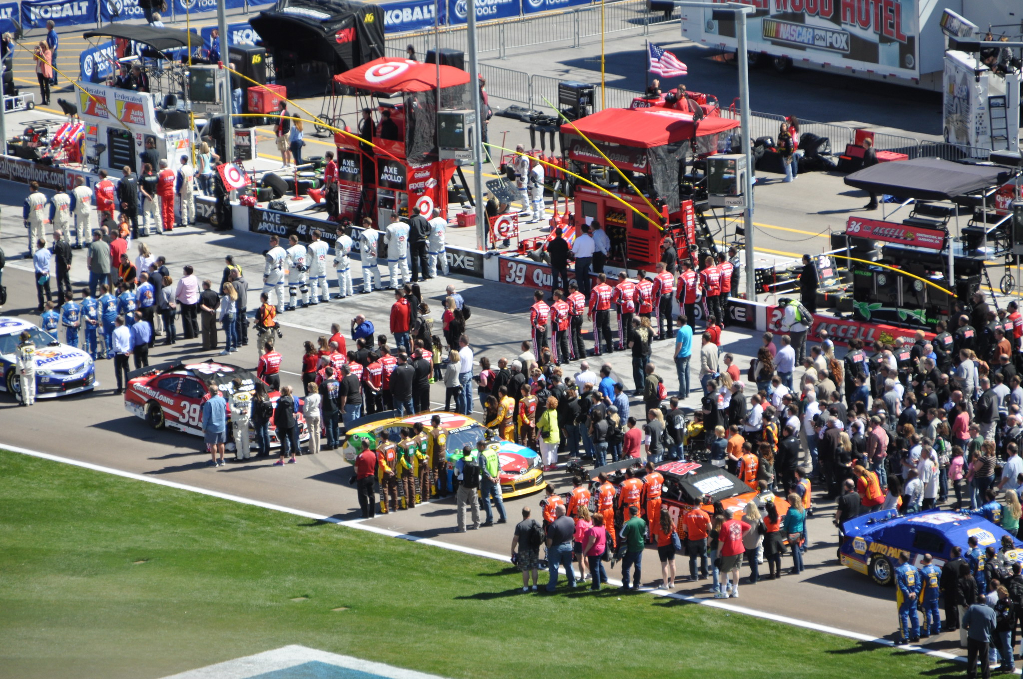 Et comme c'est de tradition le dimanche juste avant la course, et c'est aussi pour ça qu'on m'avait particulièrement conseillé la course de Vegas, toute la ligne des stands est ouverte aux fans. Les équipes, après l'inspection, y mettent les voitures, ce qui permet de toutes les voir de près, quelques animations sont organisées, avec un peu de chance, il est possible de voir les pilotes de près, le vrai spectacle de la Nascar pour les fans.