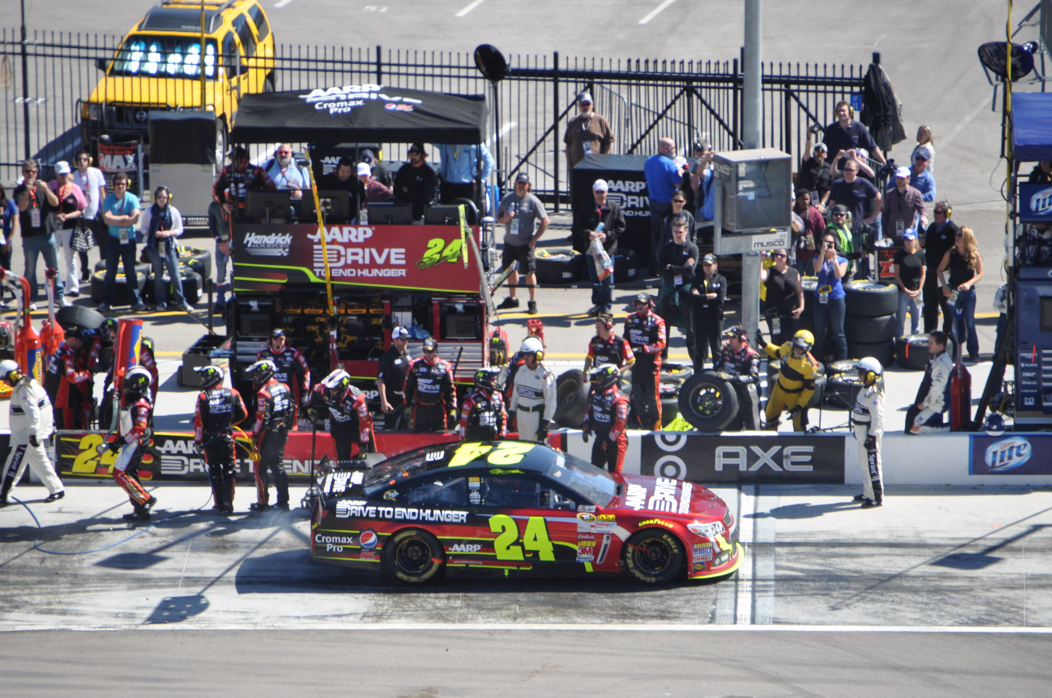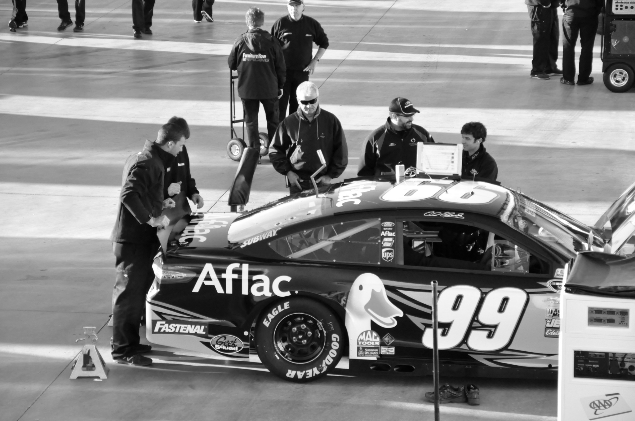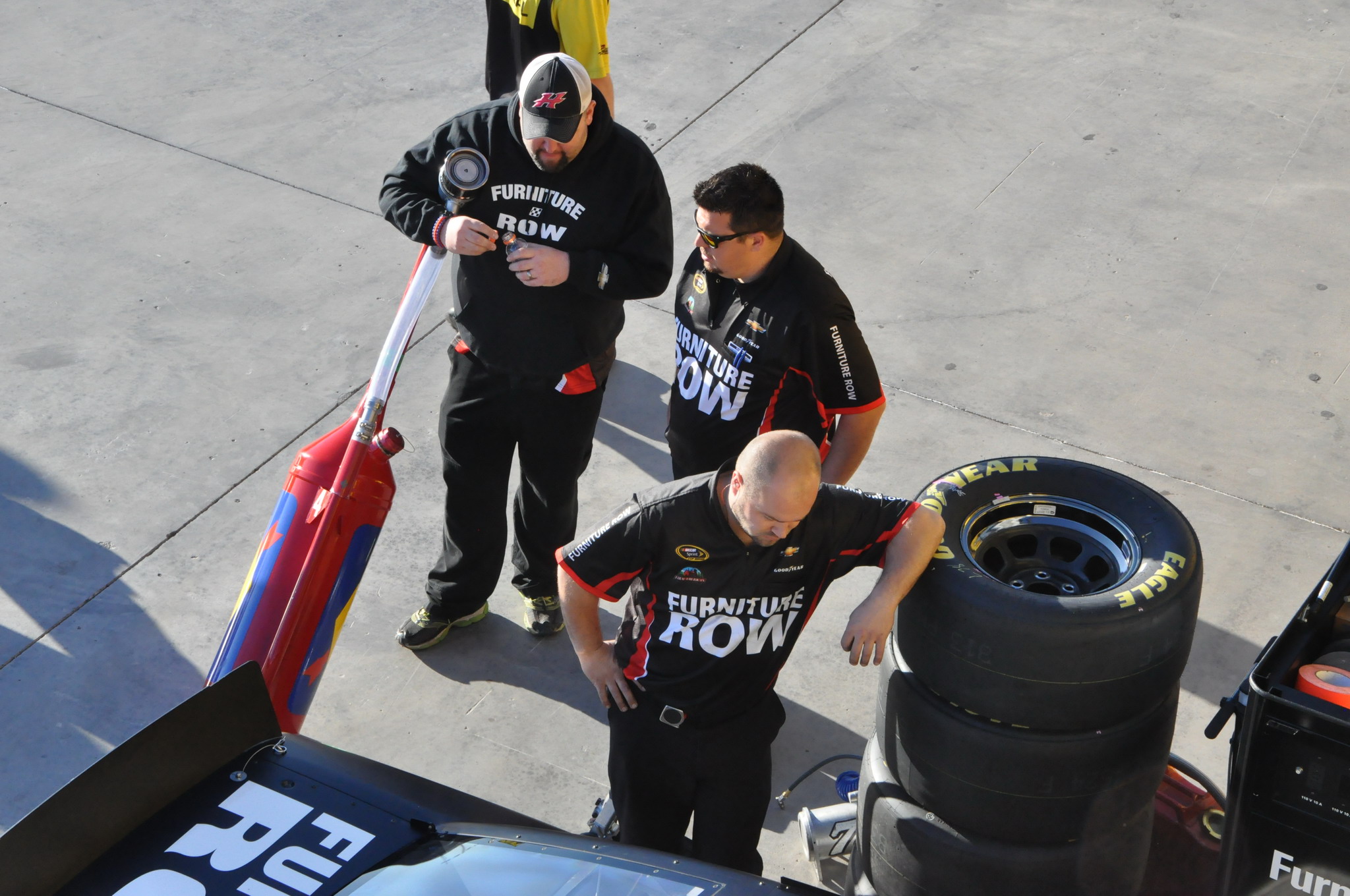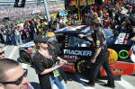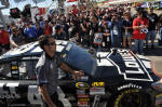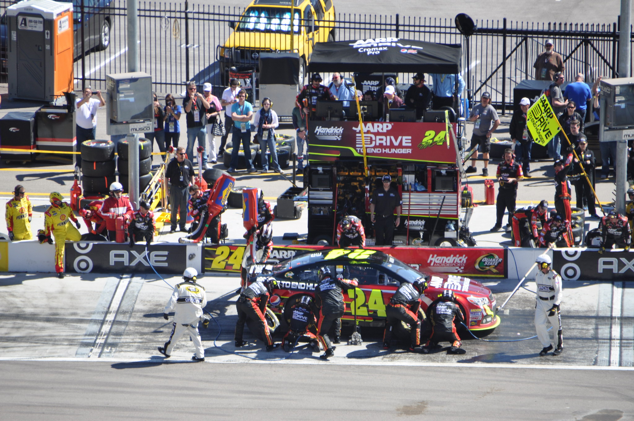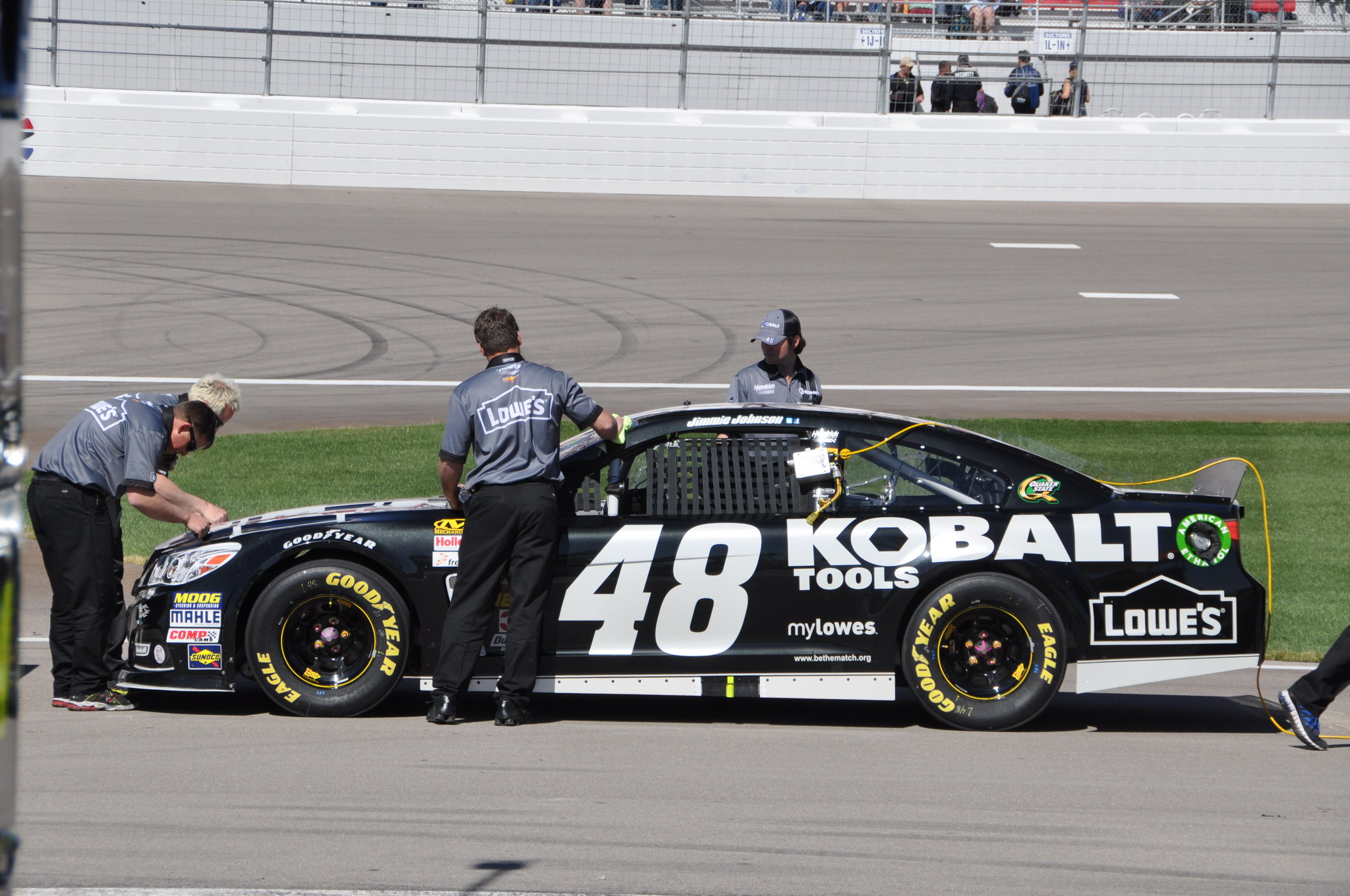 Et comme c'est de tradition le dimanche juste avant la course, et c'est aussi pour ça qu'on m'avait particulièrement conseillé la course de Vegas, toute la ligne des stands est ouverte aux fans. Les équipes, après l'inspection, y mettent les voitures, ce qui permet de toutes les voir de près, quelques animations sont organisées, avec un peu de chance, il est possible de voir les pilotes de près, le vrai spectacle de la Nascar pour les fans.