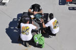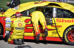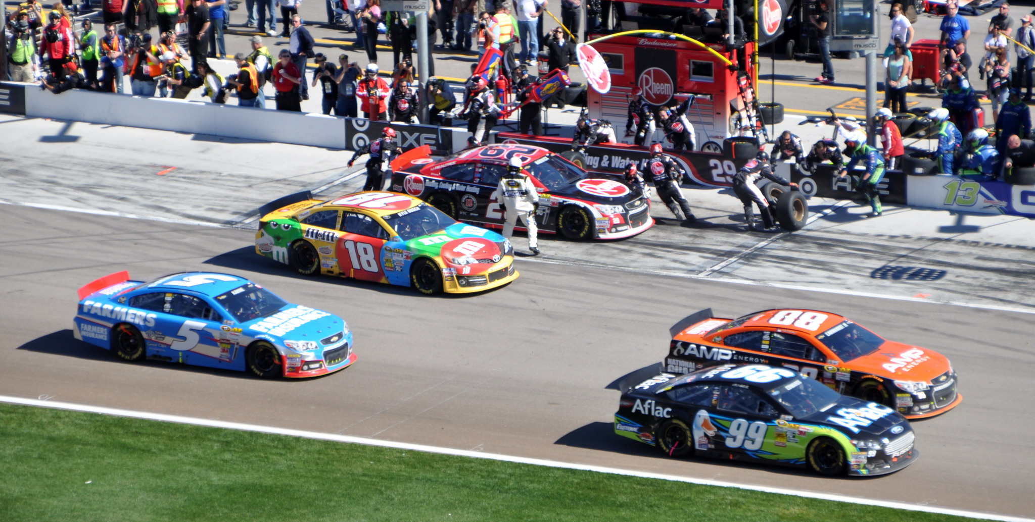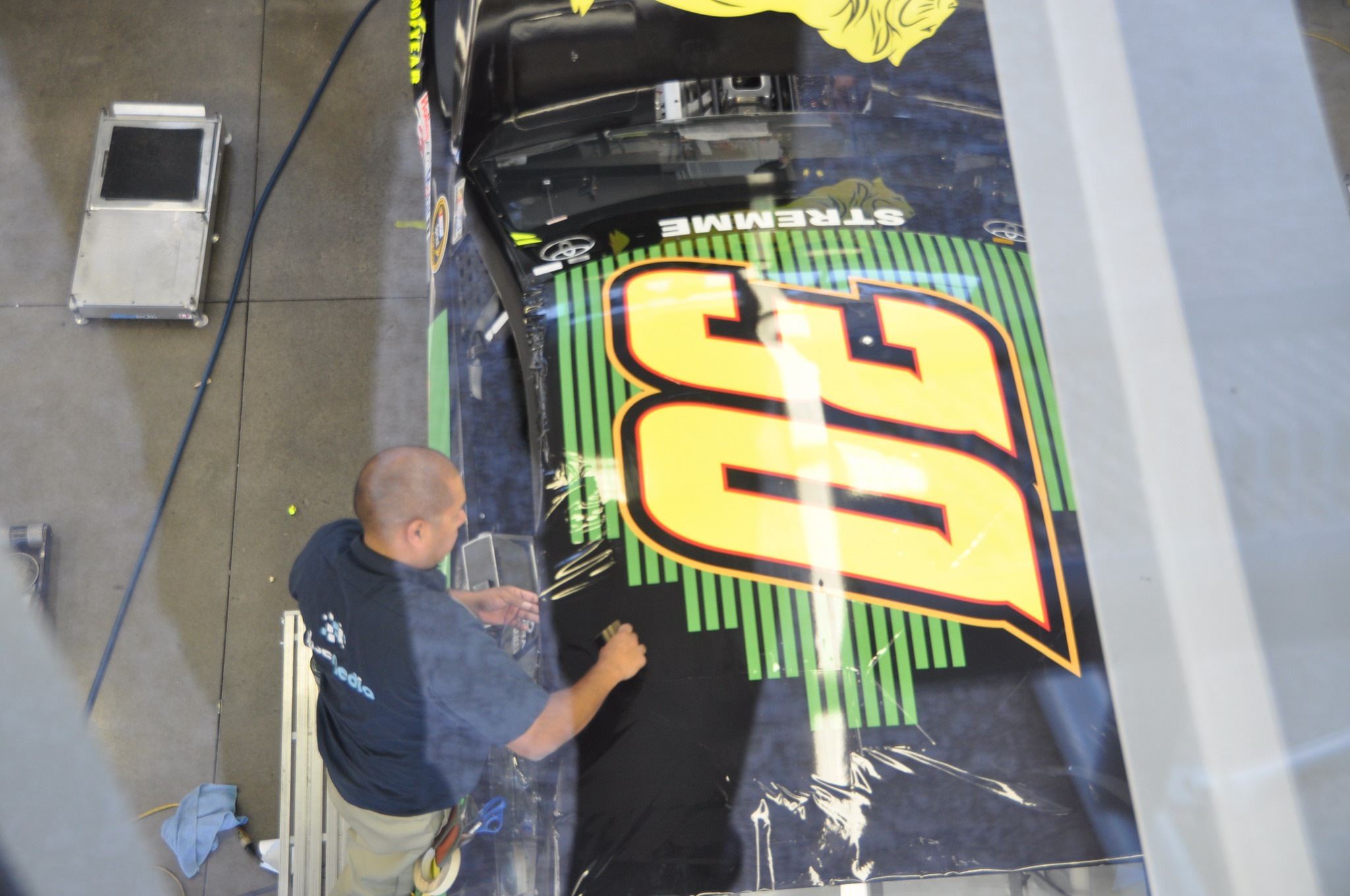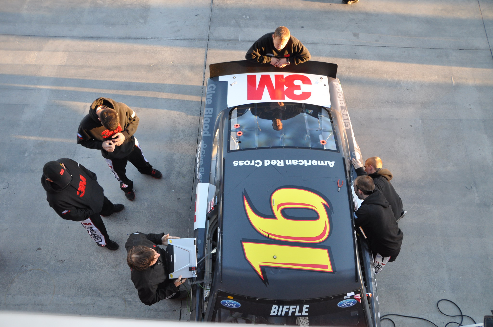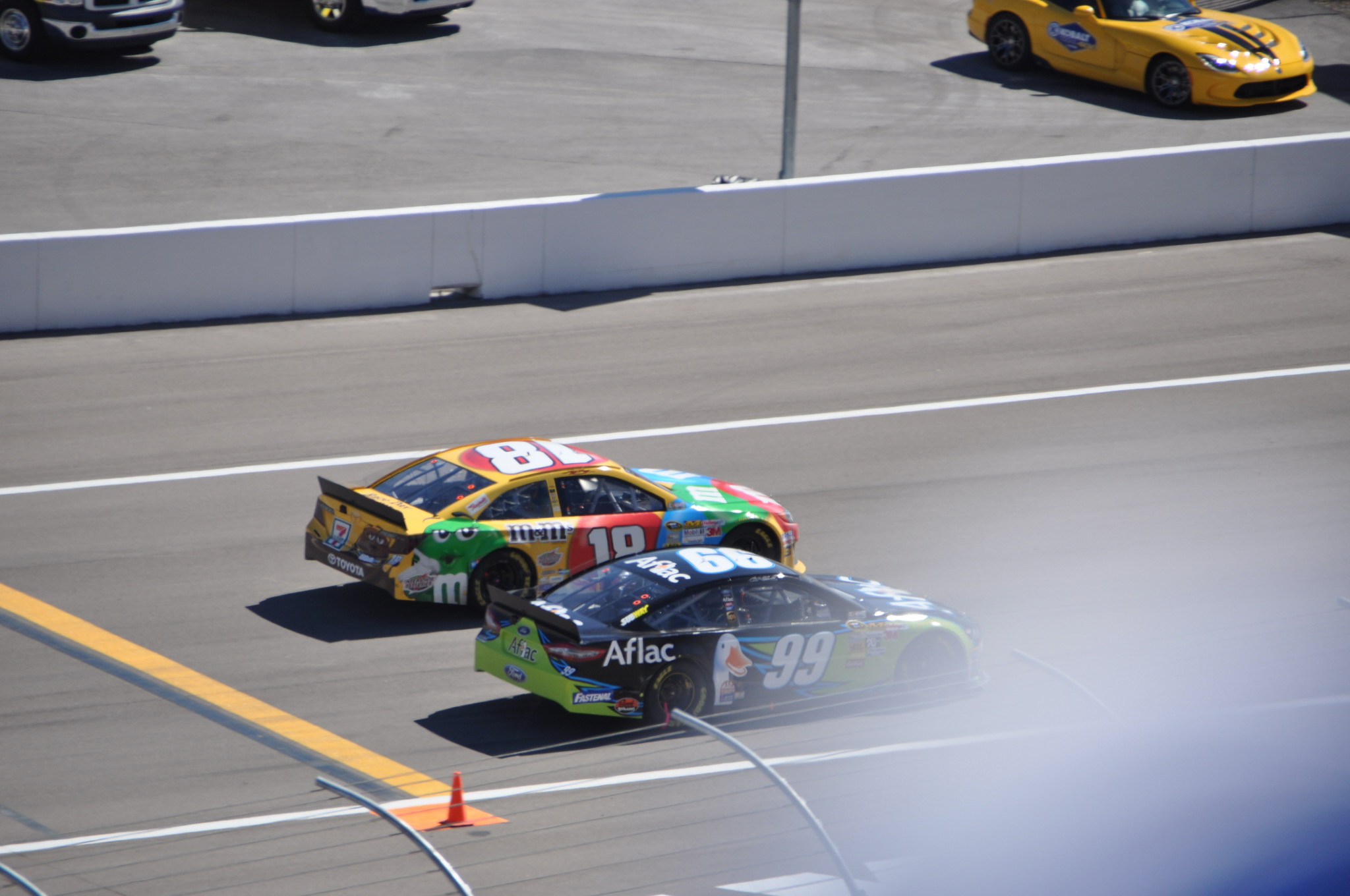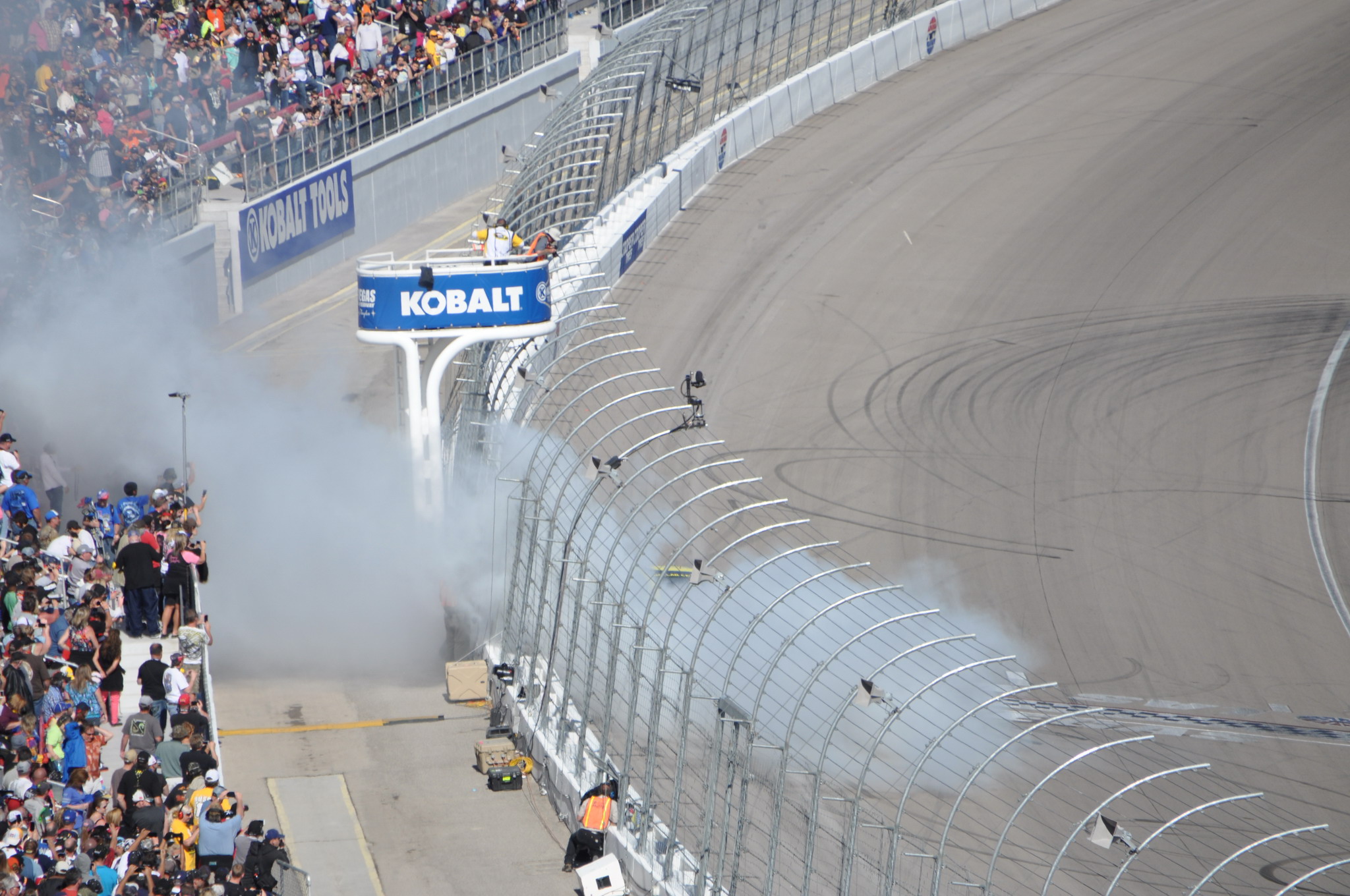 Et comme c'est de tradition le dimanche juste avant la course, et c'est aussi pour ça qu'on m'avait particulièrement conseillé la course de Vegas, toute la ligne des stands est ouverte aux fans. Les équipes, après l'inspection, y mettent les voitures, ce qui permet de toutes les voir de près, quelques animations sont organisées, avec un peu de chance, il est possible de voir les pilotes de près, le vrai spectacle de la Nascar pour les fans.