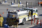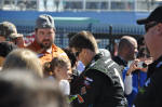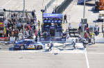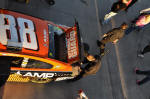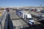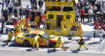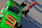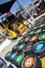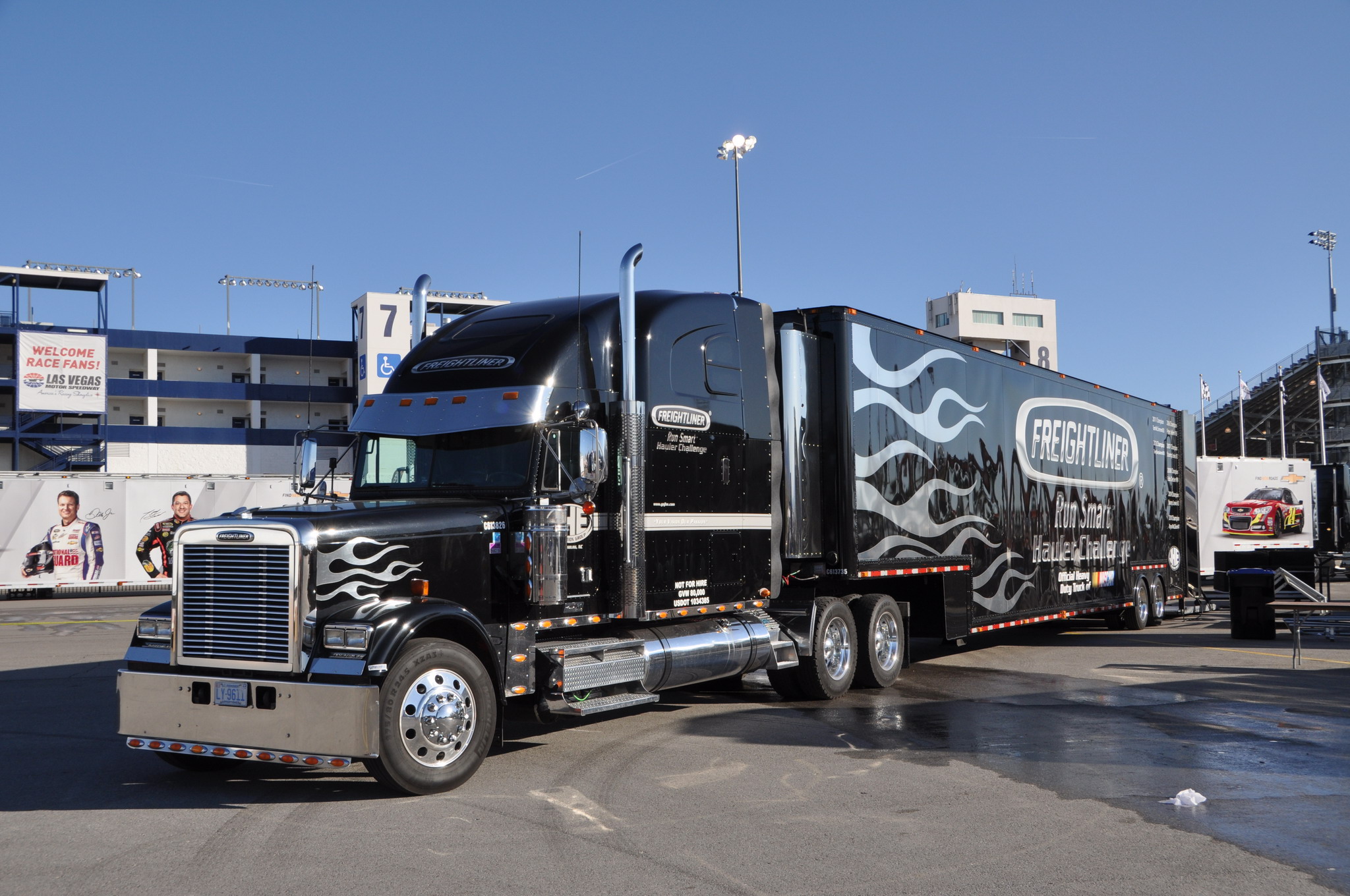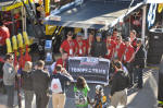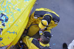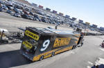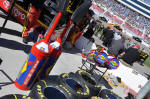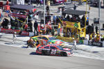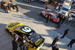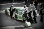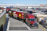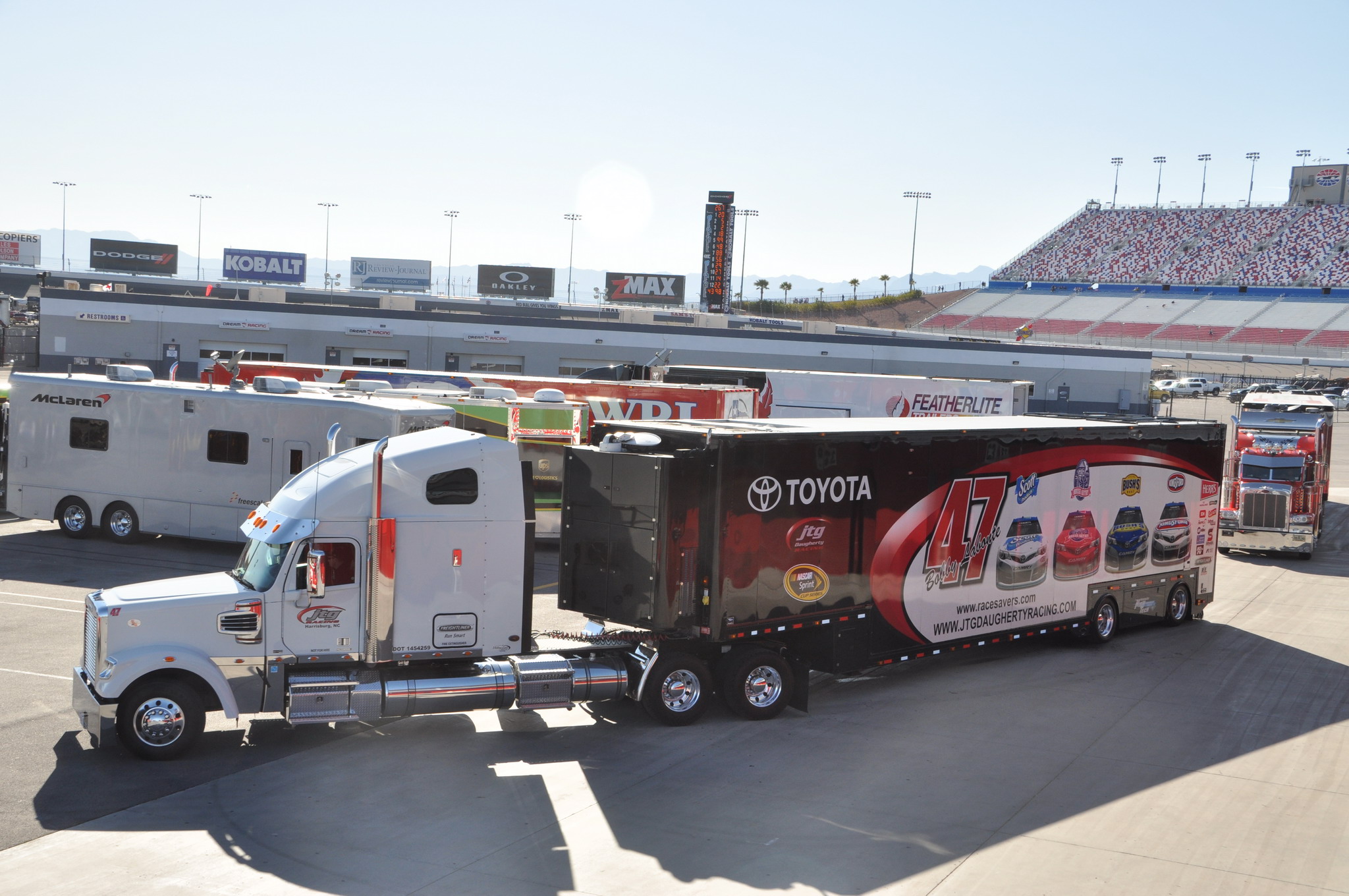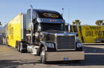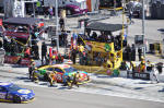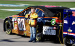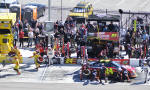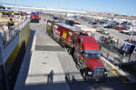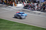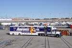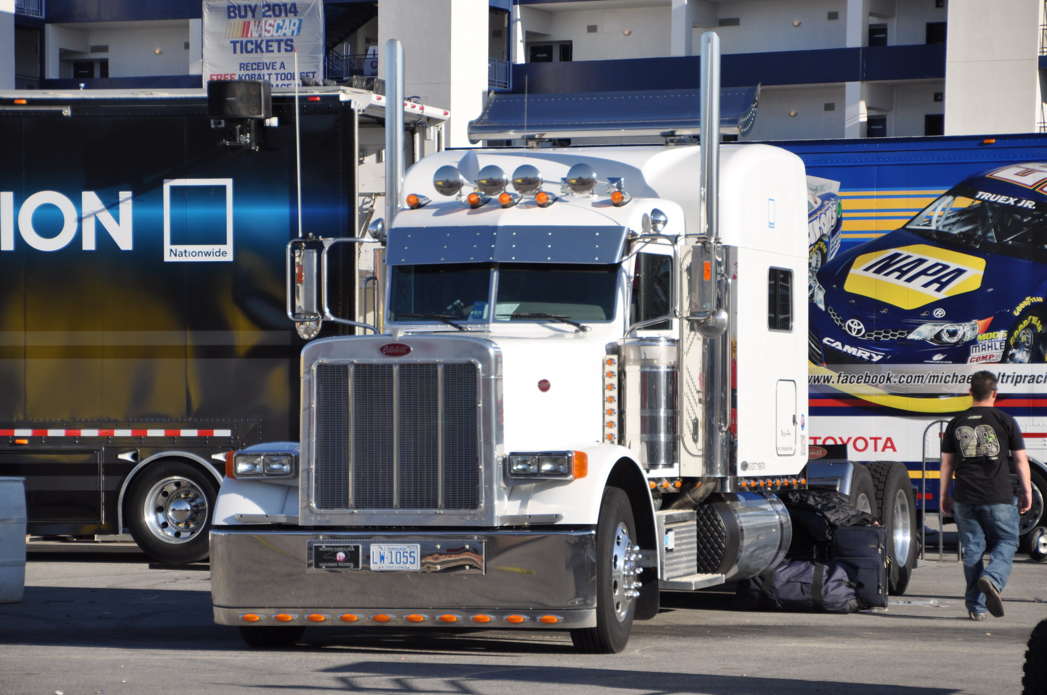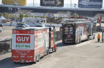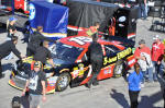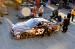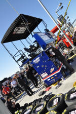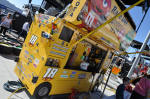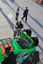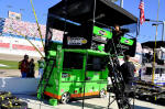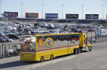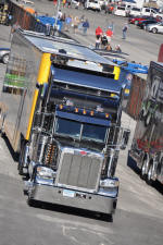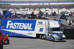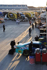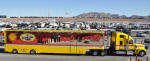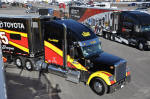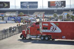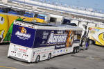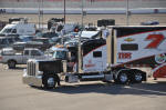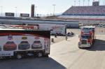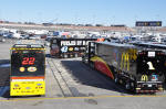 A la fin de la course, je décide dare-dare de retourner dans l'infield pour voir encore le maximum de choses, et j'arrive ainsi à m'approcher tout près par le haut de la voiture #20 de Matt Kenseth, l'interveiiew du vainqueur, et je reste même un bon moment pour regarder les équipes plier tout le matos, et surtout voir défiler tous ces superbes haulers qui partent dévorer le bitume des highways au soleil couchant pour regagner les usines ou se rendre directement sur le speedway de la prochaine course ....