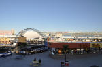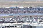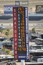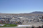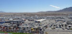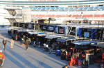 C'est dimanche et c'est donc jour de course aujourd'hui ! J'arrive à quitter l'hotel alors qu'il fait encore nuit, je remonte ainso tout le strip sans encombres et arrive au circuit sans aucun bouchon et retrouve une place sur le parking près du speedway. Les fans ne sont pas encore beaucoup arrivés, j'entre donc aussi dans le speedway sans attendre, et pour assister au lever de soleil au coeur de l'arène, splendide.... Et je fonce dans l'infield et sa fan zone qui surplombe les garages car les équipes, elles, sont levées depuis longtemps et bossent sur les voitures pour qu'elles soient fin prêtes pour la course et aller leur faire passer l'inspection d'avant-course.