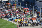 Et tout le monde évacue la piste une petite heure avant le départ, je regagne donc ma place dans les tribunes pour les traditionnelles cérémonies d'avant course, la prière, l'hymne national qui prend toujours aux tripes, le survol des fabuleux F16 des Thunderbirds qui cette fois sont à domicile, le "drivers start your engines", et le départ est donné.