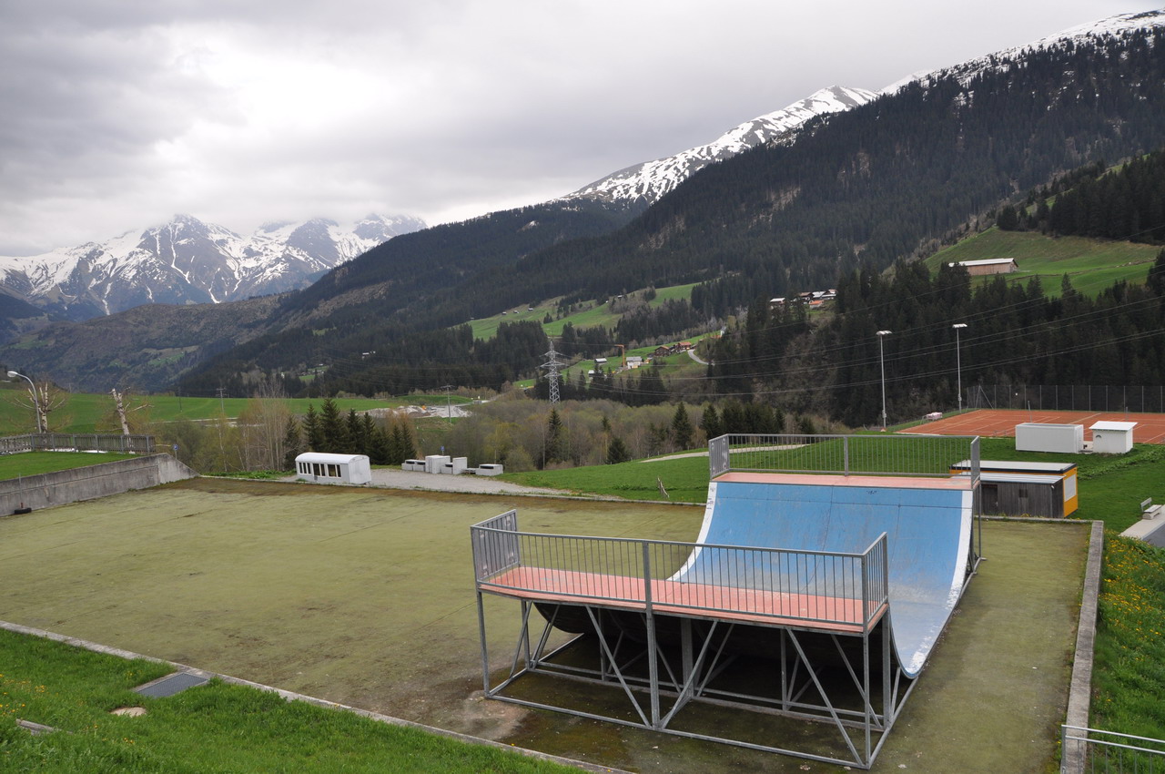 On reprend notre route pour notre destination finale, Tersnaus, que nous connaissons bien aussi !! Nous avions tellement bien apprécié notre pitite école suisse chez Edith et Robert en 2011 que nous avions décidé d'y retourner, nous retrouvons nos places devant la charmante pitite église, Edith et ses enfants, copains et stagiaires viennent nous accueillir, accueil franco-anglo-allemand encore très chaleureux, et les jeunes finissent pas nous faire comprendre qu'ils iraient bien faire un tour !! Avec plaisir, nous remettons en route les tutusses qui ne redemandent que ça et nous leur fournirons une bonne dose d'adrénaline en prenant la splendide route qui mène à Vals