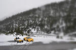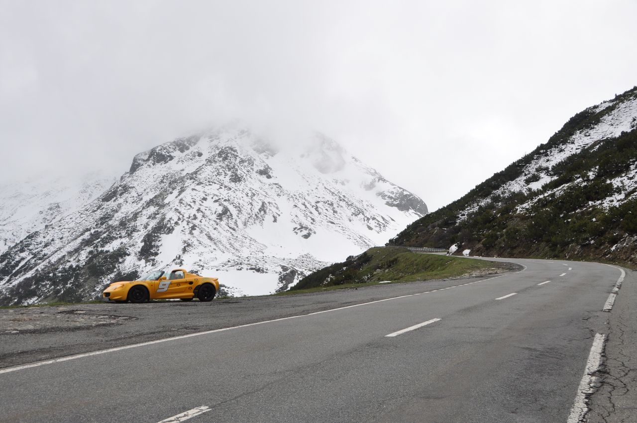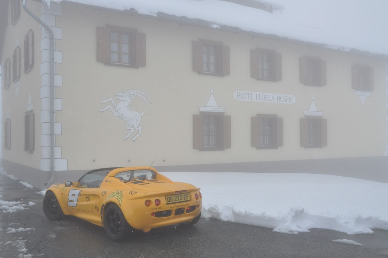 C'est la fin de l'hiver et c'est assez marrant d'apercevoir des marmottes gambader dans la neige, voir même au bord de la route !! J'arrive aux 2389 mètres d'altitude de Fluelapass dans un brouillard très épais, dantesque, ça crée une ambiance du tonnerre, je suis bien sur toujours décapoté et il fait bien froid, mais qu'est ce que c'est bon de sentir cet air revigorant des montagnes !!