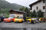 Je continue ma route toujours seul, toujours en direction de notre objectif primordial de la journée, le Passo del Stelvio, mais vu les conditions climatiques, je doute fortement qu'il soit ouvert !! A l'attaque d'Ofenpass, je me tire une petite bourre avec une Audi S6 Avant, que je finirai quand même par doubler, trop lourde mon fils ta Quattro ;-)) J'arrive aux 2149 mètres d'altitude d'Ofenpass ou Pass dal Fuorn avec un ciel plus dégagé, et c'est le moment où j'aperçois pitite Cat qui pointe le bout de son nez, seule car le Villo a aussi perdu Jéjé et Rachel !! On les appelle et eux nous disent qu'ils sont toujours en direction du Stelvio, qu'ils commencent à grimper, ce qui m'étonne beaucoup et que je ne comprends pas, mais où sont ils donc ???? Deux options se présentent pour nous, faire demi-tour pour repasser par Davos ou essayer de continuer dans l'inconnu .... En attendant, le Villo a trouvé un surplomb pour faire une belle séance photo, j'approuve bien évidemment car ce n'est pas souvent que je pourrais mettre mes 2 light dans un tel cadre ....