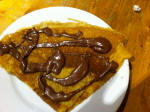 Nous enquillons ensuite après quelques difficultés à rattraper le bon itinéraire par Combloux et Megève, il commence à tomber des gouttes, il serait donc de bon ton de trouver un endroit chaleureux pour un bon 4 heures, et on le trouve à Praz sur Arly, à coup de crêpes au Nutella, de grosses îles flottantes aux pralines et de chocolat chaud, que du bonheur là aussi !!