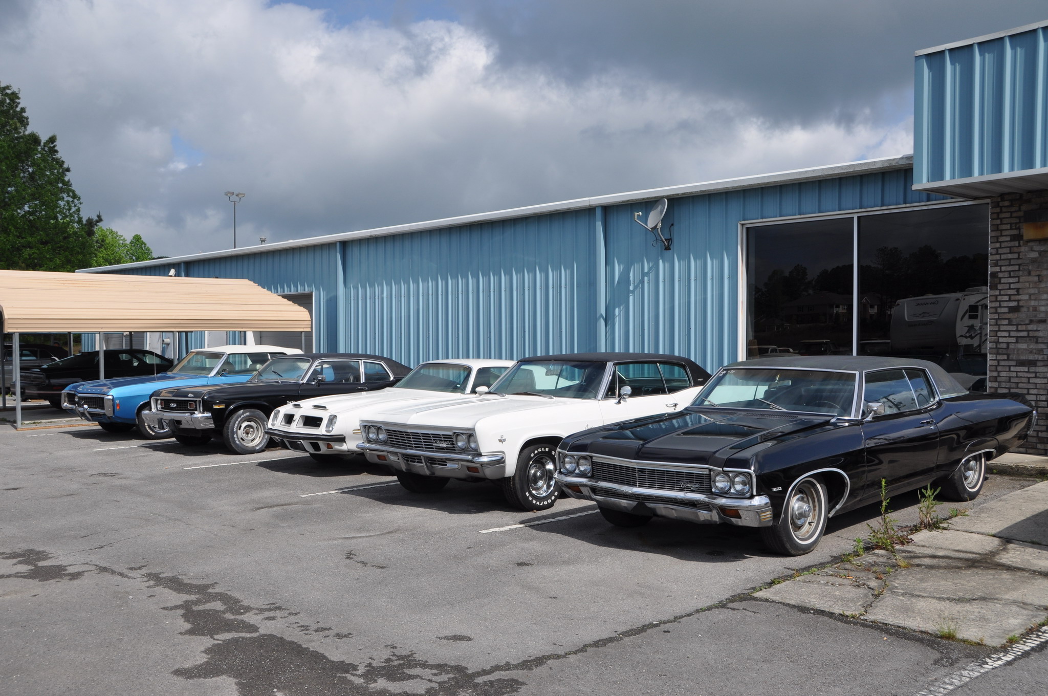 Mardi 3 mai - Je quitte Huntsville au matin, après une halte au Dunkin Donuts, je peux partir plein sud par les petites routes, et à la sortie d'Arab, une nouvelle halte s'impose en passant devant le garage Austin Hinds Motors au vu des voitures exposées, le garage est fermé mais je prends du temps pour shooter toutes les voitures à l'extérieur !