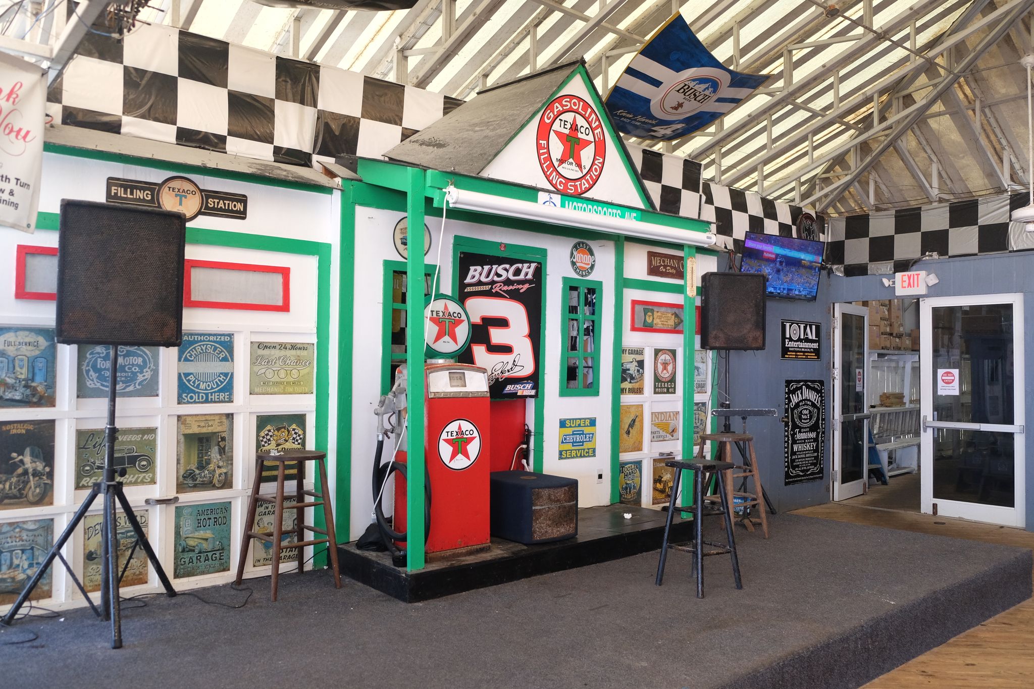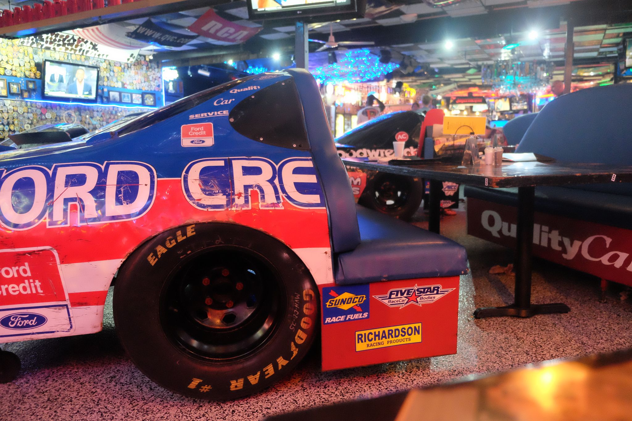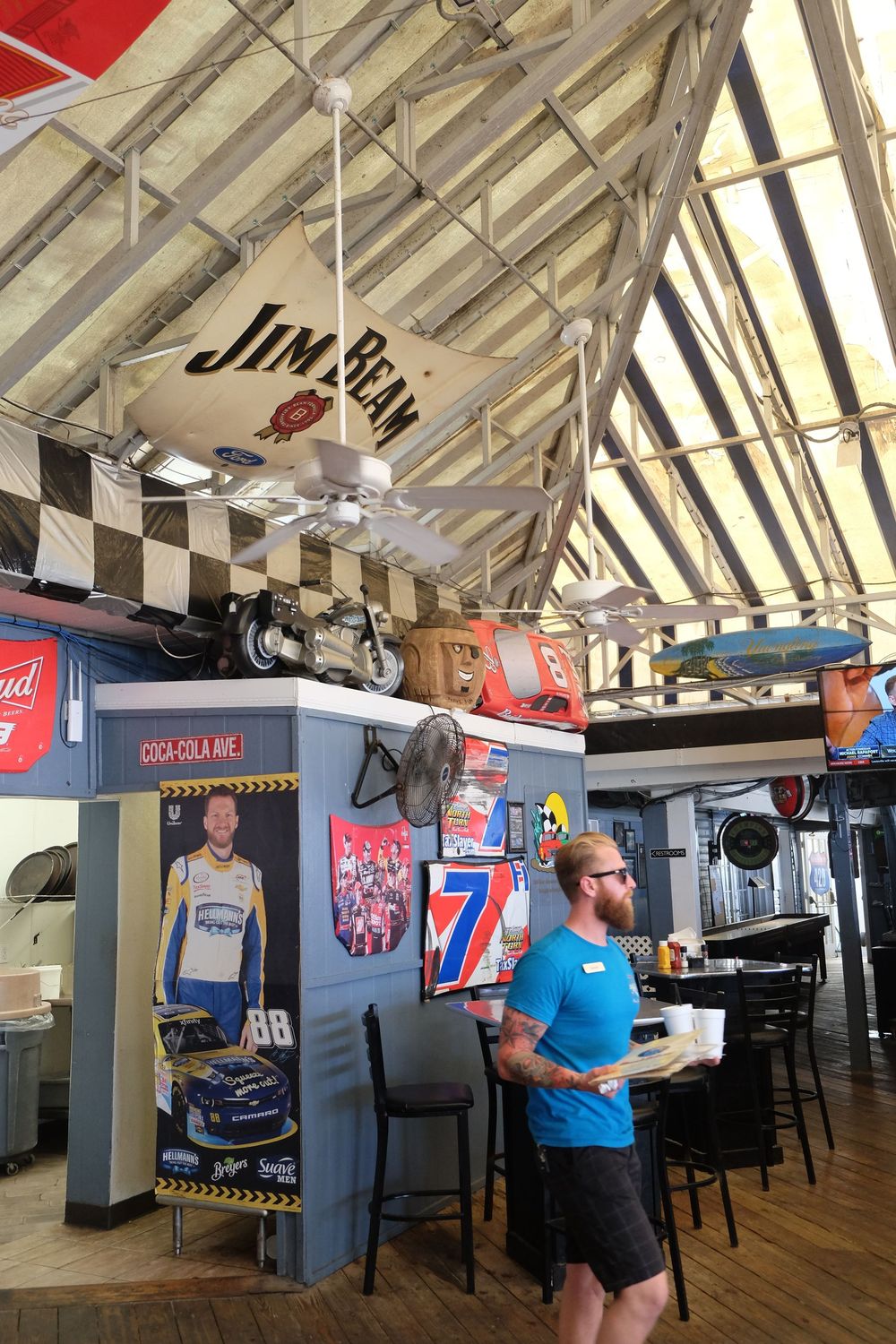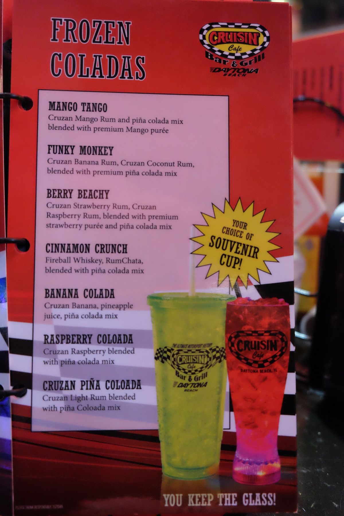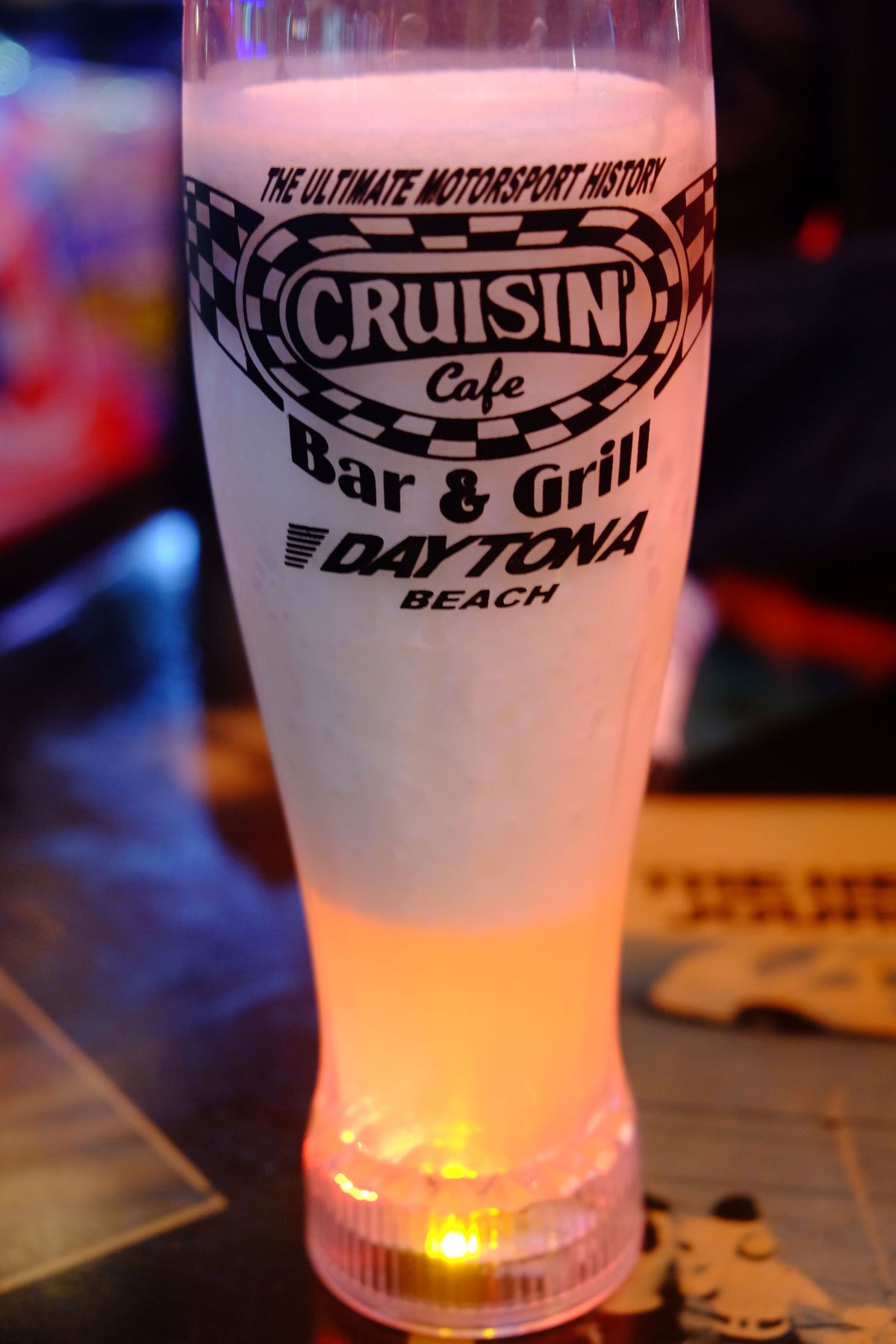 Parmi les lieux incontournables liés à la Nascar sur Daytona Beach, le resto Cruisin Café avec sa déco 100% Nascar, obligé d'aller déguster entre autres un cocktail "Funky Monkey" avec le verre qui clignote que tu peux le garder !