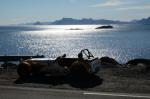 C'est le week-end c'est donc relâche :) Nous ne repartons que (de très bonne heure!) lundi matin, deux jours de repos bien mérités dans ce petit paradis après cette montée ardue vers le Nord. Le beau temps est revenu, la température est très agréable, le soleil resplendissant est revenu, révélant encore plus la beauté des Lofoten, nous sommes réellement dans un petit paradis.... Nous décidons de profiter du soleil à fond en se faisant un petit pique-nique, nous prenons donc la route avec deux Cat (nous laissons Little Hurricane au repos!) en longeant tranquillement le Buksnesfjorden, à la recherche du lieu idéal, que le Villllo va nous trouver, une petite plage privée rien que pour nous, nous ne pouvions pas rêver mieux! Nous ne nous la sommes même réellement appropriés en y traçant l'emblème de ce road trip, qui doit être visible depuis la station MIR!