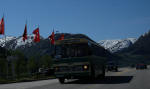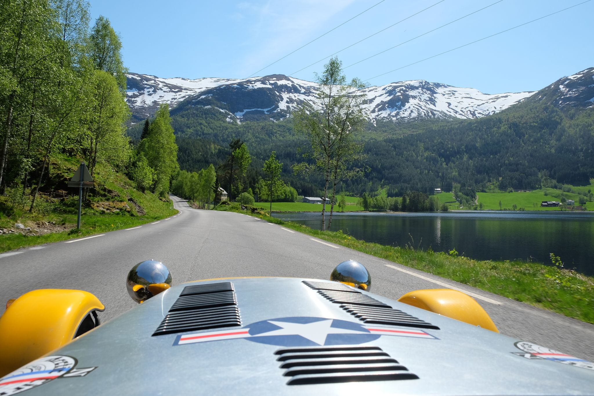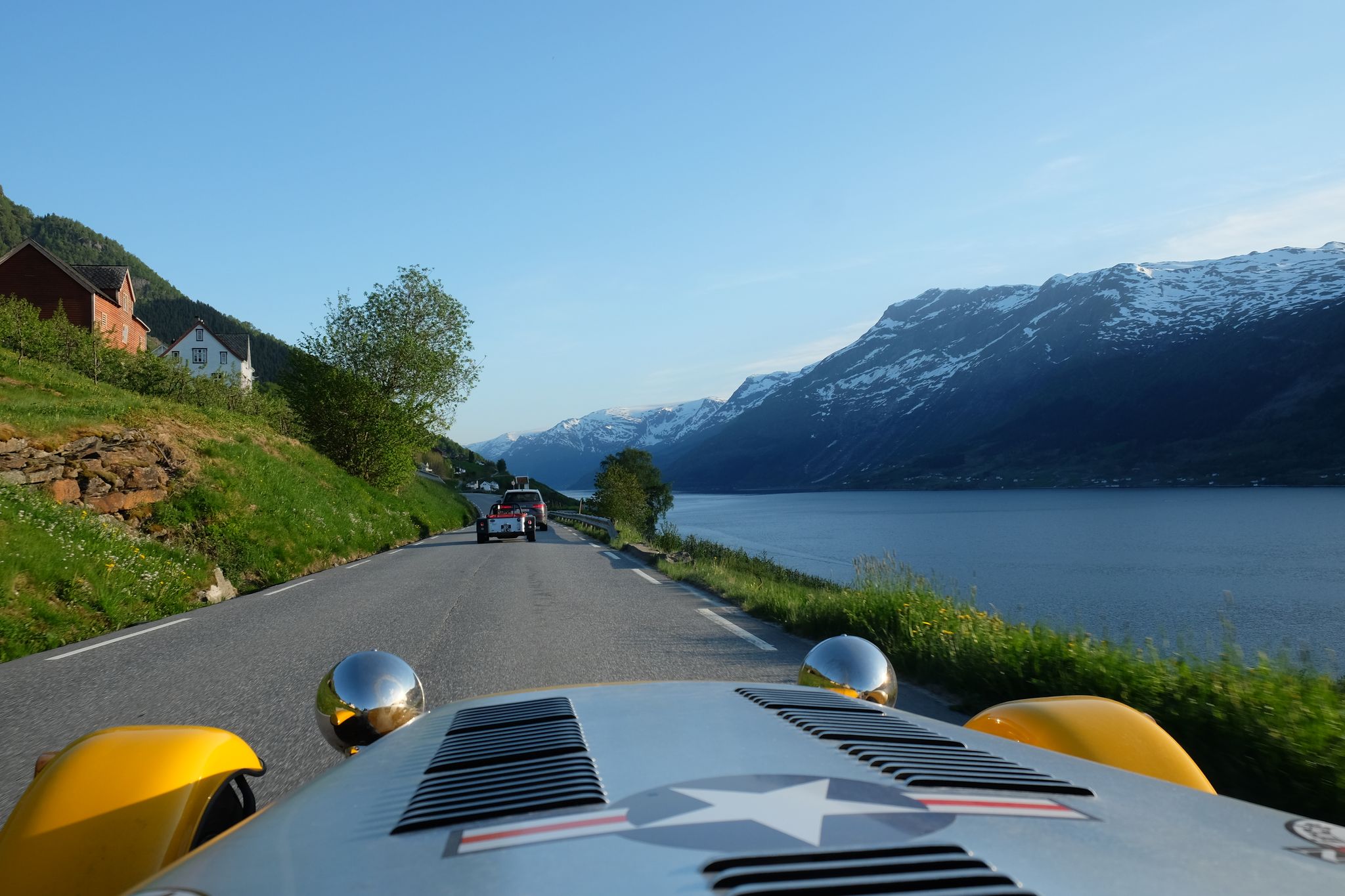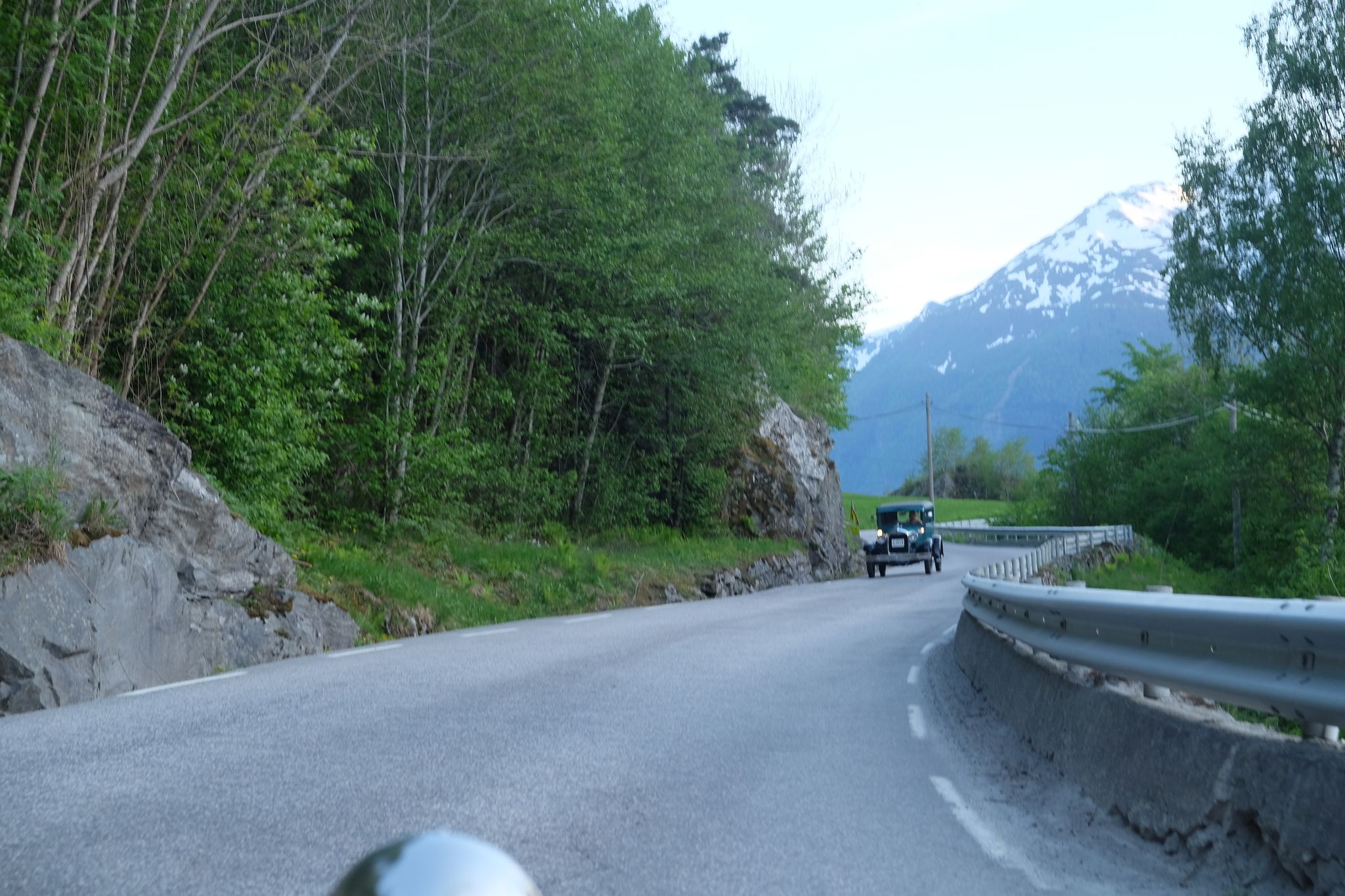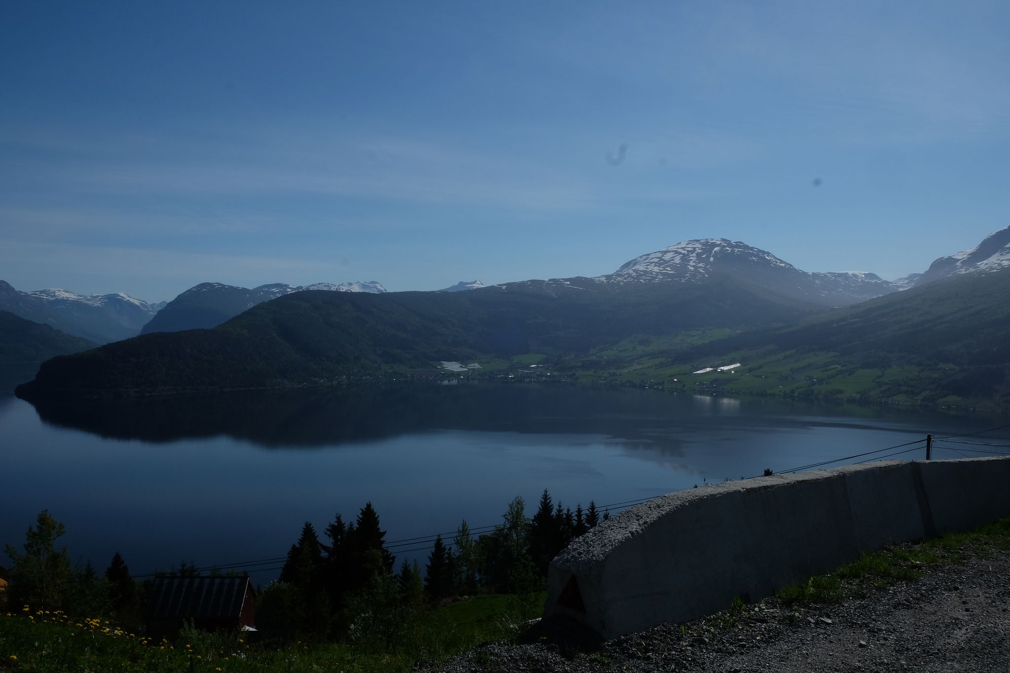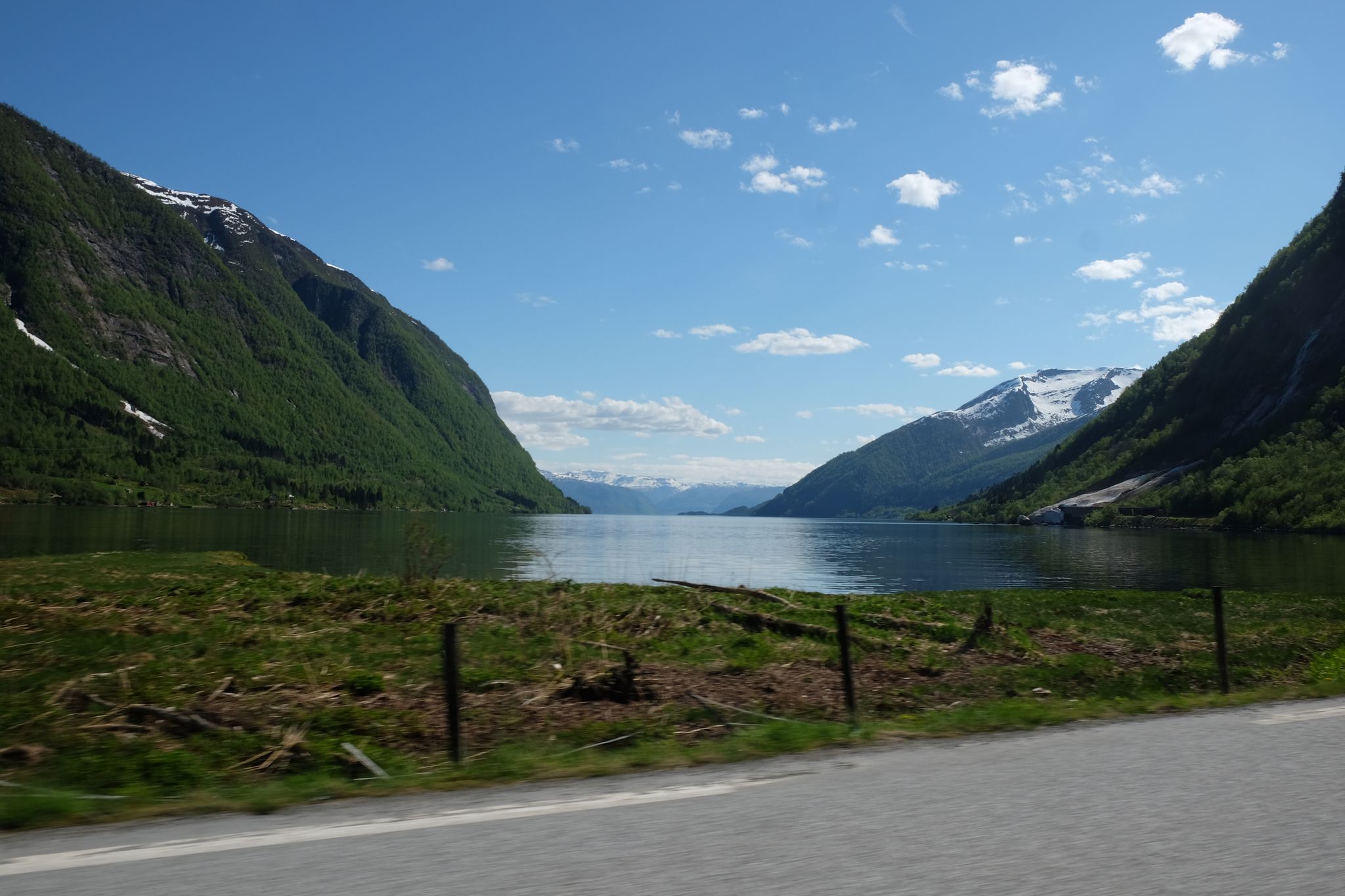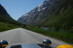 Réveil agréable dans notre grande villa, le soleil brille toujours et la vue sur le Innviksfjorden est splendide, mais comme d'habitude pas trop le temps de traîner. Un bon petit déjeuner quand même, et nous reprenons cette très belle petite route le long du fjord pour rejoindre Stryn pour arrêt ravitaillement et dans un magasin de bricolage! Et à nouveau du gros plaisir à rouler, les paysages sont fantastiques, nous faisons tout le tour du Innviksfjorden, longeons le fjord de Jolstravatnet où nous croisons de superbes vieux autocars, traversons des très belles vallées et empruntons la route touristique fv13.
