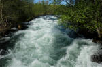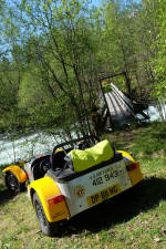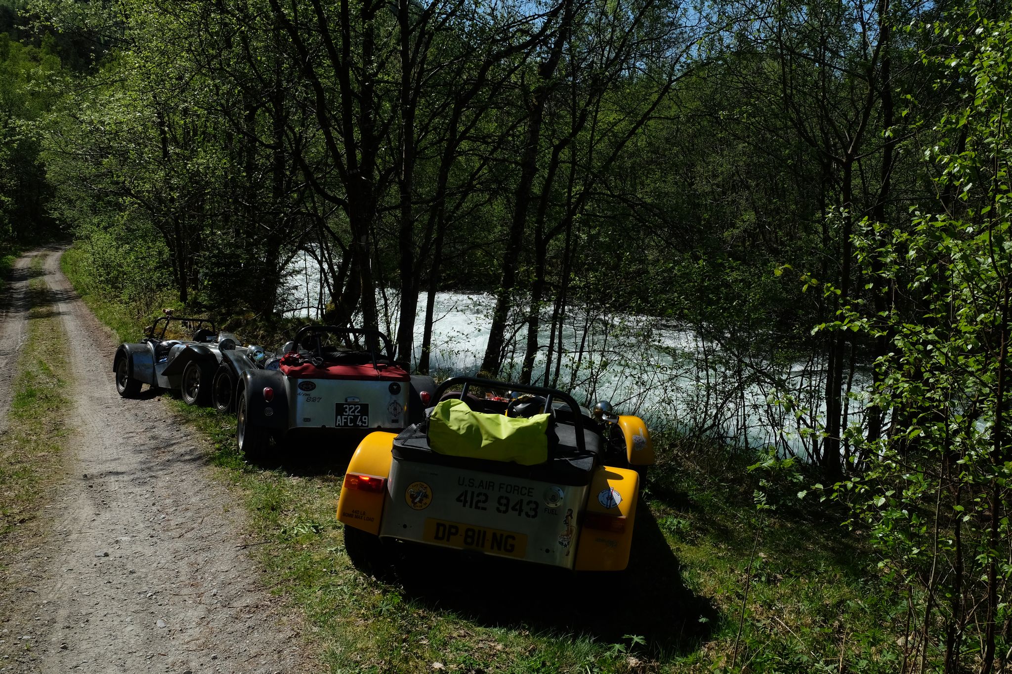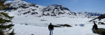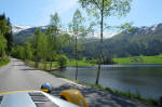 Et il est déjà temps de manger, Oliv devant veut trouver un endroit champêtre et commence à emprunter des chemins pour aller au coeur de la nature, en l'occurrence le long d'un petit torrent! Après ce piknik bien agréable, nous nous dirigeons sur des routes un peu plus montagneuses, d'ailleurs la neige refait son apparition sur les bas-côtés, et les nombreux et magnifiques lacs gelés se succèdent.