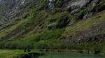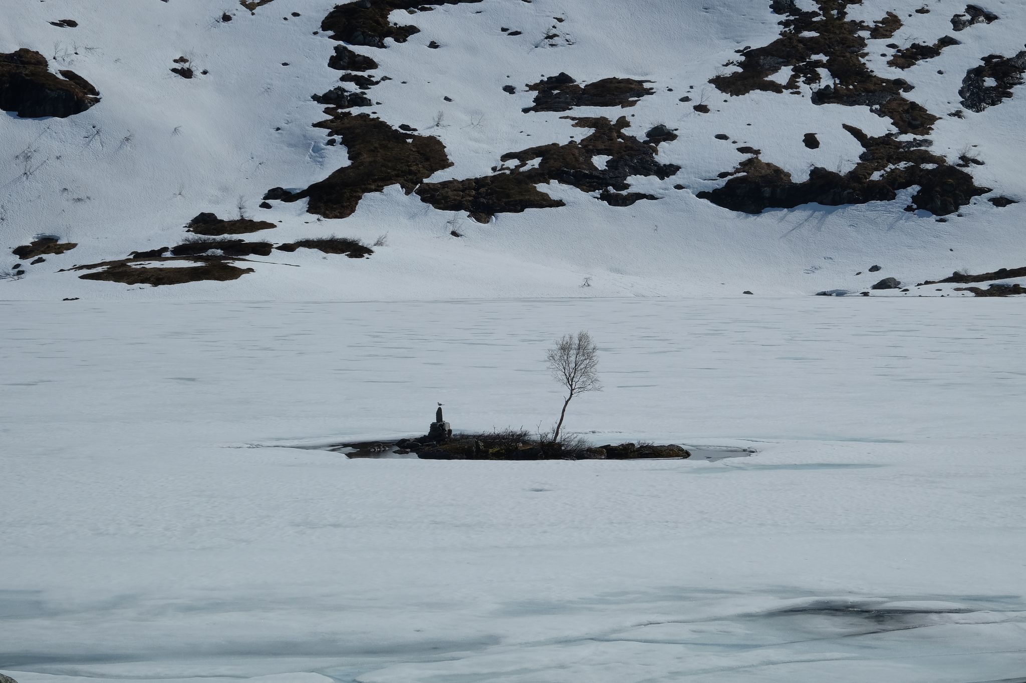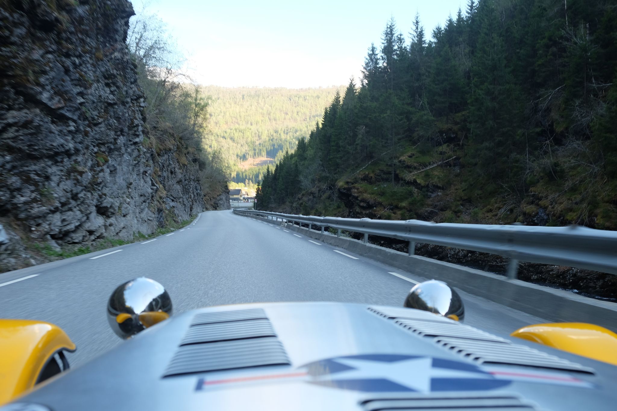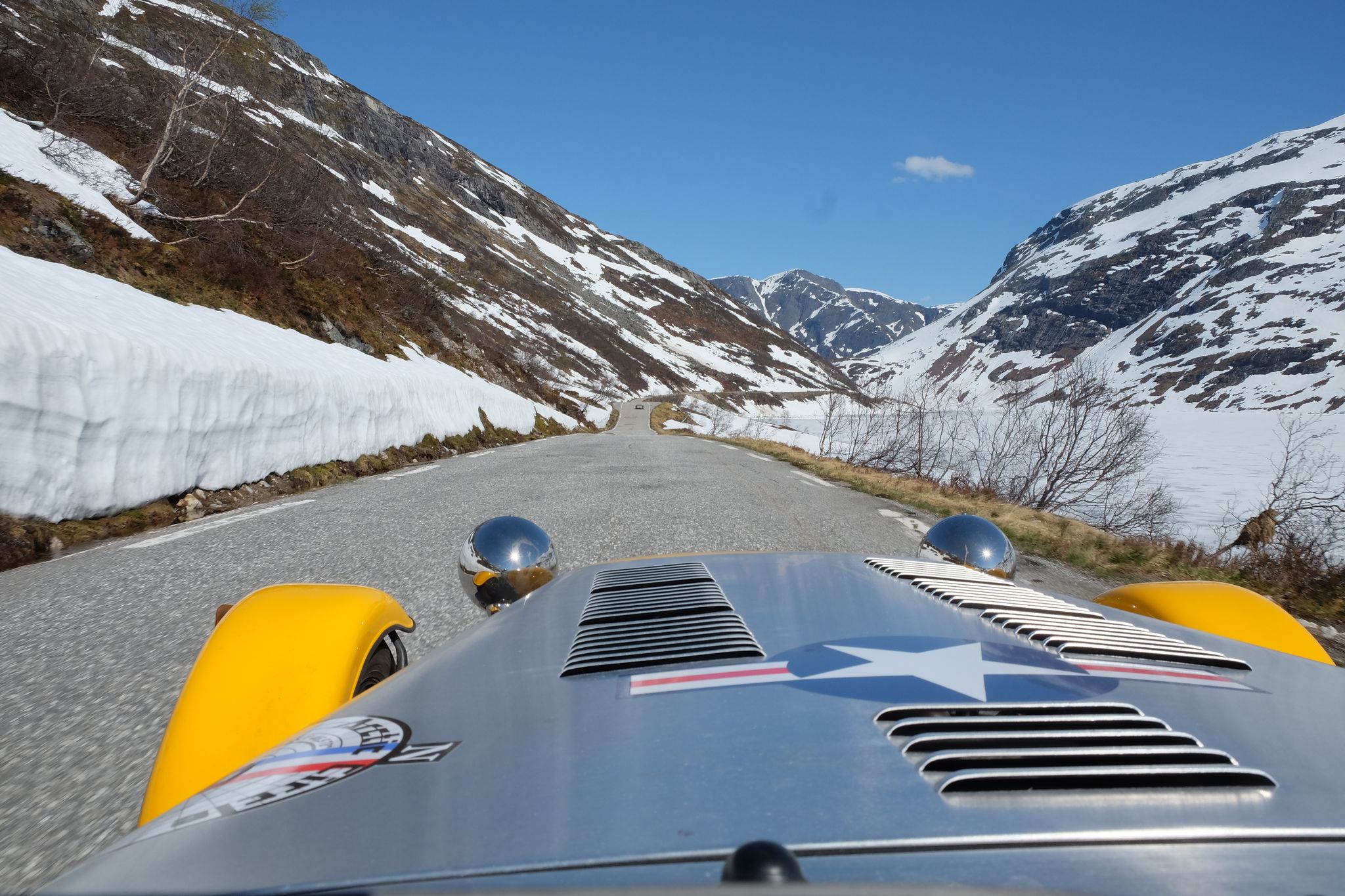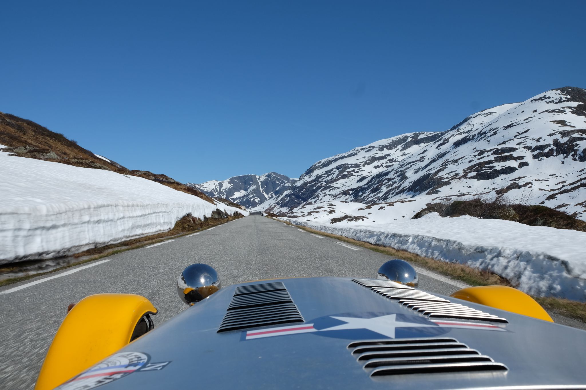 Puis nous continuons à enchaîner sur cette toujours superbe route fv13, montée en altitude et paysage encore blanc immaculé, descente en lacets qui nous rappelle un peu nos chères Alpes, l'asphalte serpentant le long des fjords, que du bonheur .... Puis, au détour d'un des nombreux tunnels empruntés, un truc de fou, je ne m'y attendais pas, et j'hallucinais et jubilais dans mon casque !!