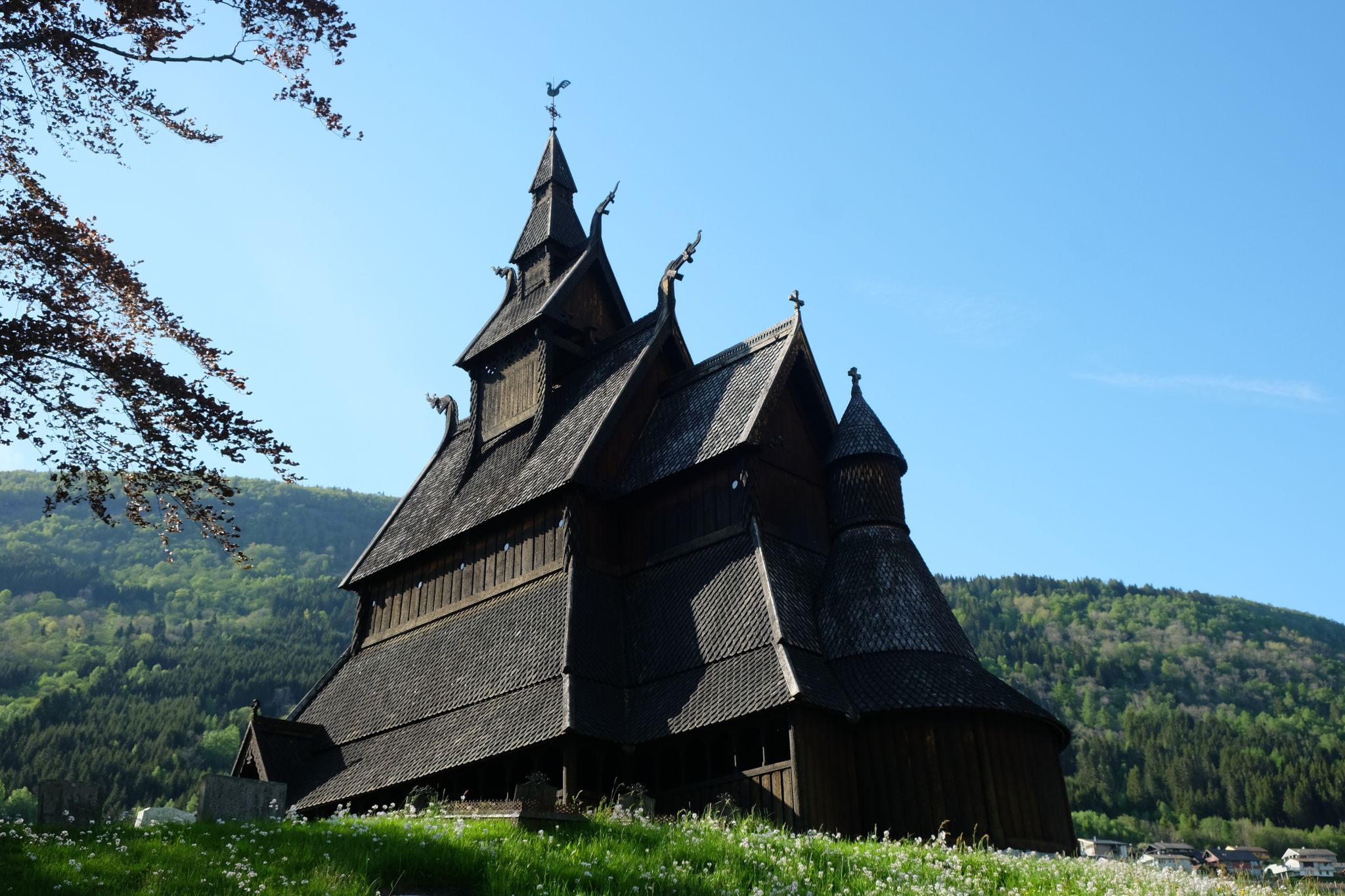 Après avoir longé le (encore et toujours!) très beau fjord de Sognefjorden, halte à Dragsvik pour prendre le ferry jusqu'à Vangsnes. Et nous nous arrêtons peu après à Vik i Sogn car je voulais absolument voir une des plus belles églises en bois de Norvège, la stavkirke de Hopperstad, et elle nous attendait bien, vêtue de sa robe noire, à la fois mystérieuse, ténébreuse et admirable....