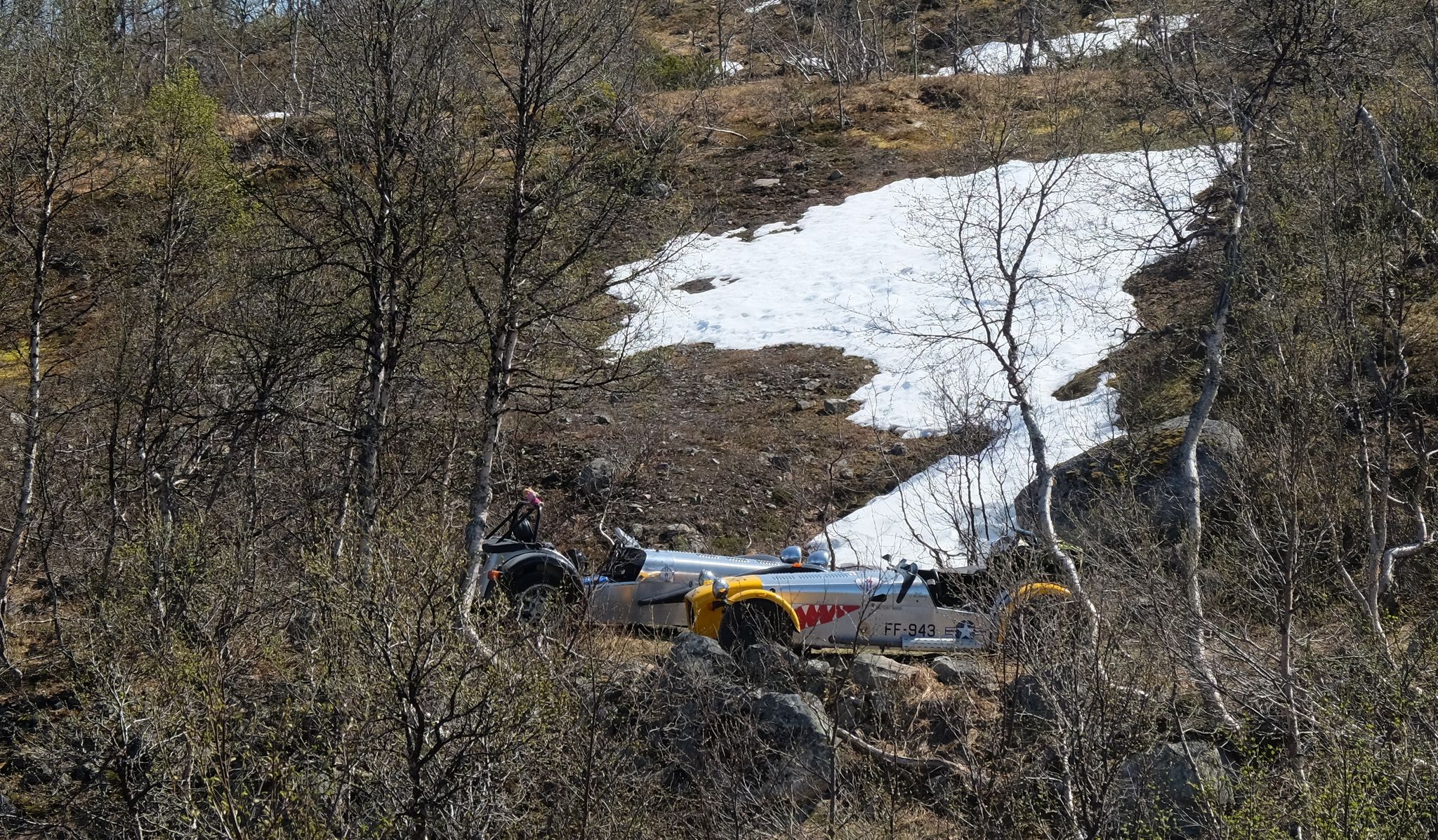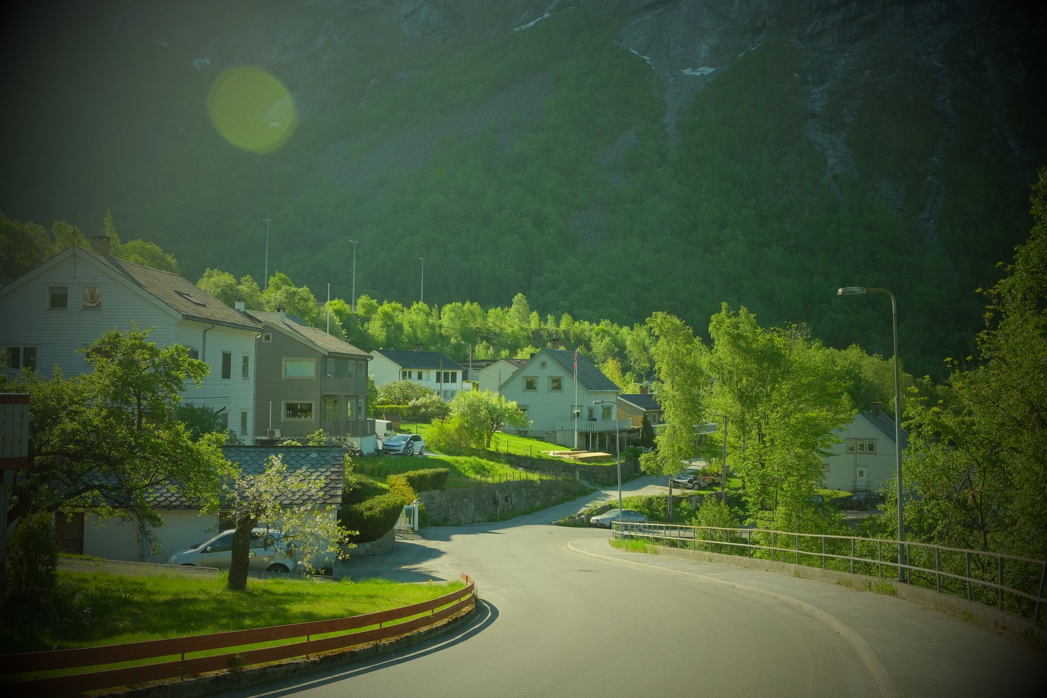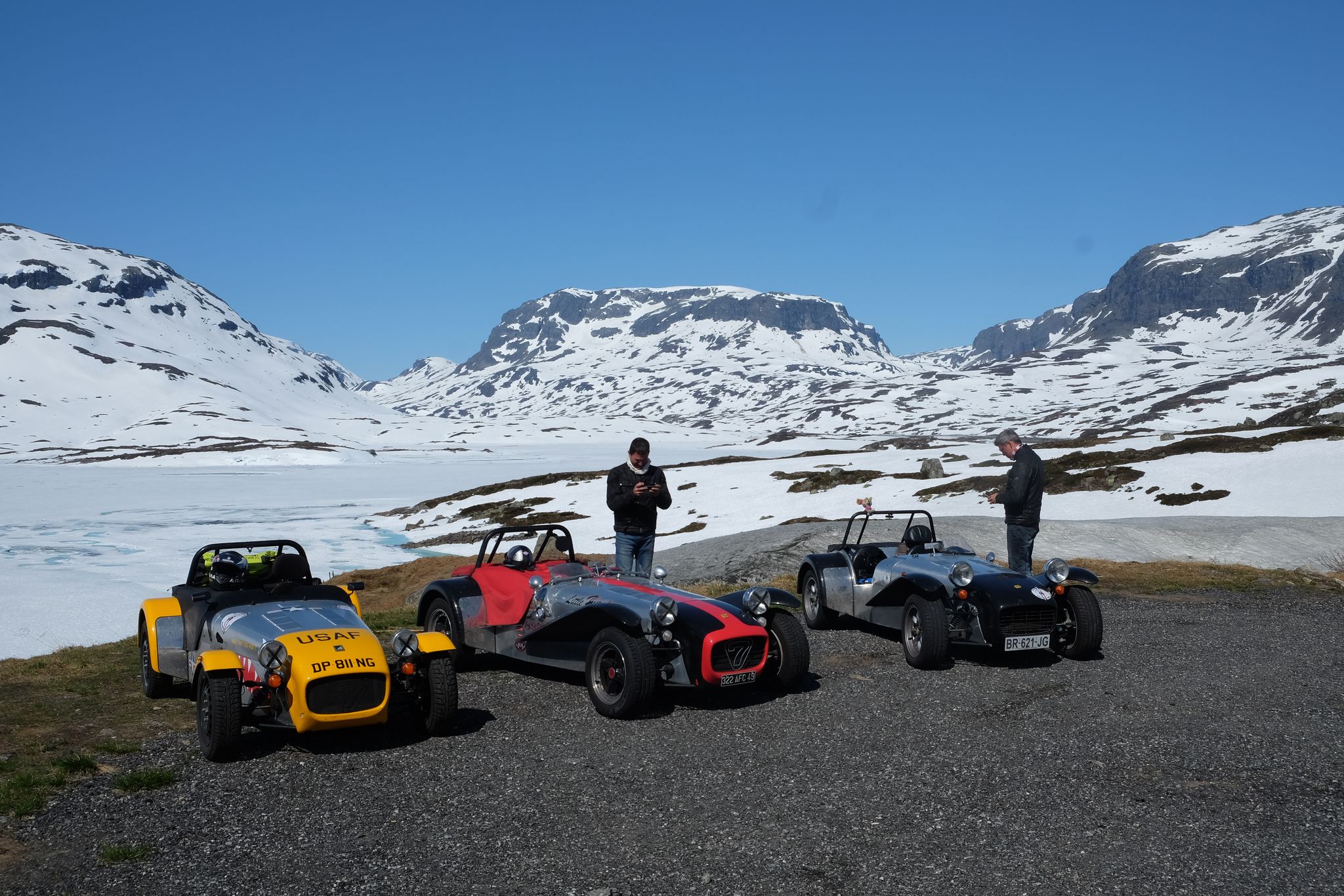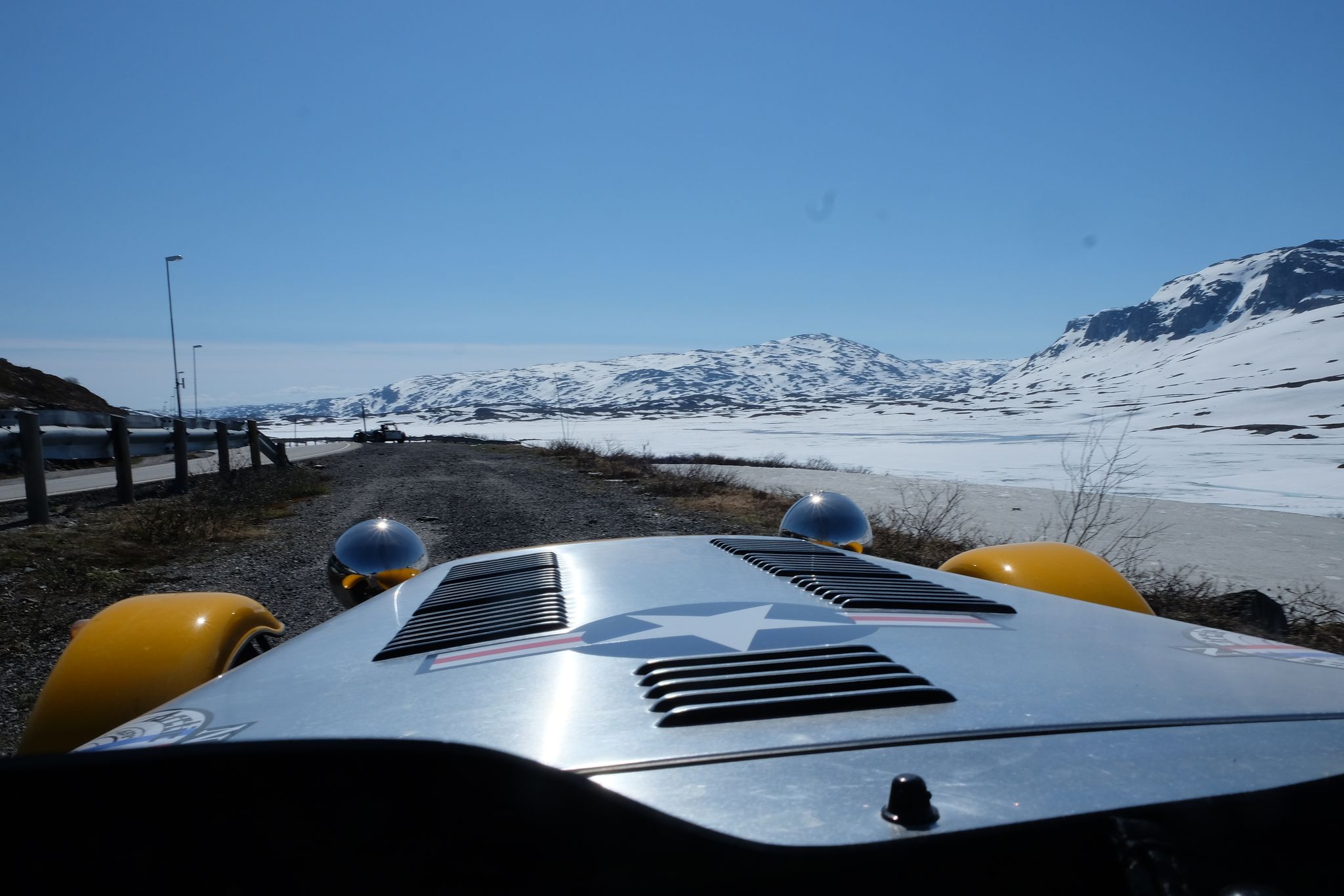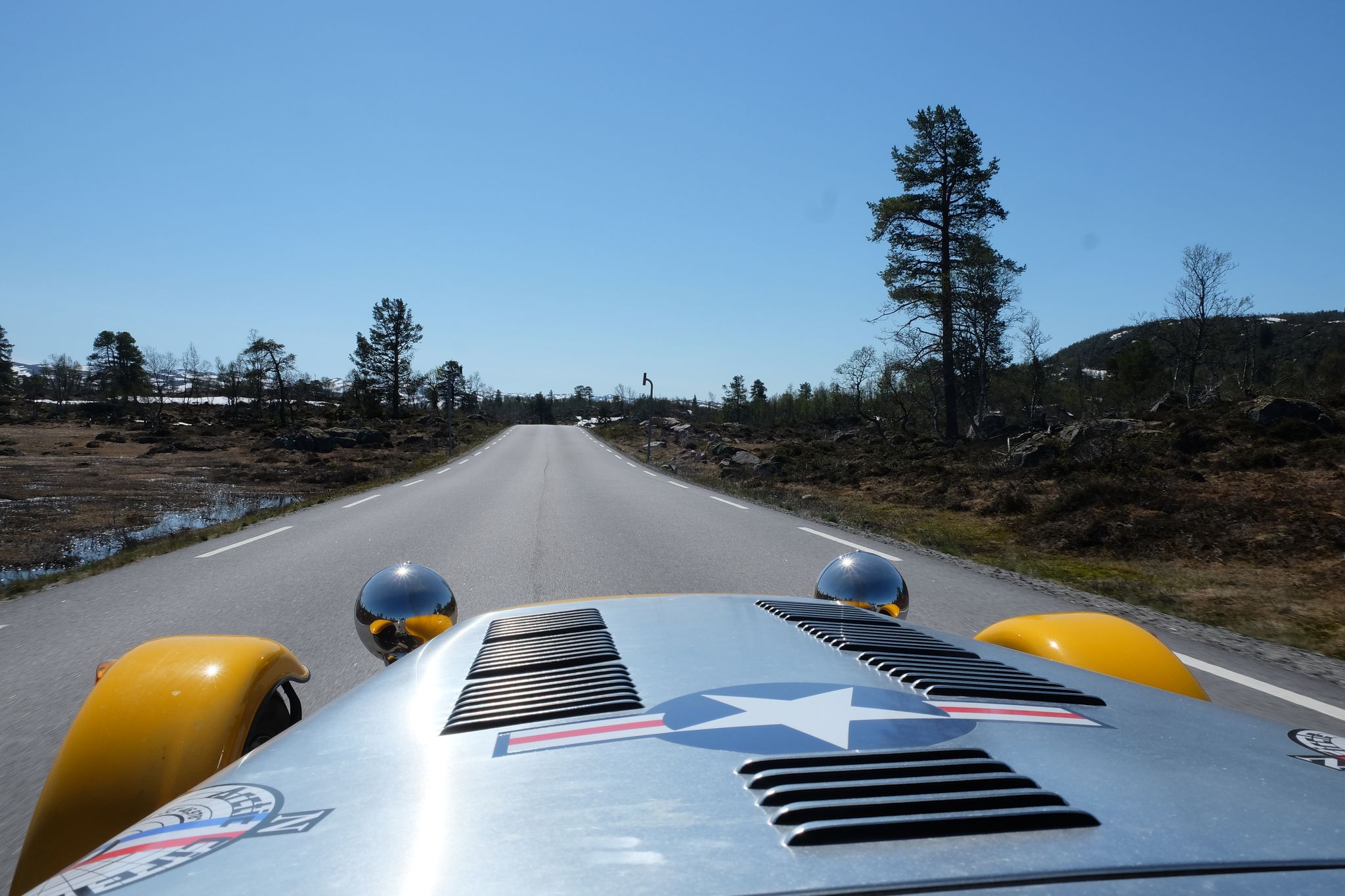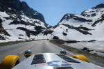 C'est le week end et c'est aussi le dernier jour en Norvège.... Grand soleil pour changer, un bon petit déjeuner dans la maison d'Elisabeth Michelle et nous quittons Tyssedal, direction toujours plein sud vers la mer ! Un long tunnel à la sortie de Tyssedal, et nous continuons à longer ce beau Hardangerfjorden très encaissé, bordé de hautes falaises et qui offre ainsi de fabuleuses cascades. Arrêt ravitaillement pour les Cat en arrivant sur Odda, en choisissant La station où l'on découvre une superbe Mercury Cougar XR7 1970 jaune pimpant, génial !!