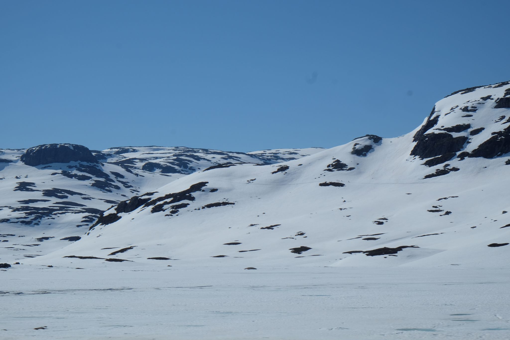 Et les paysages sont toujours sublimes dans cette partie sud de la Norvège, nous remontons en altitude et retrouvons la neige et les lacs gelés, la nature dans son plus bel habit .... Puis sur une route un peu isolée, Oliv réussit encore à prendre un petit chemin sur quelques dizaines de mètres pour nous trouver un joli petit coin en bord de lac pour la pause picnic, que du bonheur ....