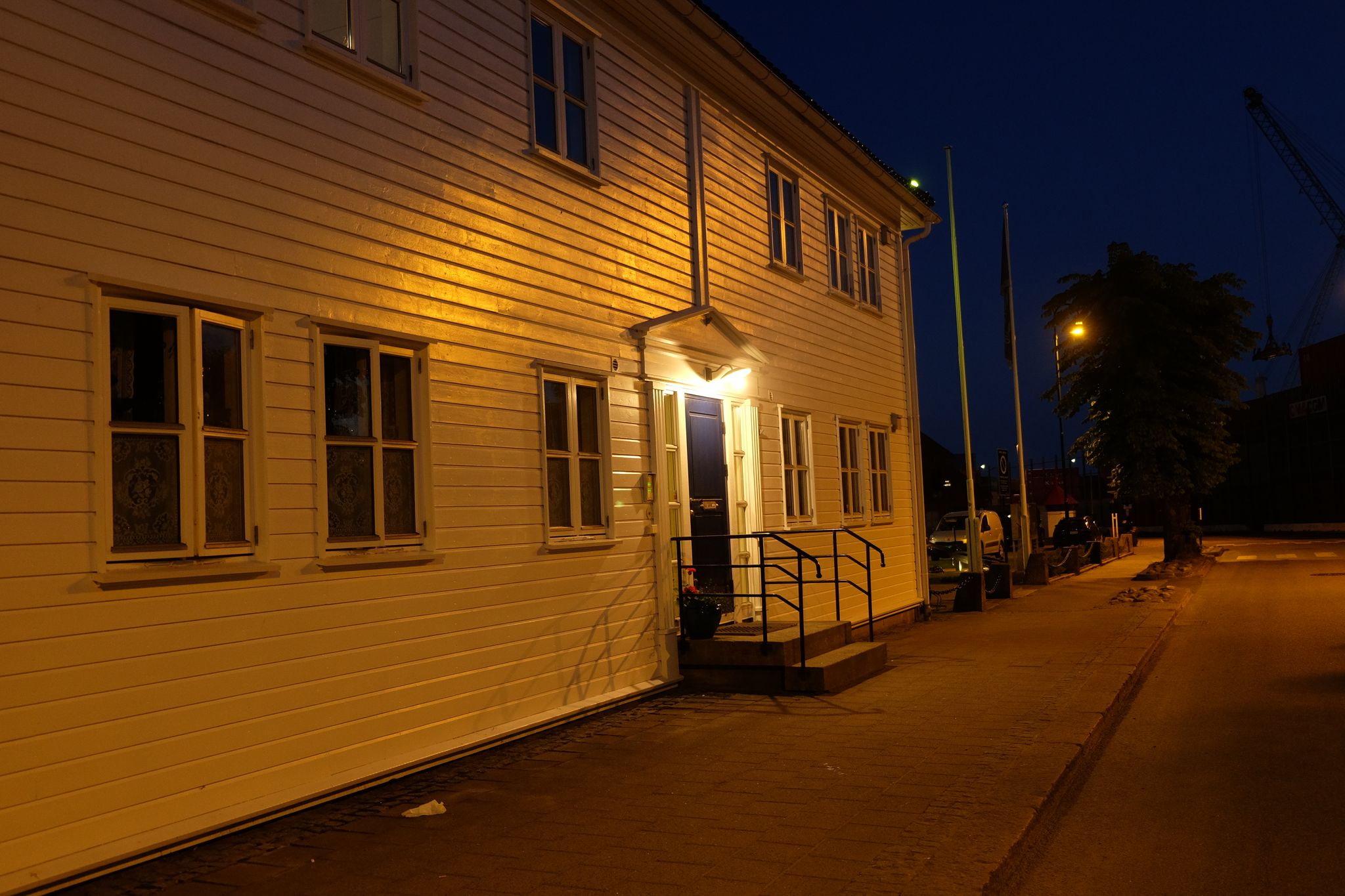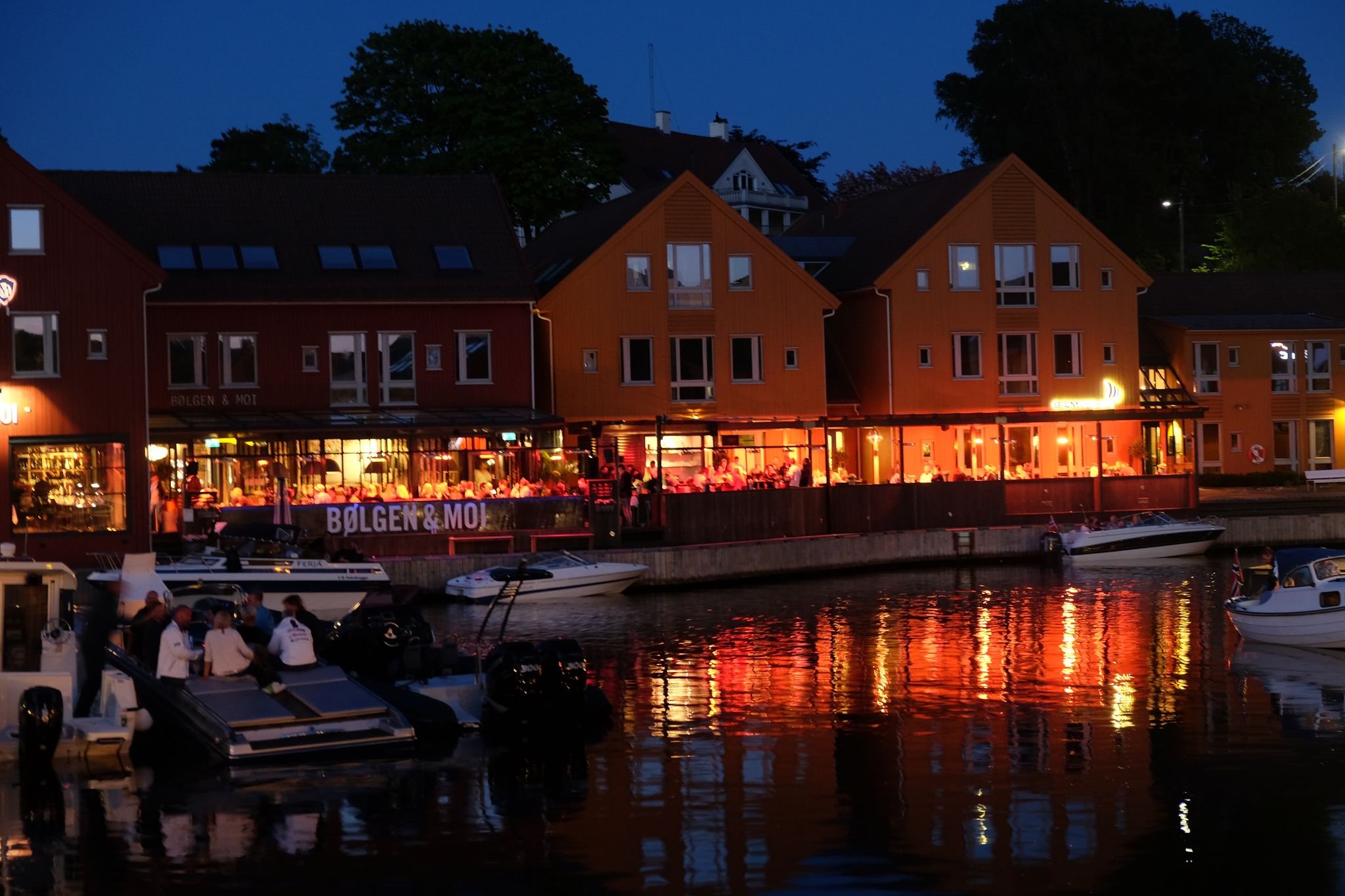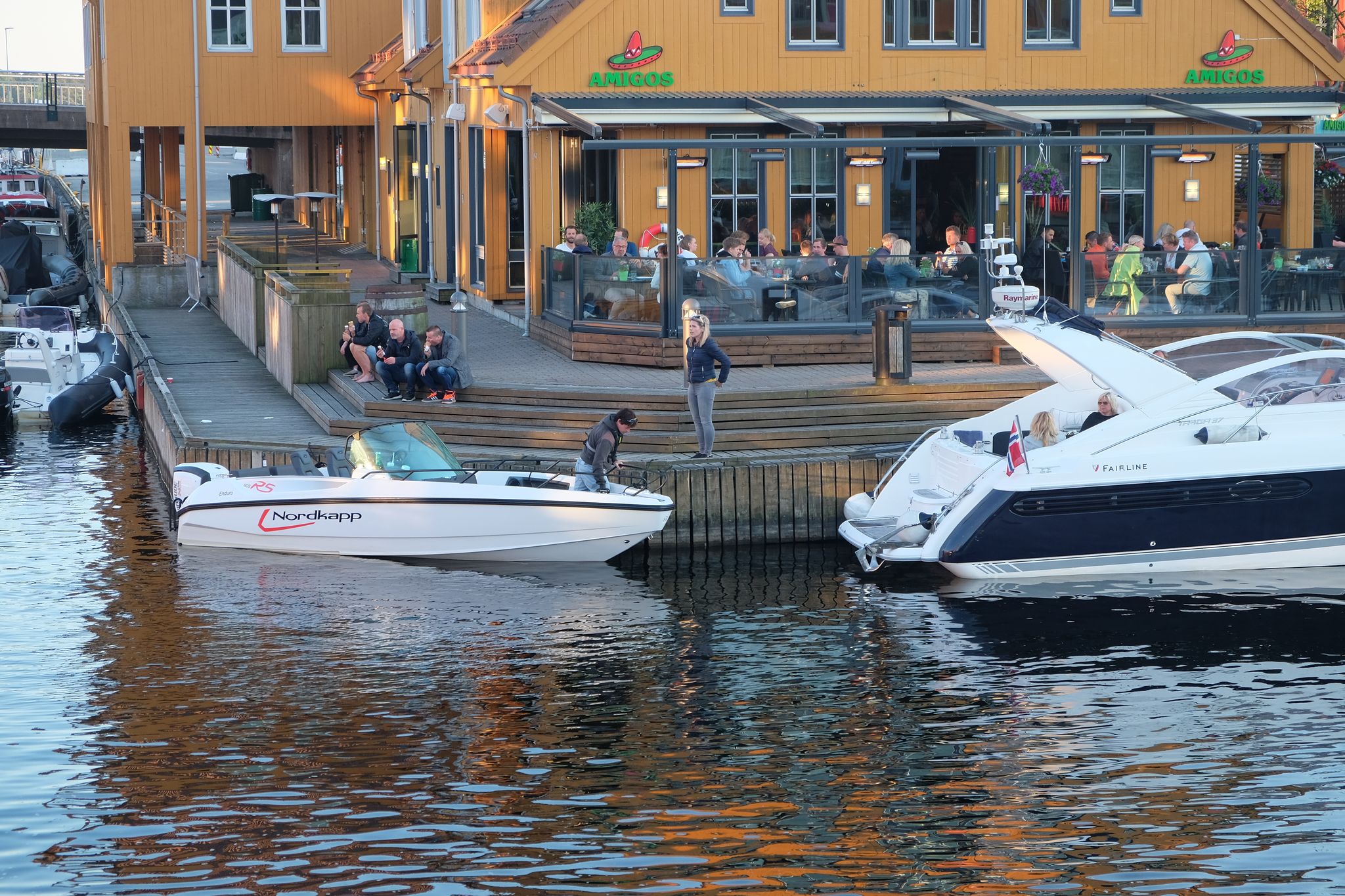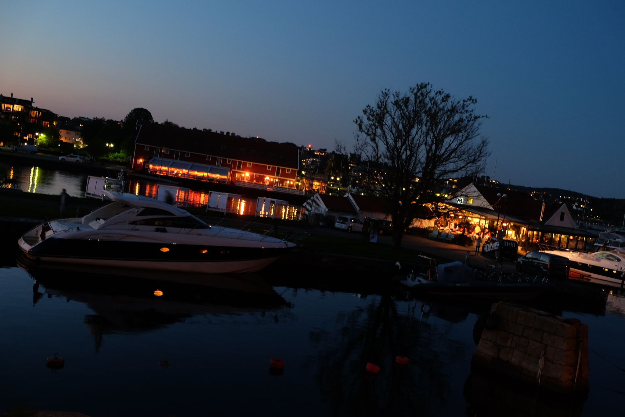 Et ça commence à sentir la fin des routes norvégiennes quand j'atteins les faubourgs de la plus grosse ville au sud de la Norvège, Kristiansand, nous devons prendre le ferry tôt demain matin, j'avais donc cherché un airbnb près de Kristiansand, et j'avais trouvé la belle et grande maison de Kristine, j'arrive le premier (les deux zozos ont encore du prendre des raccourcis!!), je choisis la chambre qui me plait le mieux, et m'installe sur la terrasse confortablement, en guettant le bruit des deux Rover K ! Nous profitons ensuite d'une soirée à la "ville" pour notre dernier jour en terres norvégiennes, le quartier des restaurants près du port de plaisance est assez animé en ce samedi soir très clément, et c'est assez amusant de voir les gens venir en bateau au pied des restaurants ou autres bars, décidément, j'aime vraiment bien ce pays ....
