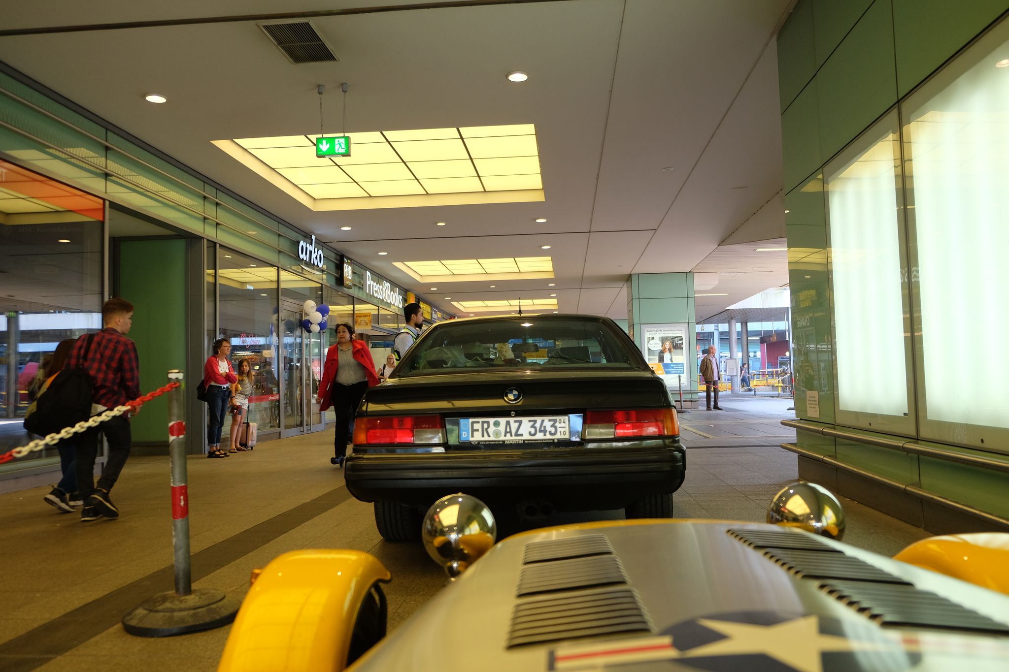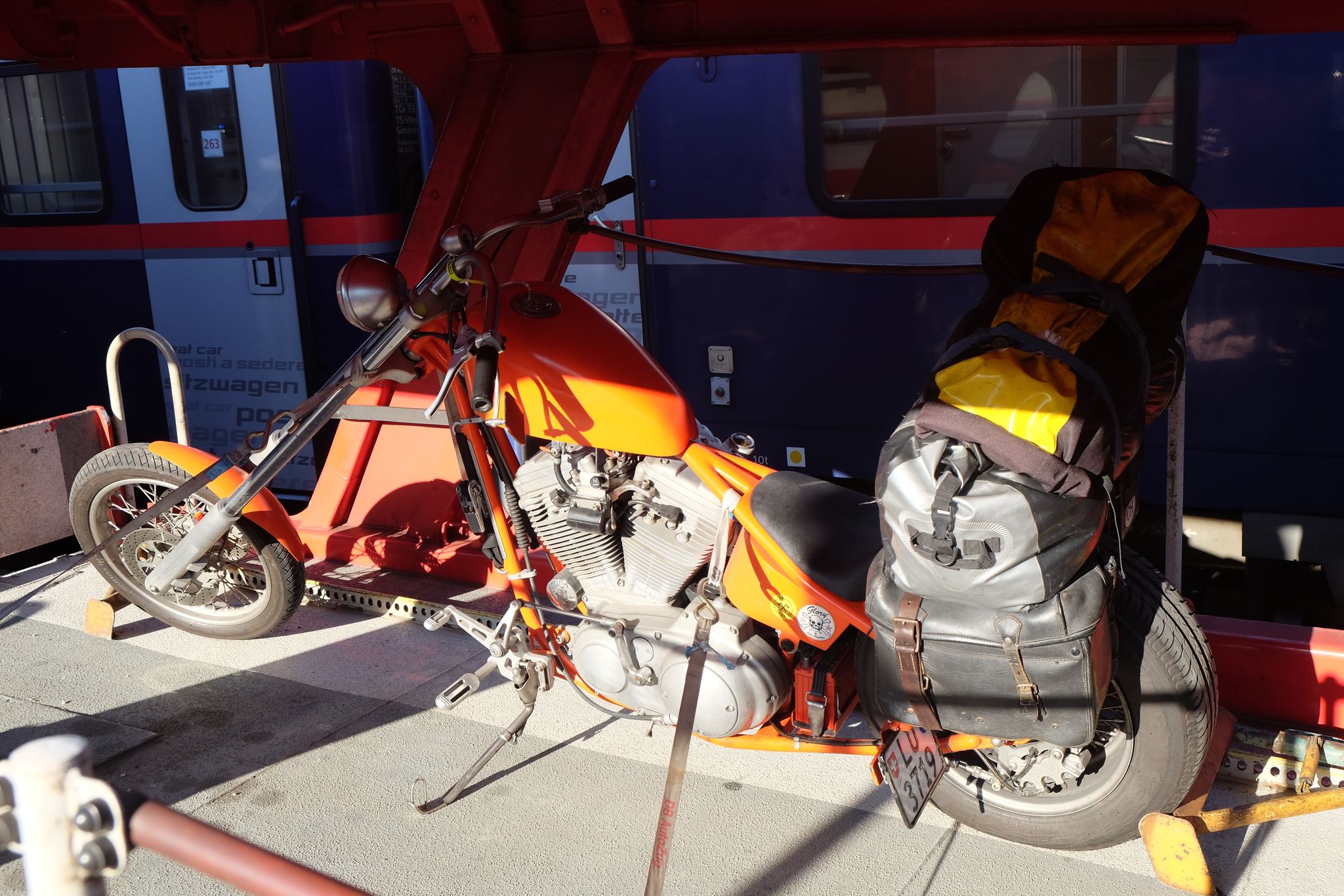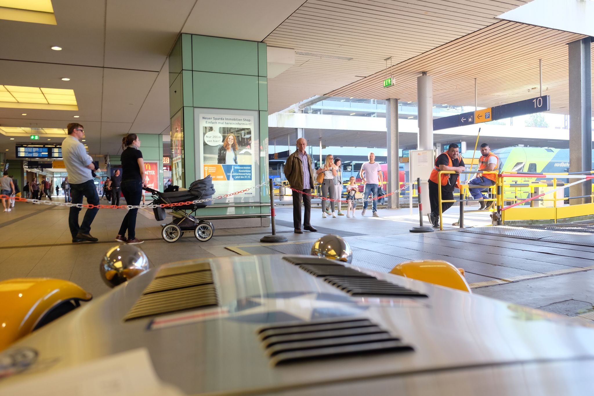 Puis traversée intégrale du Danemark, et de la partie nord de l'Allemagne, autoroute, morne, chiant, sans intérêt, mais il fallait le faire pour rentrer chez nous ! Et comme à l'allée, nous refaisons la traversée de nuit en train-auto, donc nous arrivons sur Hambourg, c'est dimanche donc heureusement la circulation est fluide, je trouve cette fois directement l'endroit pour embarquer, mais il y a déjà une file d'attente, avec une nouvelle fois des jolies voitures, mais ça n'avance pas au guichet, nous bloquons un peu la route, un camion essaie un peu de forcer, les esprits s'échauffent un peu, mais je finis enfin par passer, et l'amusement de retraverser une nouvelle fois la galerie marchande, derrière une BMW série 6 et d'embarquer sur le train, où nous retrouvons avec plaisir notre hôtesse de l'aller, qui nous avait bien choyé ;-)